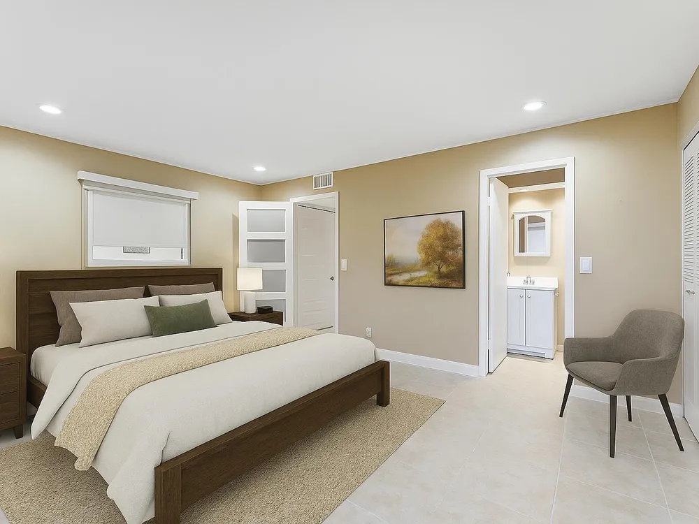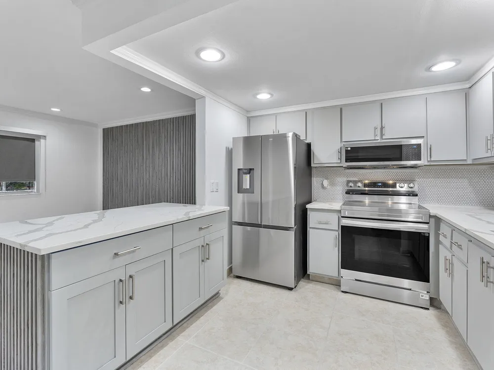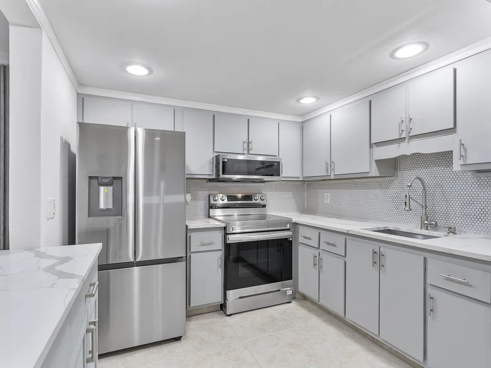 Step into this beautifully renovated 1-bedroom, 1.5-bathroom condo that redefines stylish living. Building features a convenient elevator. The open-concept layout boasts sleek tile flooring and recessed lighting throughout, creating a bright and airy ambiance. The contemporary kitchen is a chef's dream, featuring stainless steel appliances, quartz countertops, and chic cabinetry complemented by a trendy backsplash.The spacious living area is perfect for both relaxing and entertaining, with a seamless flow to a private screened balcony, ideal for sipping your morning coffee or enjoying an evening breeze. The primary suite offers an oasis of calm with ample closet space, a modern en-suite bathroom, and direct access to the balcony. An additional half bath provides convenience for guests.