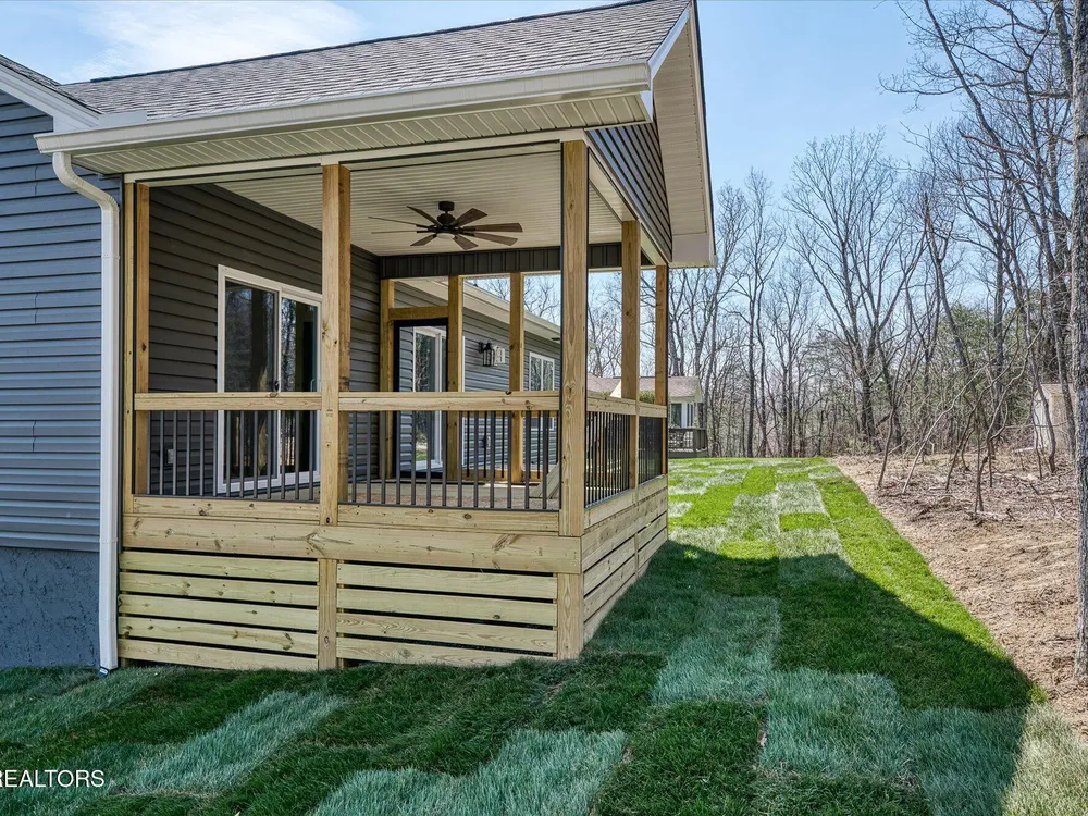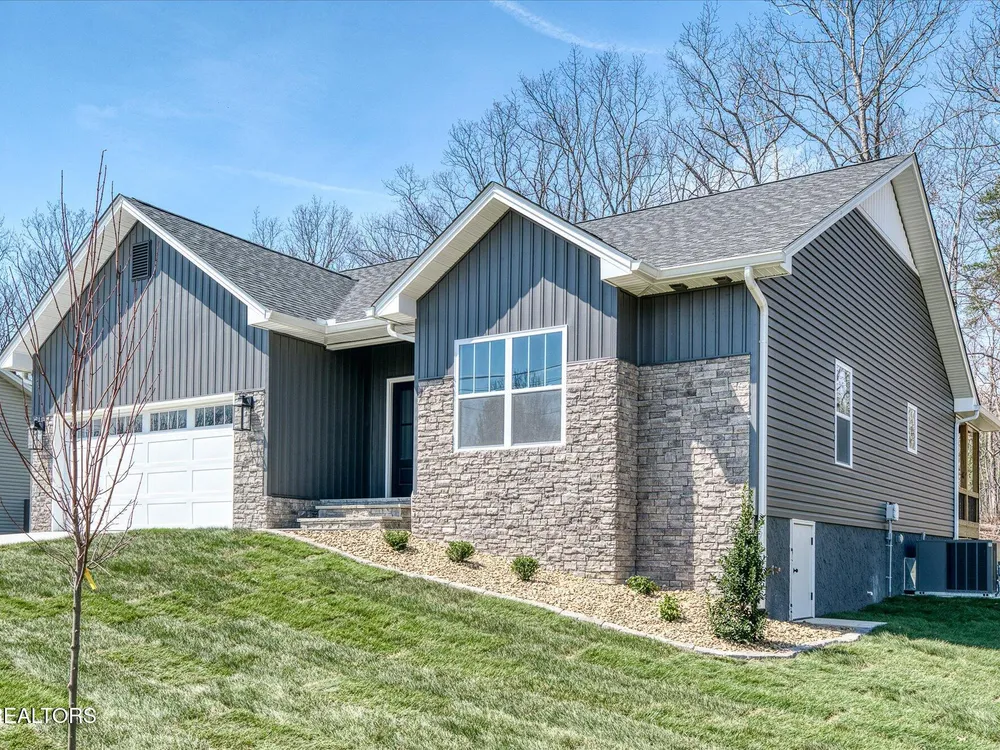 This lovely home is just a short walk to the central, paved walking trails for easy access to the pool, golf course, and The Grove bandstand! At just shy of 1,600 square feet, it offers more amenities than you would expect to see in this size range: a stylish half bath for guests and entertaining, roomy walk-in butler's pantry, custom closets throughout, tankless hot water heater, sleek, slide in range with air frying capabilities, 36'' tall upper cabinets, alcove into the main bedroom so you don't look directly into the space, upgraded fixtures, mudroom bench at garage entry, utility room with an abundance of cabinets and a sorting table, large concrete pad off the back deck and screened porch—perfect for a grilling station, driveway turn-around or use for additional parking AND the entire yard has been sodded and professionally landscaped--get a brand new home with all the bells and whistles without the frustration of muddy conditions while waiting for a yard to come in! County taxes noted are based on the current assessed property value prior to the home being constructed.