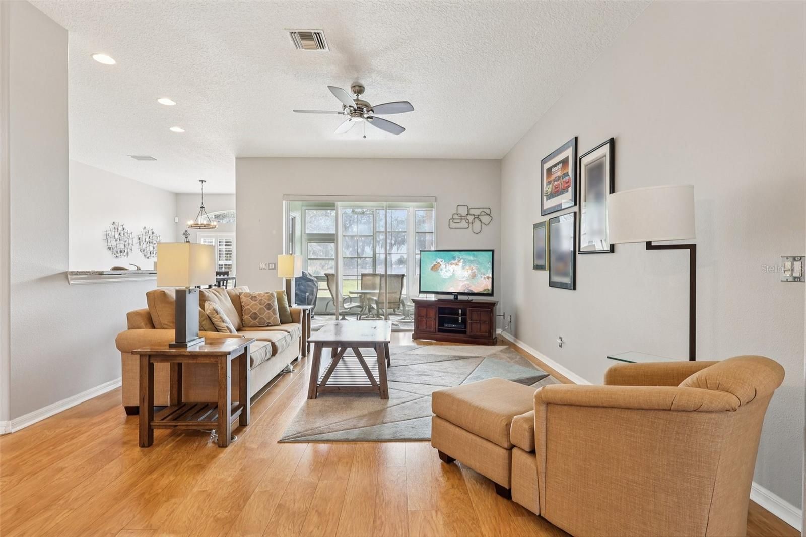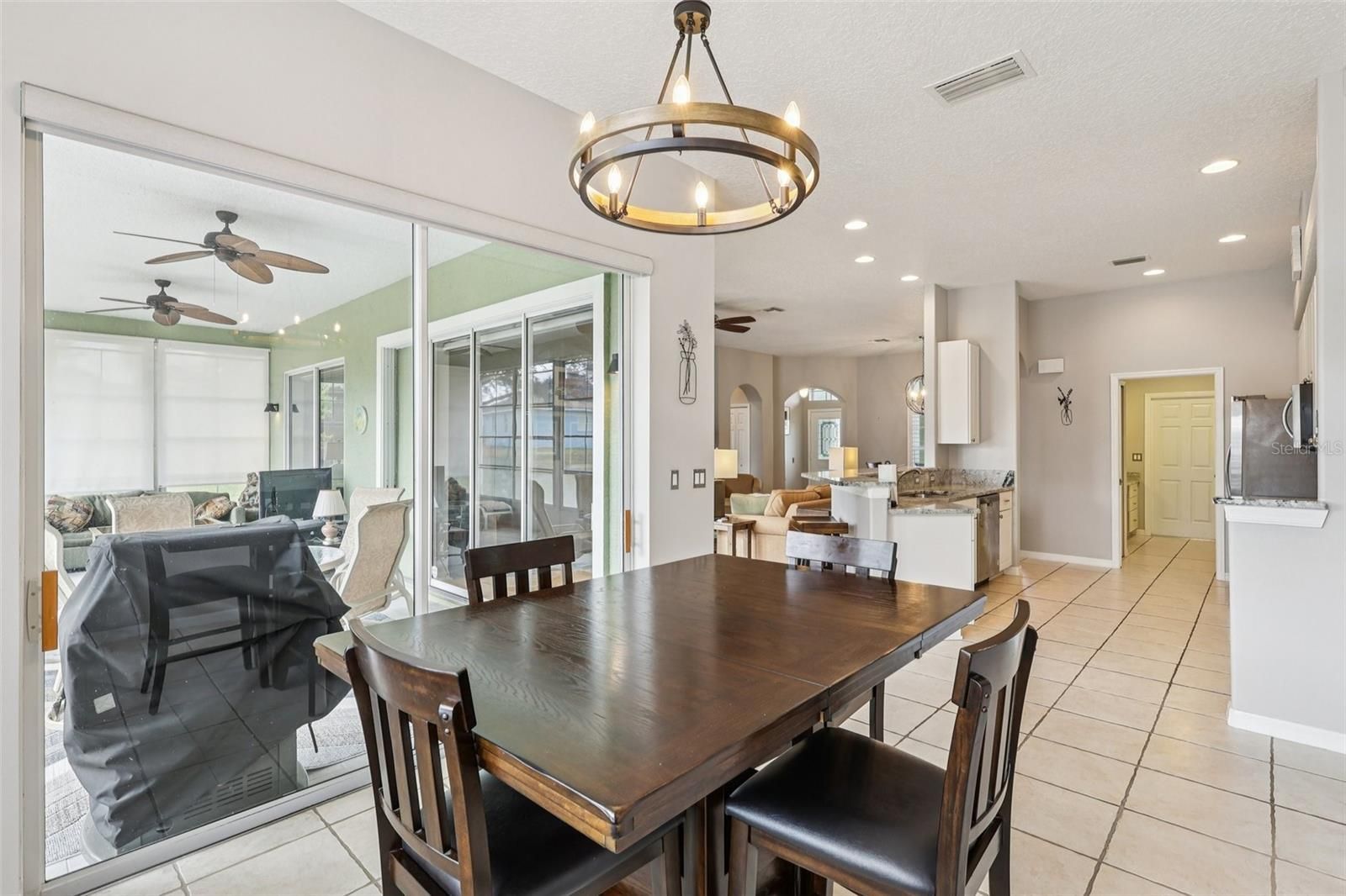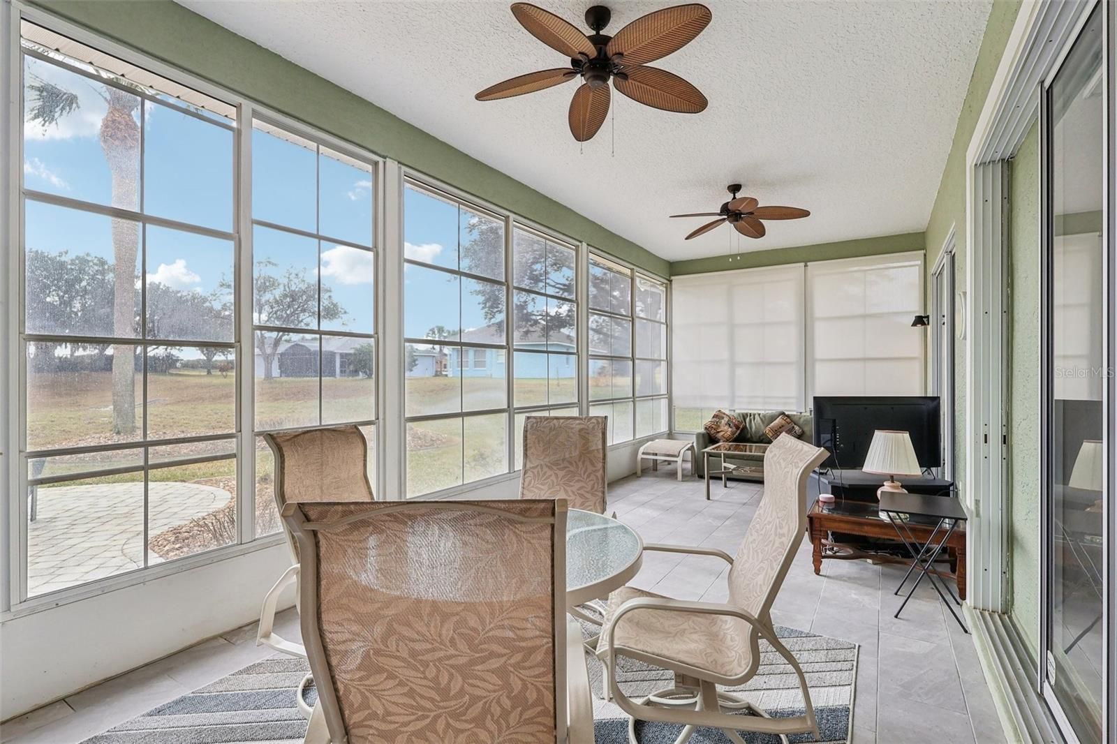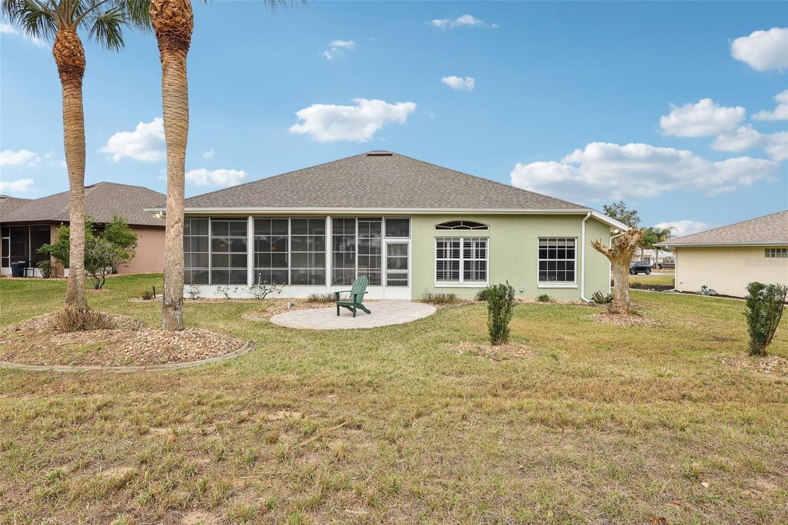 Located within a beautifully maintained 55+ gated community, this exceptional 3-bedroom, 2-bath residence offers refined comfort, thoughtful upgrades, and peaceful privacy with no rear neighbors — all set in a serene country setting.The home’s impressive curb appeal begins with a paver driveway, manicured landscaping, decorative stone beds, and clean curbing that create a welcoming first impression. Inside, a light-filled open floor plan provides a seamless flow ideal for both everyday living and entertaining. The updated kitchen features modern finishes and integrates effortlessly with the spacious living and dining areas, while updated baths and stylish flooring throughout add a cohesive, move-in-ready feel. An enclosed lanai extends the living space, offering a private retreat to relax and enjoy the tranquil backyard setting year-round. Plantation shutters and automatic raise-and-lower shades enhance both functionality and sophistication throughout the home. Significant updates include a new roof (2023) and new HVAC system (2019), providing long-term peace of mind. The two-car garage offers ample storage and convenience. Furniture is optional, allowing for a smooth and flexible transition to suit your needs. Residents enjoy access to a community pool, tennis courts, and a variety of organized club activities, all within a secure gated entrance and complemented by low HOA fees. With convenient access to major roads and shopping, this home offers the perfect balance of privacy, lifestyle, and accessibility. Elegant, well-appointed, and meticulously maintained — this is effortless 55+ living at its finest.