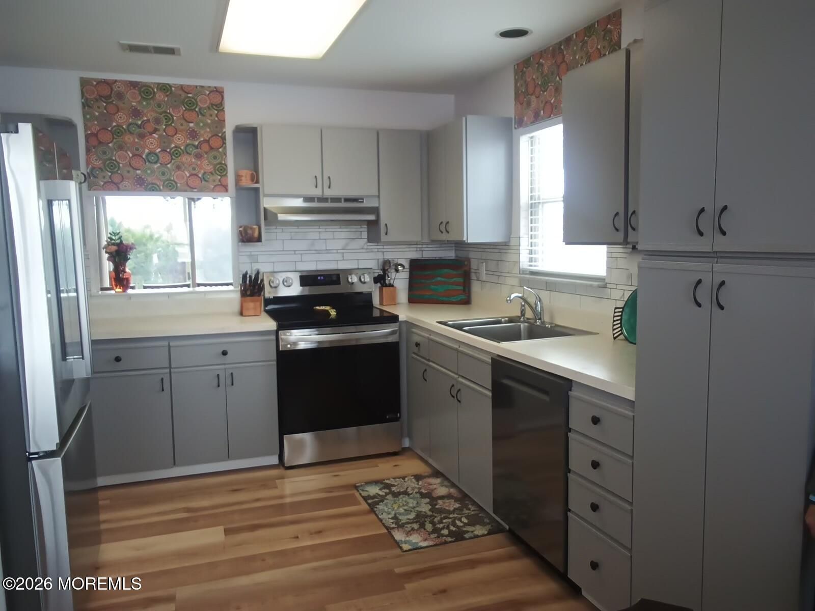 MINT!!! Truly lovely home. Just move in. Great Community with Clubhouse, Pool, Pickleball, bus and shuffleboard and exercise room. Brand new Stainless steel kitchen appliances including stove refrigerator and dishwasher arrived last week. High end vinyl flooring in all the main living area. Nice location with small patio with privacy shrubs. See it today.