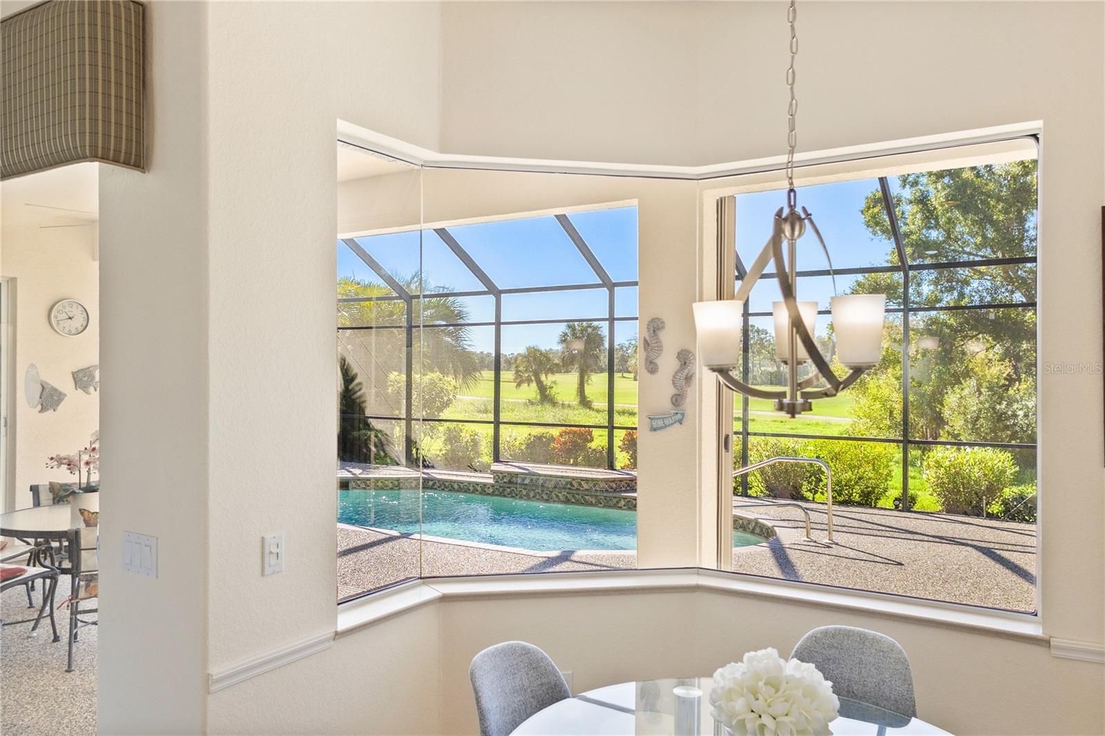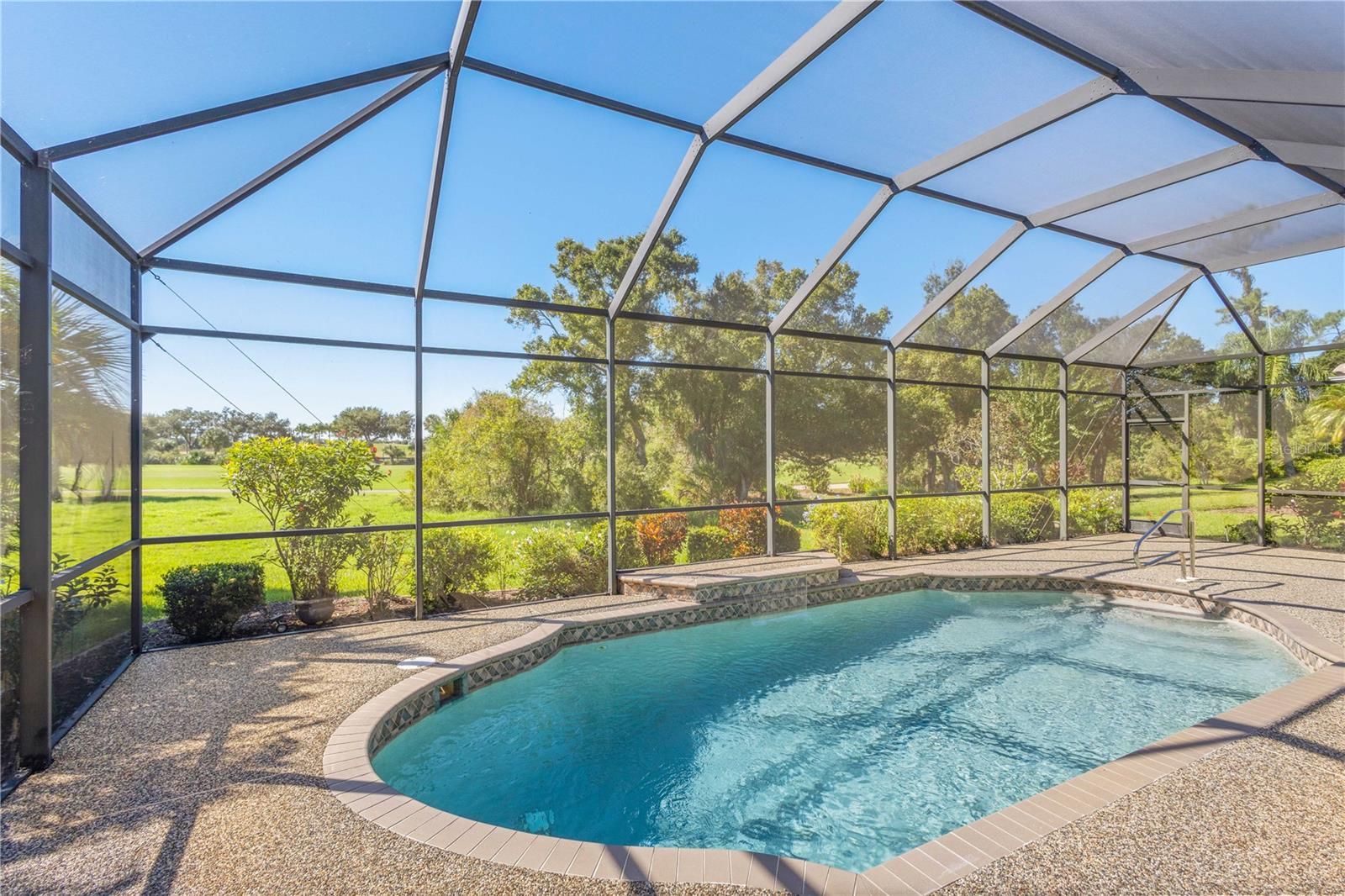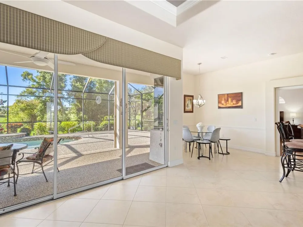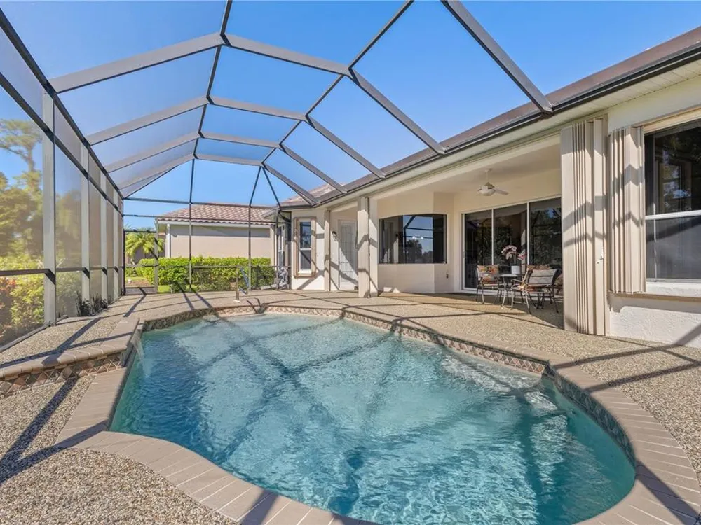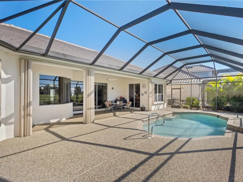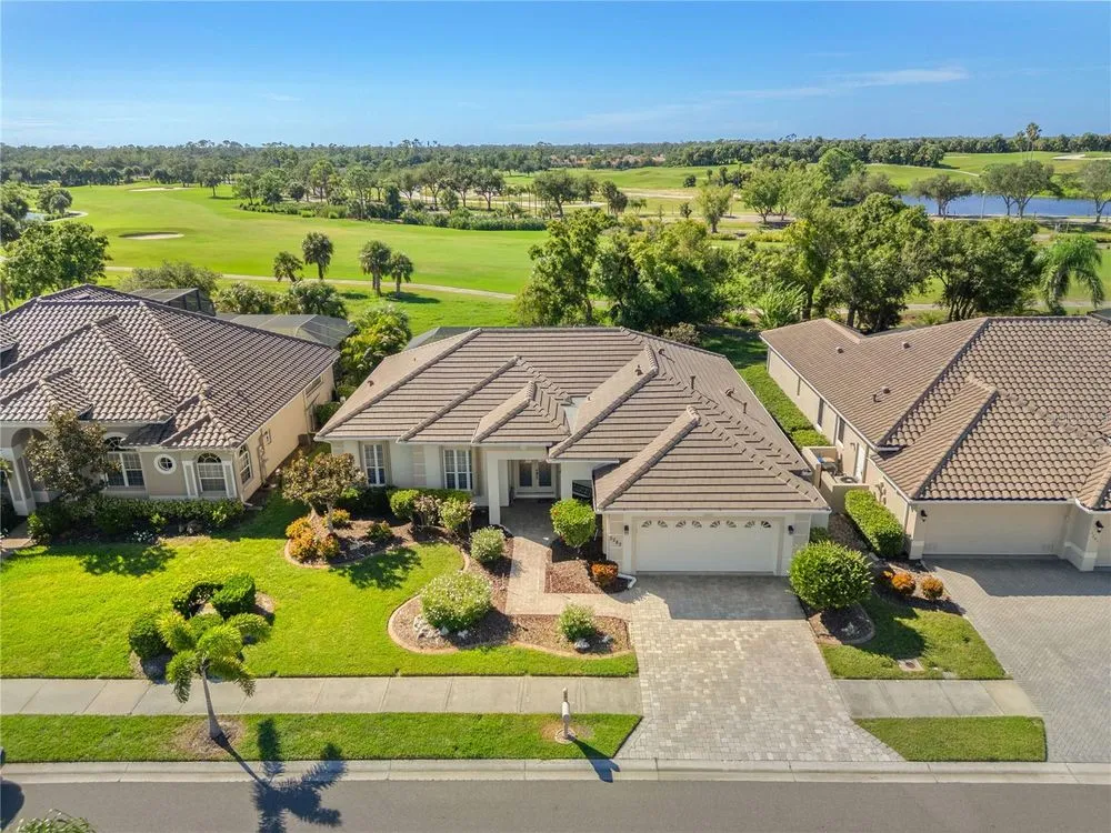 Come enjoy this impeccably kept beautiful 3 bedroom 2 bath, heated saltwater pool home with golf course views in the exclusive gated golf course community of Heron Creek Golf and Country Club! This gorgeous home features a brick paver drive and front porch leading to the leaded glass double door entry. Once inside you will be greeted by soaring tray ceilings complimented by crown molding in the expansive great room with triple sliders leading out to the lanai and pool including peaceful views of the #1 hole of the Marsh course. The formal dining room is a perfect place to enjoy a lovely meal with your friends and family. The kitchen is nicely appointed with an abundance of solid wood cabinetry, brand new Stainless Steel Refrigerator, stone countertops, breakfast bar and closet pantry. Adjacent to the kitchen is the breakfast nook with aquarium windows to enjoy the serene views of the pool and golf course. The expansive owner’s suite features, engineered hardwood floors, crown molding, pool access door, and lots of windows allowing the natural light to flow through. The ensuite bath includes separate sinks with stone counter tops, glass block walk in shower and soaking tub. This home design is a true split floor plan with the guest bedrooms on the opposite side of the home creating the utmost in privacy for you and your guests. The guest bedroom in the rear of the home has sliding doors that lead out to the lanai and pool area for easy access. The second bath is shared by the two guest bedrooms with a walk in shower, solid wood vanity with stone countertop. The lanai pool area is truly an oasis with a new expansive deck, serene views and the ideal southern exposure. Lots more nice features about this home including, New Roof, New AC, New Pool Heater, and Hurricane Shutters for peace of mind. The location of the home is outstanding! It is within walking distance to all Heron Creek has to offer… such as 27 holes of Arthur Hills designed golf course, 5 Lighted Har Tru tennis courts, remodeled fitness center, resort style pool and spa, newly renovated Courtside Cafe, 21,000 sq ft Clubhouse where you can enjoy casual and fine dining, not to mention the lengthy list of all the social activities! Heron Creek Golf and Country Club is close to area beaches, shopping, restaurants, Warm Mineral Springs, Cool Today Park and more. NOW is the time to make this special home yours today!
