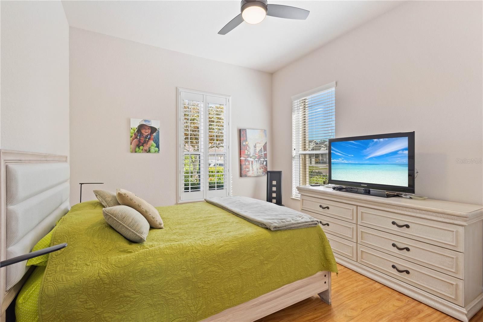 - Cathedral Ceiling(s), Ceiling Fan(s), Crown Molding, High Ceilings, Open Floorplan, Main Level Primary, Solid Surface Counters, Solid-Wood Cabinets, Split Bedrooms, Thermostat, Walk-In Closet(s), Window Treatments