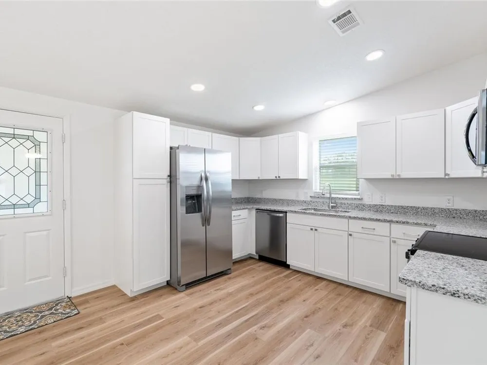 NO BOND ON THE GOLF COURSE, 2 bedroom 2 bathroom totally RENOVATED home. 2025 ROOF, HVAC, Orange Blossom Gardens section of BRAND NEW Kitchen, Granite Countertops, Stainless Steel Appliances, newer windows with NEW WINDOW BLIND, knock-down ceilings, and LVP FLOORING throughout. LED OVERHEAD LIGHTS, Paint and Baseboards. Both bathrooms shine! The primatry features tile shower and Shower Door, shower/tub combo in the guest bath, plus high-rise toilets, granite vanities, and updated mirrors. Additional upgrades include a GOLF CART GARAGE new exterior lighting, and refreshed LANDSCAPING that enhances the curb appeal. With all of these improvements already done, this move-in ready home is the perfect blend of convenience, comfort, and golf course living—just minutes from Spanish Springs and shopping and medical facilities on 441. Video tour on realtors YouTube Channel.