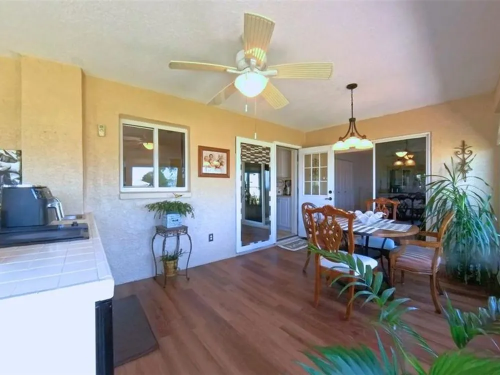 SELLER WILL CONTRIBUTE TOWARDS BUYER'S CLOSING COSTS and/or INTEREST RATES BUY DOWNS. Move-in Ready. Stunning home, beautiful open floor plan, located in the quiet, active, adult, golf community of Ocala Palms Golf & Country Club. This country club home has well maintained wood floors, large Kitchen area (equipped with stainless-steel appliances, upgraded cabinets and granite countertops), opening to the living and dining rooms, excellent for entertaining or just having an interactive family meal. This home has a HUGE sunroom (equipped with a summer kitchen) accessible from almost every room in the house. The well sized master suite with walk-in closet, spacious master bath with soaking tub, walk-in shower and double sink vanity on granite countertop is a split bedroom plan with the second and third bedrooms (each having a closet and ceiling fan) and sharing a second bathroom (which has a walk-in shower and granite countertop vanity). This home also has a spacious laundry room (equipped with washer, dryer, utility sink and closet) and a spacious 2 car garage. The Ocala Palms Golf and Country Club 55+ community encompasses an 18-hole golf course, clubhouse complex including an outdoor lap pool, a poolside jacuzzi, and an indoor heated pool, restaurant, along with tennis courts, bocce ball courts, fitness center, library and billiards room. Nearby you will find a shopping center with supermarket, banking, restaurants, fast food and numerous smaller shops. Ocala Palms is located in the heart of Ocala horse country, very close to the World Equestrian Center (WEC), and emergency medical facilities. Please call me for more information or to schedule a showing appointment.
