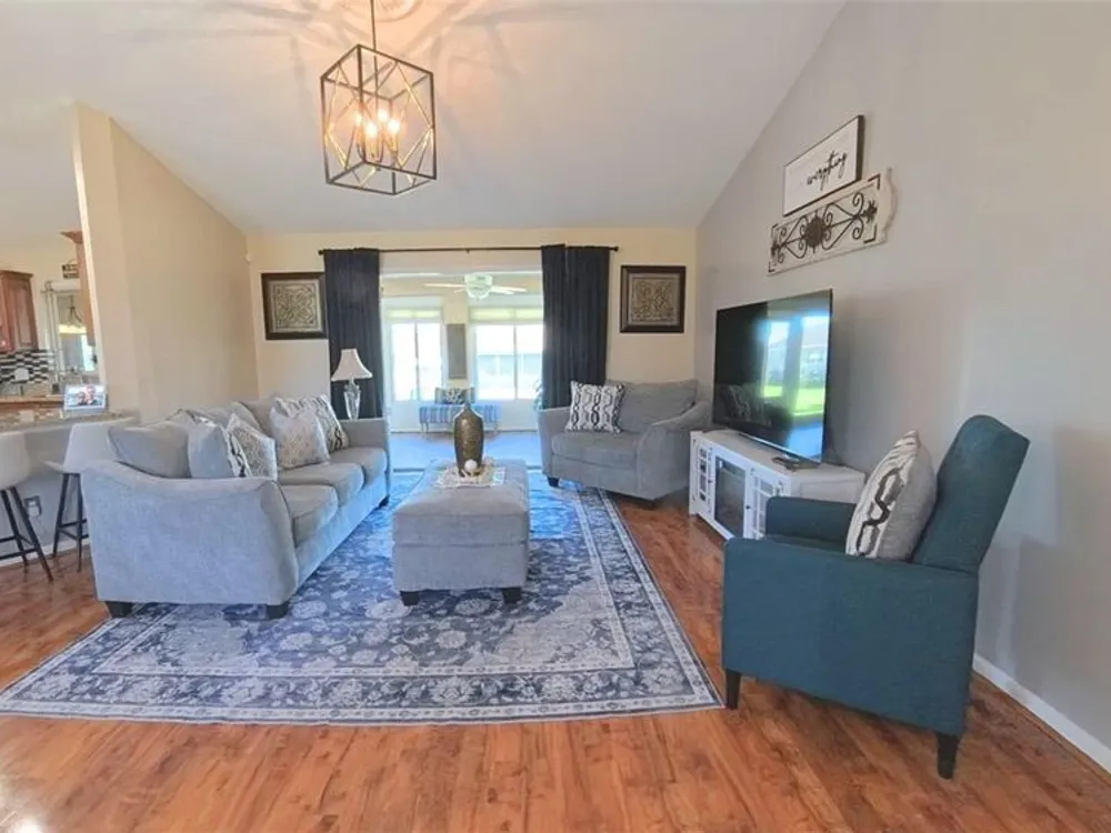 - Cathedral Ceiling(s), Ceiling Fan(s), Coffered Ceiling(s), Eat-in Kitchen, High Ceilings, Open Floorplan, Main Level Primary, Split Bedrooms, Stone Counters, Thermostat, Vaulted Ceiling(s), Walk-In Closet(s), Window Treatments