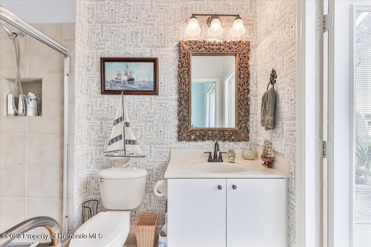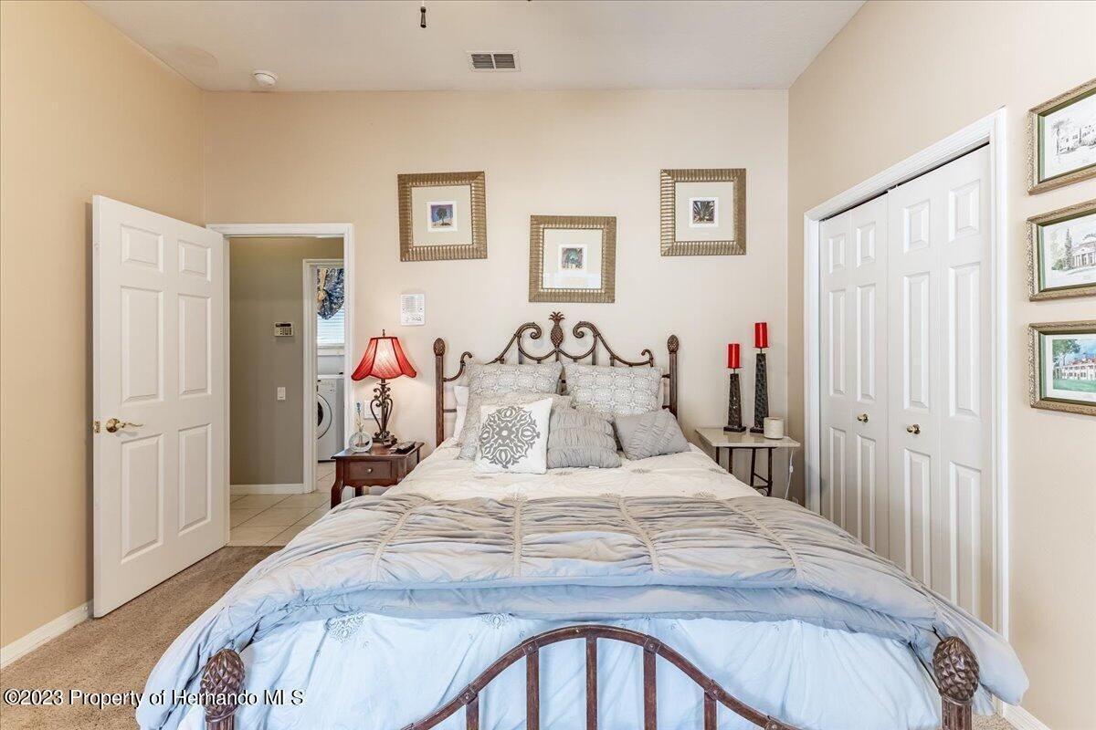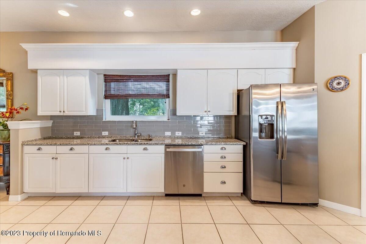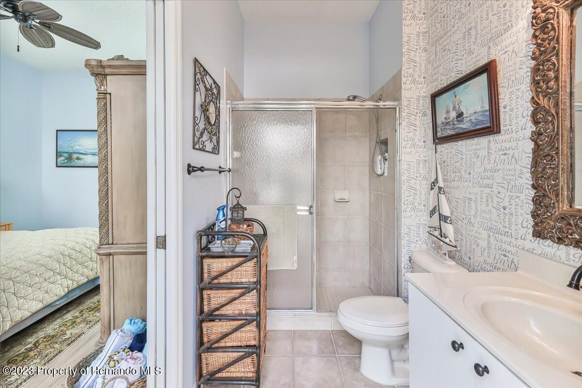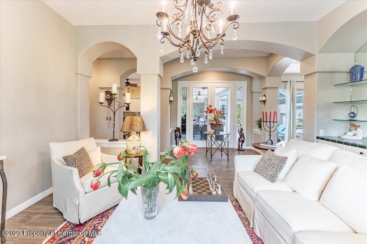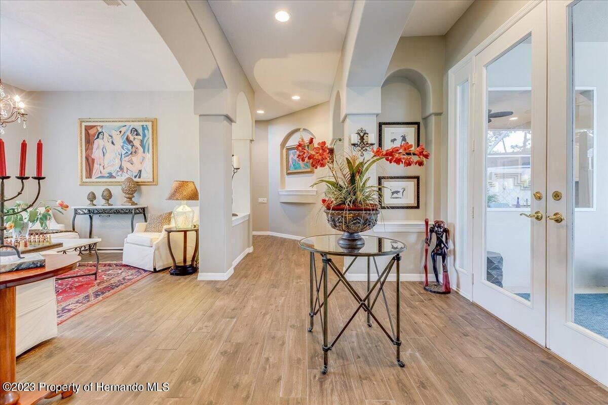 Paradise calls - will you be the one who answers? An exquisite experience from the tiled roof to the brand new dual pane windows, this spectacular 2-story home sits on the Silverthorn golf course. The secure gated neighborhood is a vivacious community with incredible amenities, including a clubhouse and The Legends restaurant, a community center, a jr-Olympic sized pool, fitness center, library, tennis courts, pickleball courts, and much more; plus, the HOA fees include cable and internet. Double front doors on this custom-built Rutenberg home reveal a dreamy courtyard featuring an in-ground pool with a fountain and an in-ground spa. Summer days call for lounging around the granite-topped tiki bar, sipping cool drinks from the mini fridge. Visitors can stay in the sizable cabana suite with beautiful laminate flooring, a walk-in closet, and a bathroom with a step-in shower. A functional floor plan in the main home offers flexibility for your living needs. The formal dining room has a built-in mirrored hutch and wet bar, so it could easily double as a formal sitting area or living room. The spacious family room is for game night, or cooler evenings curled up in front of the flickering glow of the gas fireplace, which is surrounded by a built-in entertainment center. You can slip out of another set of glass doors to the screened porch to take in the birdsong and the views of the backyard with your morning beverage. Overlooking the courtyard, you'll also find a guest bedroom with dual closets on the main floor, along with a full bathroom. Cooking for 2 or 20? Doesn't matter; the immaculate island kitchen is equipped with every modern convenience and elegant finish a cook could want, like granite counters, gray subway tile backsplash, a huge walk-in pantry, and gleaming stainless steel appliances. There's even a built-in double oven and a sleek flat cooktop, along with designer light fixtures. Tucked back by the large eating nook is the staircase that leads to sanctuary: the primary suite and study. The massive primary suite dominates most of the upstairs space, containing dual walk-in closets, a large sitting area, another cozy gas fireplace, and a private balcony with a sweeping view of the course out back. Experience spa-like luxury in the primary bath with its dual sink vanities, large soaking tub, and glass walk-in shower. And just off the stairs, an impressive room/study with built-in shelves and a desk awaits; it would make an excellent den, library, or even a home office. It also contains the entrance to a substantially-sized storage room, where you can safely stow your belongings in a temperature-controlled environment. The 2.5 car garage downstairs offers even more storage space in the form of a workbench and cabinets — now freshly painted along with the floor, walls, ceiling, and cabinets for a crisp, updated look. Both AC units have been recently replaced (2018 and 2022). Silverthorn is centrally located to plenty of shopping and dining options, and minutes from the Gulf of Mexico; access to Tampa via the Suncoast Parkway is quick and easy. Anderson Snow Park, with its amazing sports complex, and Veterans Memorial Park, with its popular walking trails, are both less than 6 miles away. Don't forget to check out the world-famous mermaids at Weeki Wachee Springs State Park, which also has a canoe/kayak launch and a waterpark in the summer months. Make your dream life a reality, and schedule your tour to see this beauty today!