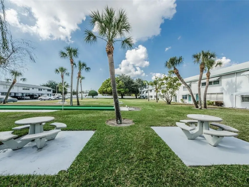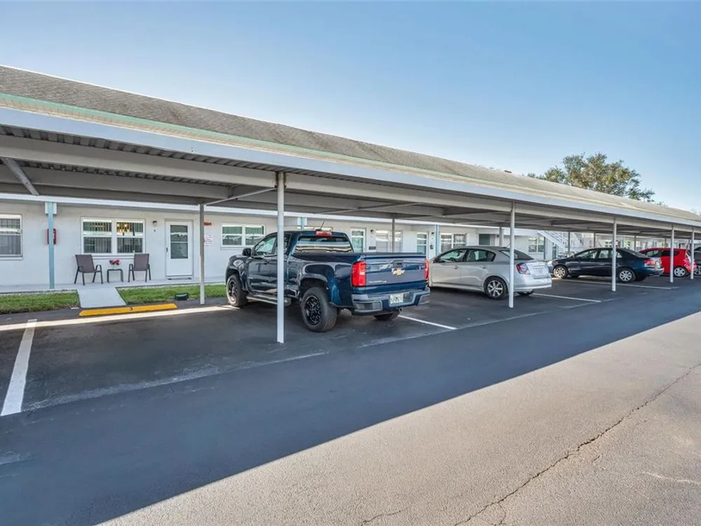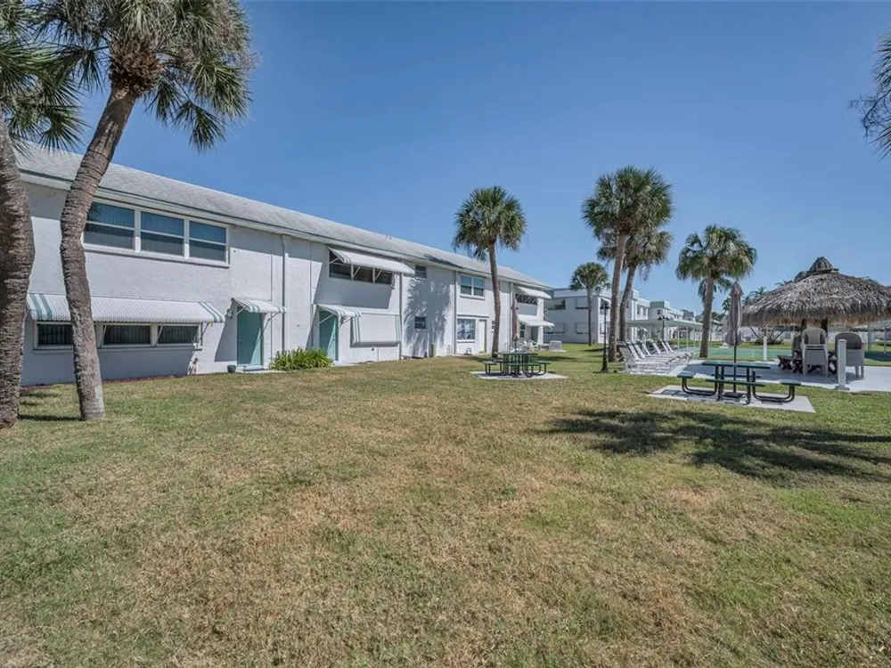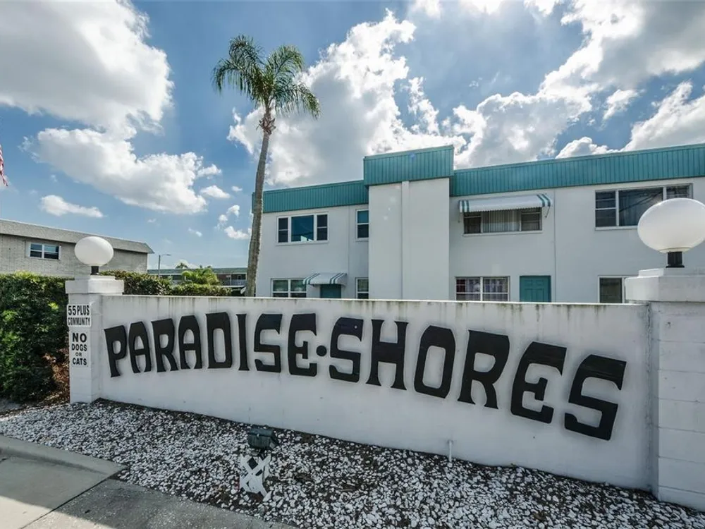 WOW ..... !st Floor ..... Welcome to Paradise....! Spacious 2 Bedroom floor plan with Floridaroom that overlooks the large courtyard and barbeque picnic area. Open the front door to an inviting Living area and Dining area. woodlike plank flooring thru-out. Convenient galley kitchen with plenty of cabinets and pantry make it easy for any Chef. Master Bedroom includes a wall of double closets and entrance to the den/familyroom/office complete with a view of the grassy courtyard. Abundance of updated windows provide loads of natural light. The spacious 2nd bedroom includes a large closet and is perfect for your guests. Watch out ..... they may not want to leave. The AC has been updated. Your covered carport is right outside your front door. The Paradise Shores Community is designed with landscaped court yards. It's popular low monthly HOA fee includes Internet, Wifi, Cable TV, Gas for cooking and heat and hot water, building exterior, reserves, building insurance, grounds maintenance, recreational facilities, roof, trash, sewer and water. This 55+ Active Community which has many amenities, a superb location, a recreation center with a library, a heated swimming pool, shuffle board and a bocce court, firepit. An additional storage area comes with the unit and is located near the laundry room. Whether a seasonal or permanent resident you will enjoy calling Paradise Shores your home! Sorry, Pets are not allowed. Minimum Lease Requirement is 3 months after 1 year ownership or owner can reside in unit for 6 months. Conveniently located to shopping and restaurants. There is Publix Grocery Store just across the street. Minutes to local Beaches, additional shopping and the Tyrone Mall, Downtown St. Petersburg and the new Pier. And it's an easy commute to Tampa International Airport. Whether this is your fulltime Home or your second vacation Home.... this affordable condo is Home! Welcome HOME...! Call today for your personal viewing or a Facetime Real-Time Tour.