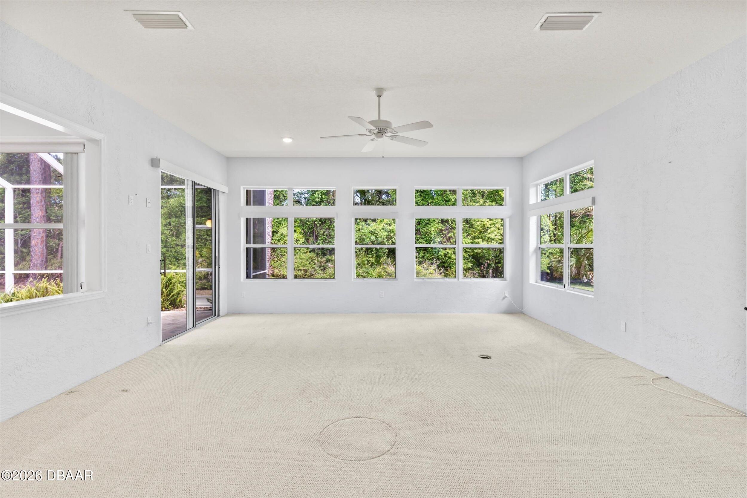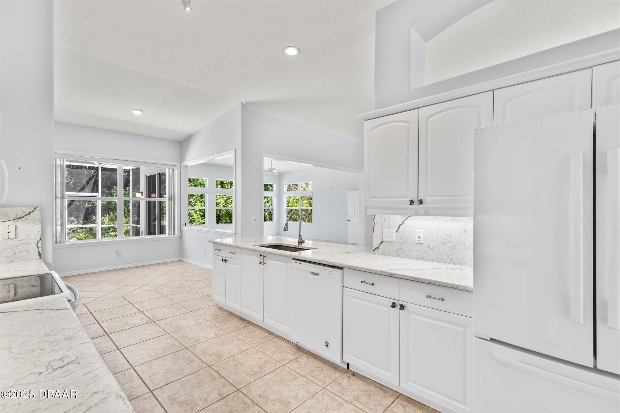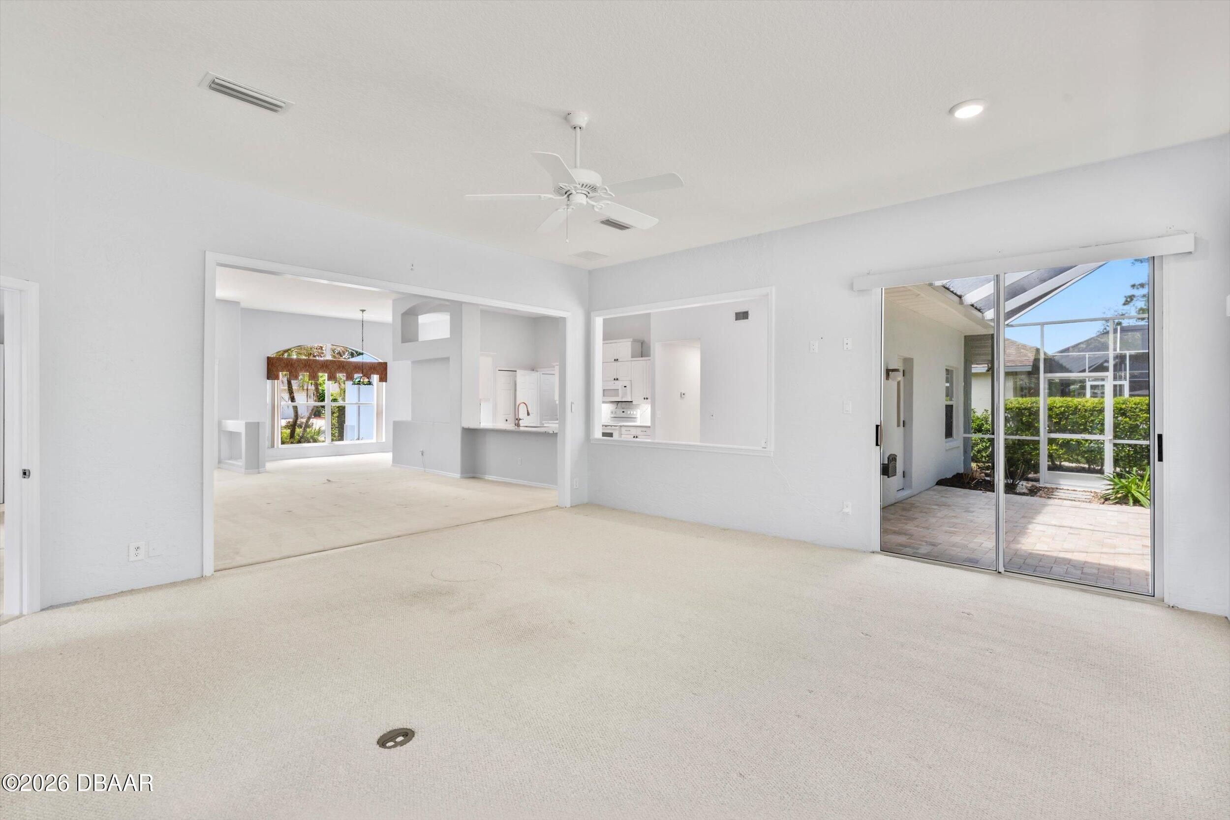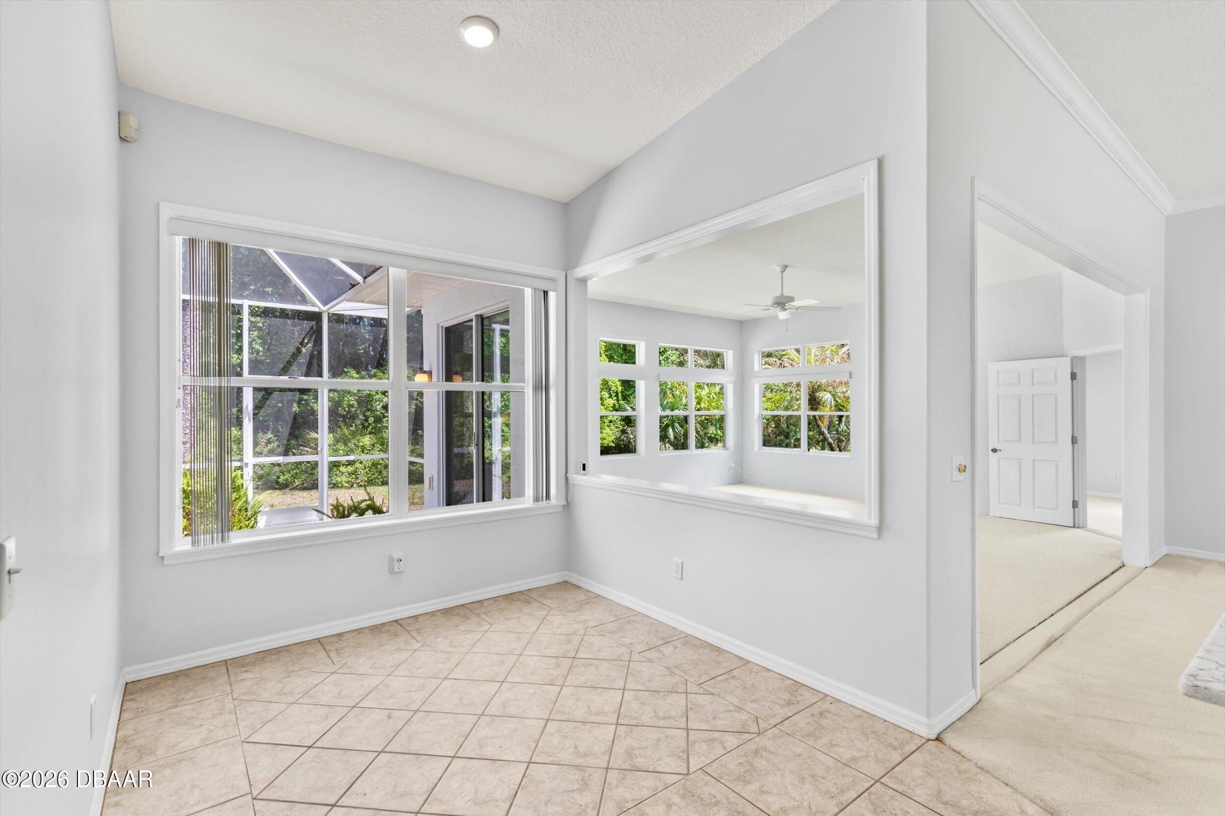 This impressive home offers nearly 2,300 square feet of beautifully designed living space with 3 bedrooms, 2 baths, and a 2-car garage. From the moment you walk in, you'll notice the soaring ceilings, open layout, and walls of windows that flood the home with natural light. The thoughtfully designed split floor plan provides privacy, while multiple living areas--including a formal living room and spacious family room--create the perfect setting for both everyday living and entertaining. The oversized primary suite is a true retreat, conveniently accessible from both the foyer and family room. The kitchen is well-appointed with granite countertops, a matching backsplash, and a full appliance package, along with a bright eat-in area and a separate formal dining room. Recent updates include a 2017 roof and a 2025 whole-home generator for added peace of mind. Step outside to enjoy the screened porch and pavered entry and patio, all overlooking a large, private lot that backs to conser vation--offering a peaceful, natural backdrop you'll love coming home to. Breakaway Trails, in Ormond Beach, is a guard-gated community known for its natural setting and strong amenity package, including a clubhouse, community pool, fitness center, tennis and basketball courts, and walking and biking trails throughout. The neighborhood also features scenic lakes, mature landscaping, park and playground areas, and a covered pavilion for gatherings, all set on spacious homesites that offer privacy. Conveniently located just minutes from the beach and near outdoor recreation areas, Breakaway Trails offers a great balance of lifestyle, security, and everyday convenience. All information taken from the tax records, and while deemed reliable, cannot be guaranteed.