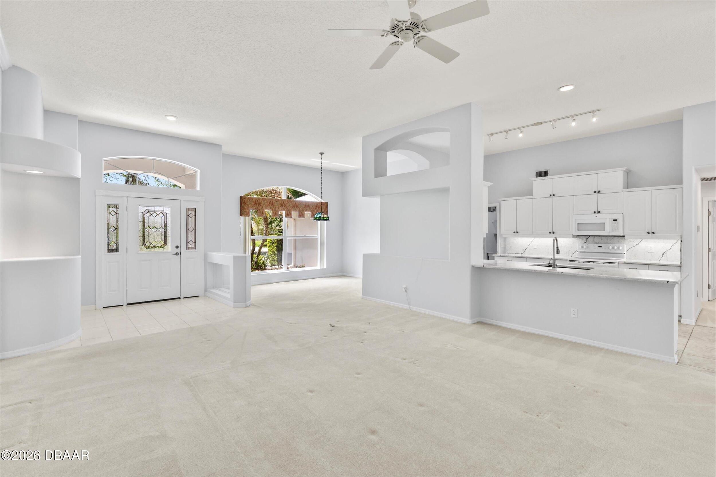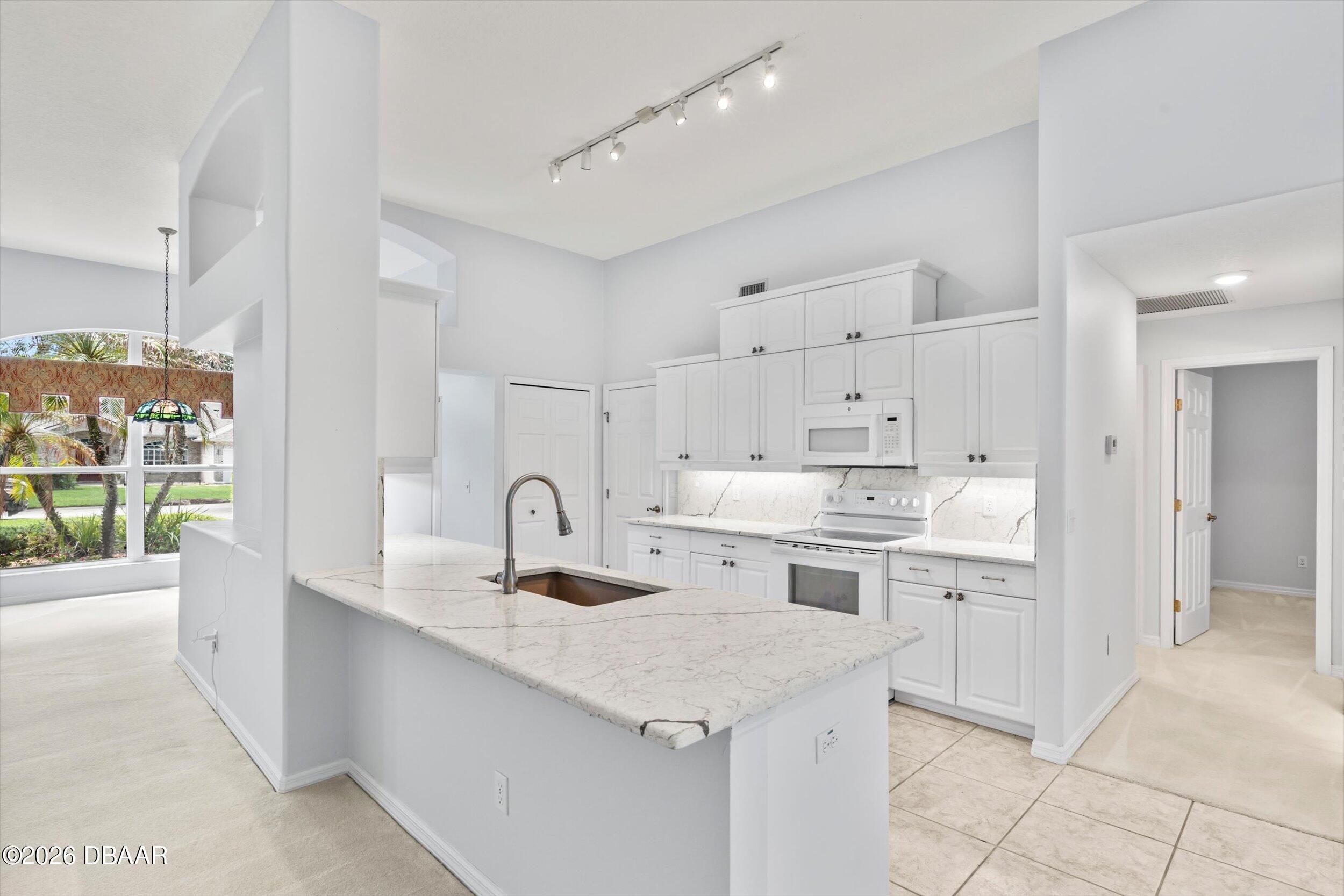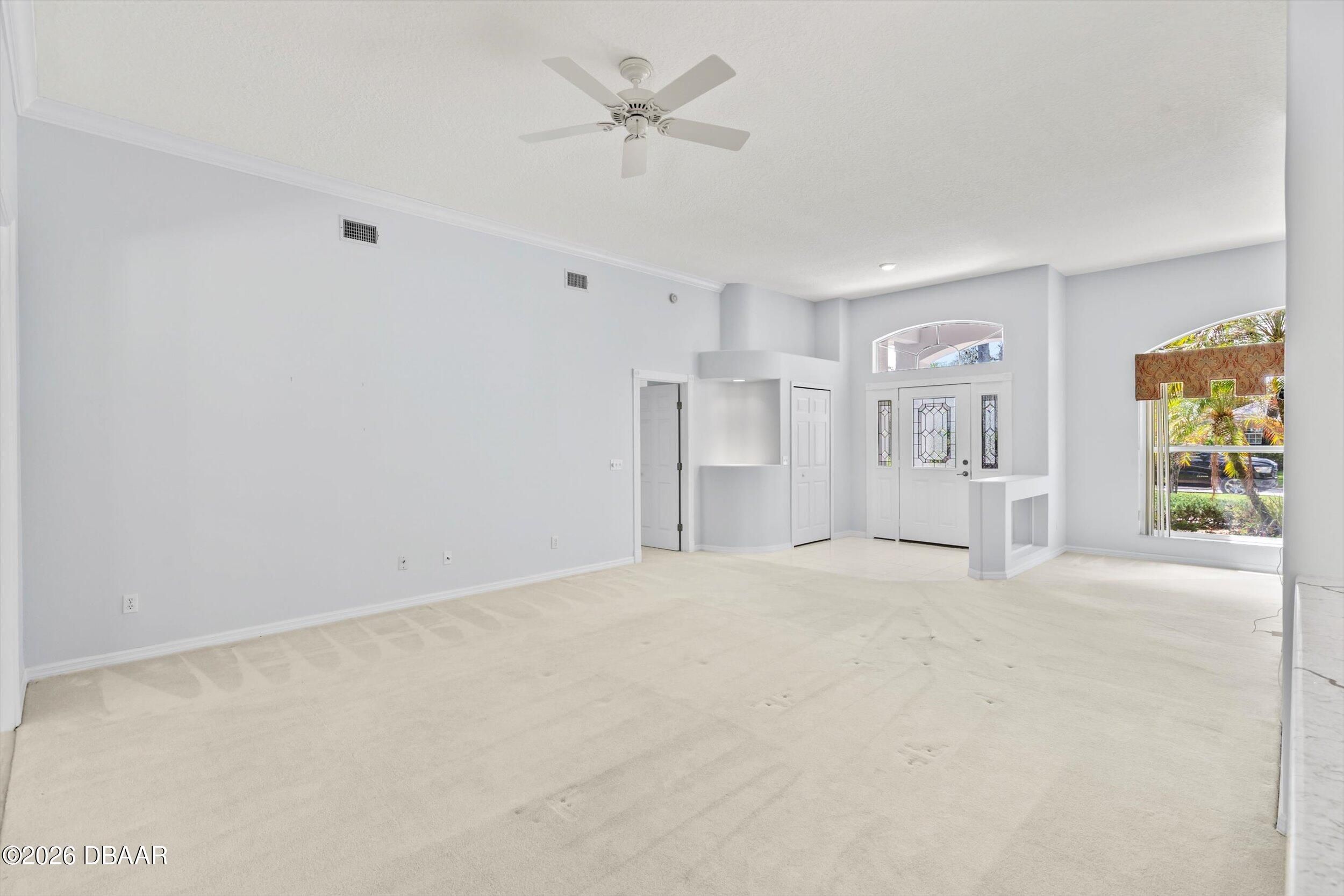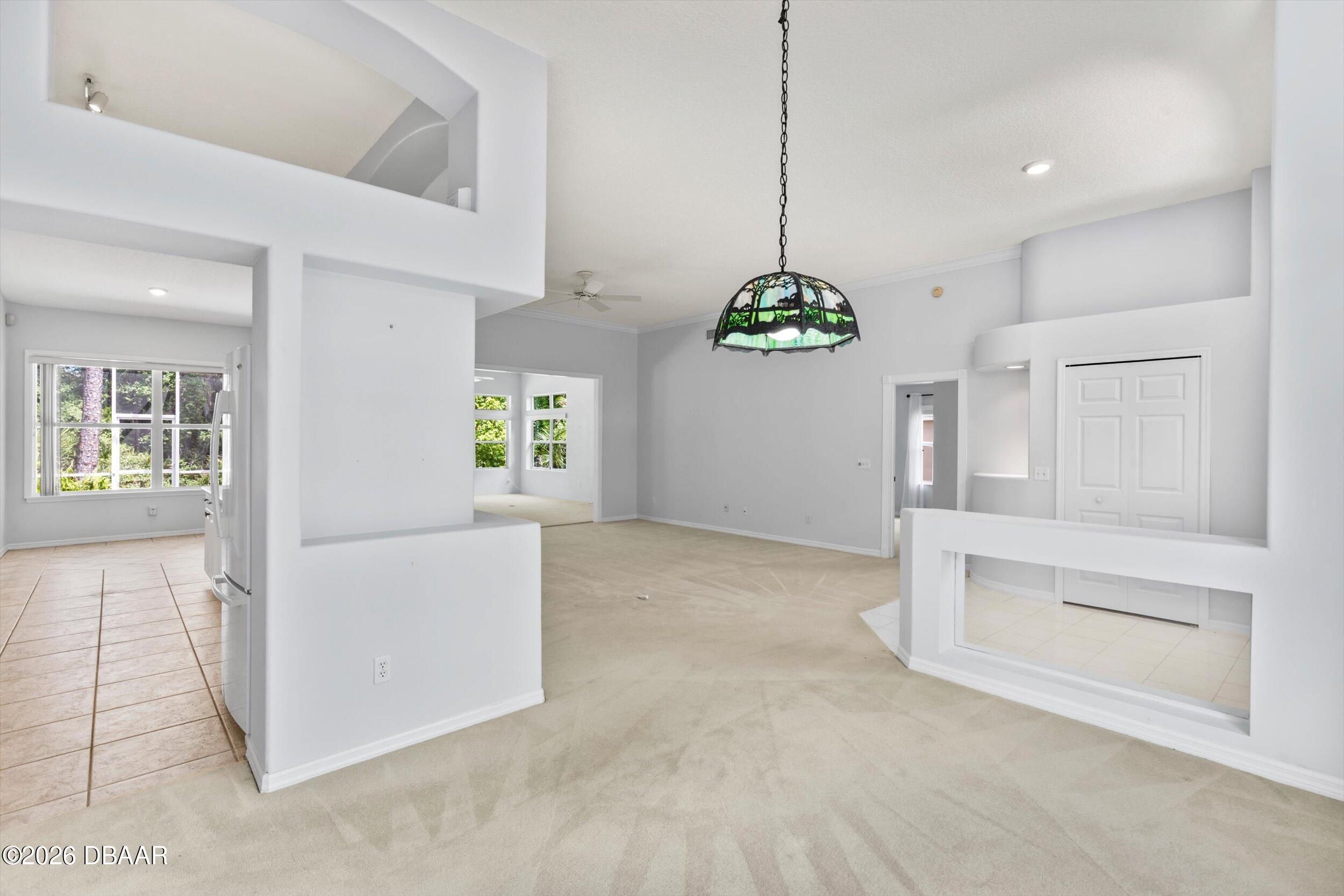 This impressive home offers nearly 2,300 square feet of beautifully designed living space with 3 bedrooms, 2 baths, and a 2-car garage. From the moment you walk in, you'll notice the soaring ceilings, open layout, and walls of windows that flood the home with natural light. The thoughtfully designed split floor plan provides privacy, while multiple living areas--including a formal living room and spacious family room--create the perfect setting for both everyday living and entertaining. The oversized primary suite is a true retreat, conveniently accessible from both the foyer and family room. The kitchen is well-appointed with granite countertops, a matching backsplash, and a full appliance package, along with a bright eat-in area and a separate formal dining room. Recent updates include a 2017 roof and a 2025 whole-home generator for added peace of mind. Step outside to enjoy the screened porch and pavered entry and patio, all overlooking a large, private lot that backs to conser vation--offering a peaceful, natural backdrop you'll love coming home to. Breakaway Trails, in Ormond Beach, is a guard-gated community known for its natural setting and strong amenity package, including a clubhouse, community pool, fitness center, tennis and basketball courts, and walking and biking trails throughout. The neighborhood also features scenic lakes, mature landscaping, park and playground areas, and a covered pavilion for gatherings, all set on spacious homesites that offer privacy. Conveniently located just minutes from the beach and near outdoor recreation areas, Breakaway Trails offers a great balance of lifestyle, security, and everyday convenience. All information taken from the tax records, and while deemed reliable, cannot be guaranteed.