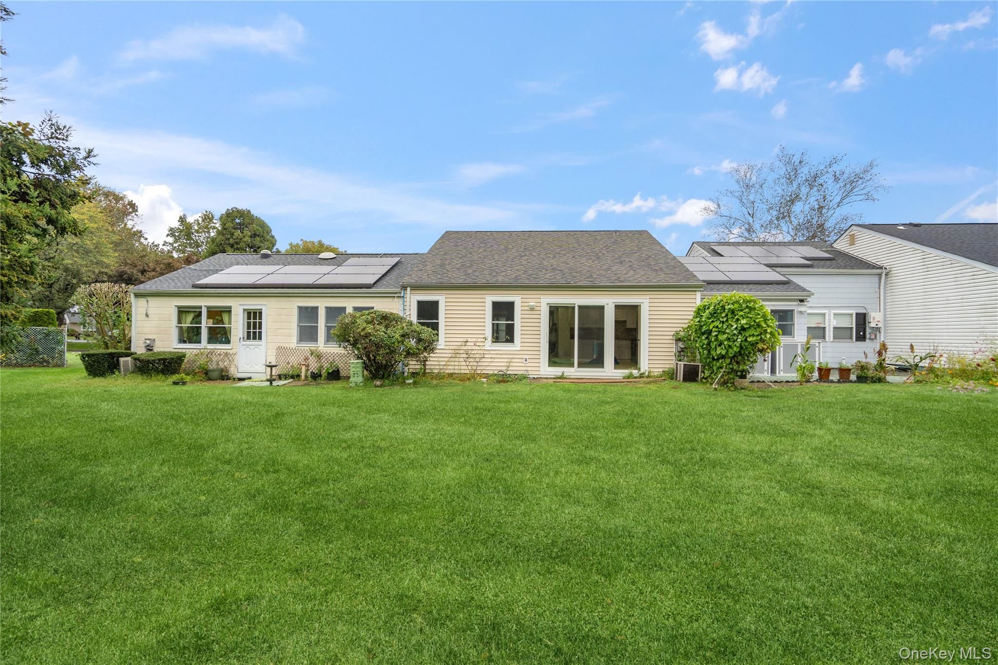 Beautifully Updated Ranch-Style Home in Strathmore Gate East (55+ Community)! Experience easy, single-level living in this fully updated 2-bedroom, 1-bath ranch located in Strathmore Gate East, one of the area’s most sought-after Active Adult (55+) communities in Coram, NY. The renovated eat-in kitchen features GE stainless steel appliances, including a French door refrigerator and a microwave above the range. The full bath has been beautifully updated with a walk-in shower, and the home features new luxury vinyl flooring. Additional updates include new windows, siding, roof, gutters, and interior doors—plus new recessed lighting, an upgraded electrical panel, and sliders leading to your private outdoor space. Home features attic for extra storage with ease of pull down staircase. Enjoy the convenience of two parking spots right in front of the unit. Community is pet friendly; has its own dog park! Residents of Strathmore Gate East enjoy access to a wide array of amenities, including a clubhouse and amenity center, fitness center, outdoor pool, ballroom, library, billiards, bocce ball courts, and a communal outdoor patio. Homeowner only pays electric and cable. Move-in ready and beautifully refreshed, this home offers comfort, style, and a vibrant lifestyle—all within a well-maintained 55+ community.