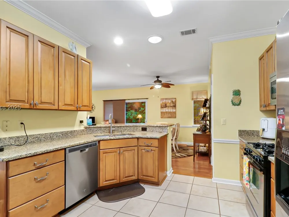 - Ceiling Fan(s), Main Level Primary, Pull Down Attic Stairs, Smooth Ceilings, Window Treatments, Eat-in Kitchen, Pantry