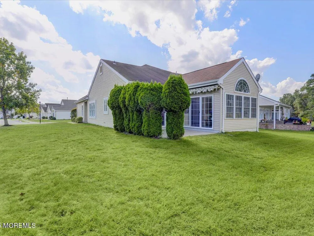 Set on an oversized corner lot in the desirable Westlake Golf & Country Club, this Manchester model pairs spacious single-level living with a bright, neutral interior that feels instantly inviting. Practical upgrades include newer HVAC, newer garage door, walk-up attic stairs for storage, and ample closets throughout the floor plan balances open gathering spaces with quiet retreats. A welcoming spacious eat-in NEWER KITCHEN, featuring stone countertops, stainless steel appliances, subway tile backsplash and ample cabinetry. A sunroom and library/office extend the living space, offering flexibility for small gatherings, working, or relaxing with a good book. Beautiful flooring runs underfoot, while sliders open the home to fresh air and an electric awning provides shade for outdoor enjoyment. Living here means enjoying all the resort-style amenities Westlake is known for: a 30,000 sq. ft. clubhouse, Arthur Hills-designed 18-hole golf course, indoor and outdoor pools, fitness center, tennis and bocce courts, card and craft rooms, plus on-site dining and a full calendar of activities. With its ideal location, thoughtful updates, and all the vibrancy of Westlake living, 53 Pine Valley Road is a home where comfort meets community.
