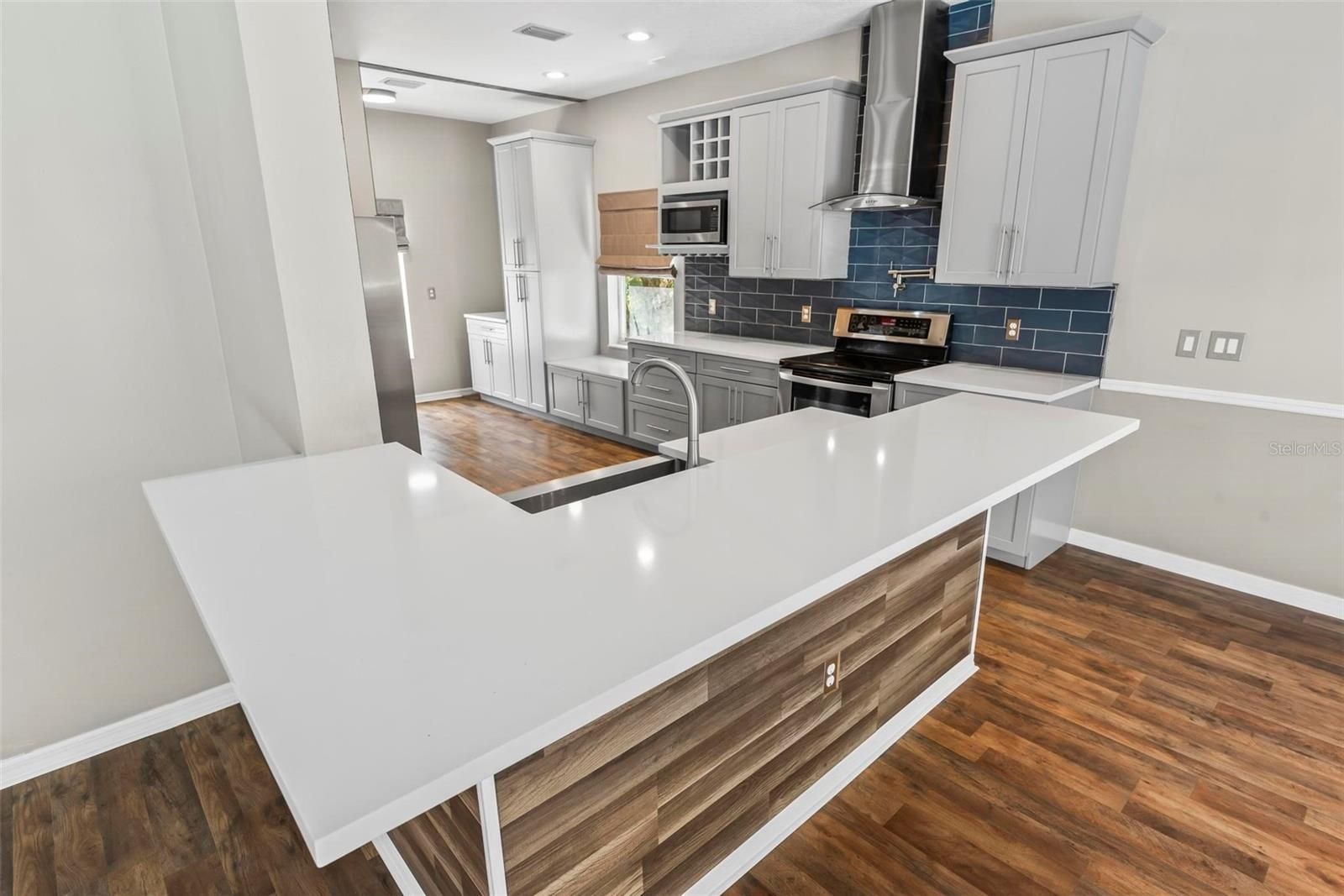 - Main Level Primary, Solid Surface Counters, Solid-Wood Cabinets