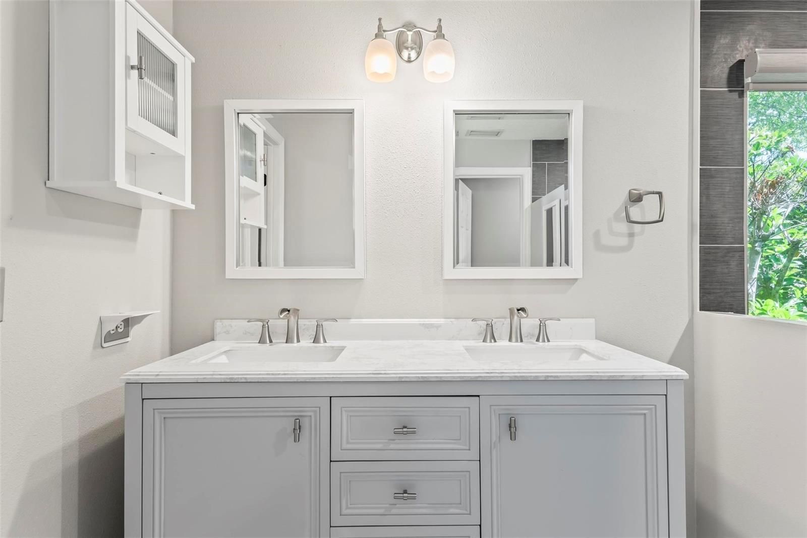 RARE FIND IN GRAND HAVEN. Set on a quiet cul-de-sac with an oversized lot. Relax on the expansive outdoor lanai, complete with a private pool, poolside half bath, and abundant space for outdoor living. The first-floor primary suite features sliders to the lanai and a renovated en-suite (2023) with a walk-in tile shower and dual sinks. The open-concept kitchen and living room provide a bright, welcoming space, with large sliding doors leading to the pool area. A second half bathroom is conveniently located off the living room. The newly remodeled kitchen (2023) includes quartz countertops, a tile backsplash, a pot filler, new stainless steel appliances, and a charming window bench. Upstairs are four spacious bedrooms and a renovated bathroom. Recent upgrades include new roof (2020), HVAC systems (2023), pool resurfacing (2023), exterior and pool deck paint (2022), new garage door (2021), and gutters (2020). Grand Haven features picturesque oak tree-lined streets, a 24-hour guard gate, and an extensive range of amenities including two community pools and spas, tennis, pickleball, bocce ball, shuffleboard, a poolside café, miles of walking trails, and more. Optional membership is available for the Jack Nicklaus Signature Golf Course and on-site restaurant.