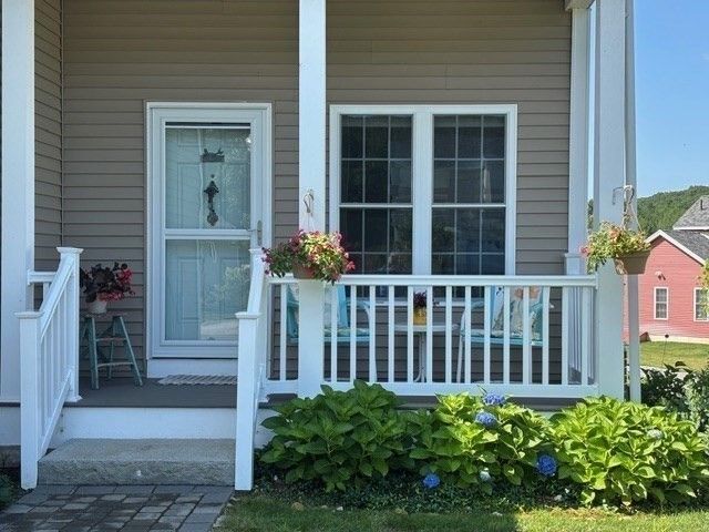 Welcome to 53 Tea Party Circle. Westminster village 55+ community available for YOU … One level living just like new offering open floor plan with hardwood floors throughout, bright white kitchen with quartz counters , fully applianced with new dishwasher (2025) new stove/microwave (2022) breakfast bar and open to dining area and living room with fireplace. Separate alcove ideal as office nook or sitting area. Spacious master suite with walk in closet and private bath with walk in shower and double vanity sink and quartz counters. 2nd bedroom is bright and sunny with access to composite deck . Main bathroom was updated with a walk-in shower. Gutters added (2022), New Hot Water Heater (2025). Large open basement with full windows & slider to exterior ideal spot to add a patio . Central air and front porch are added extras to this lovely home coupled with 2 car garage . Don't wait this one won't last long!