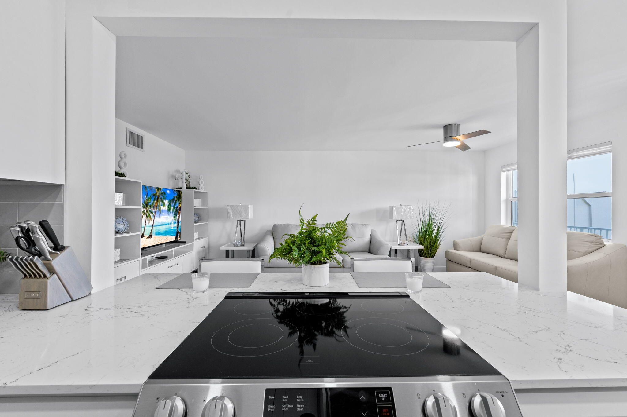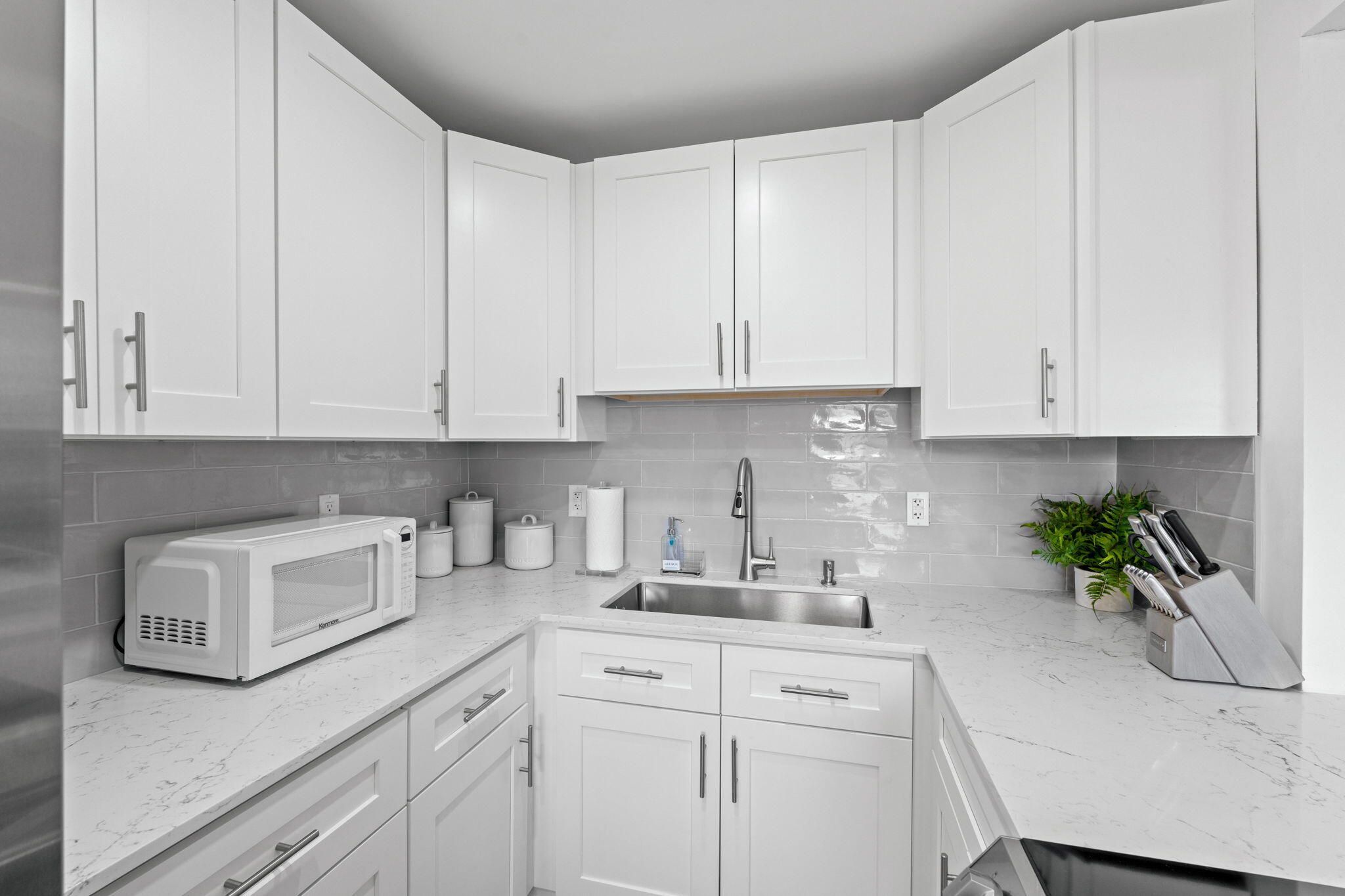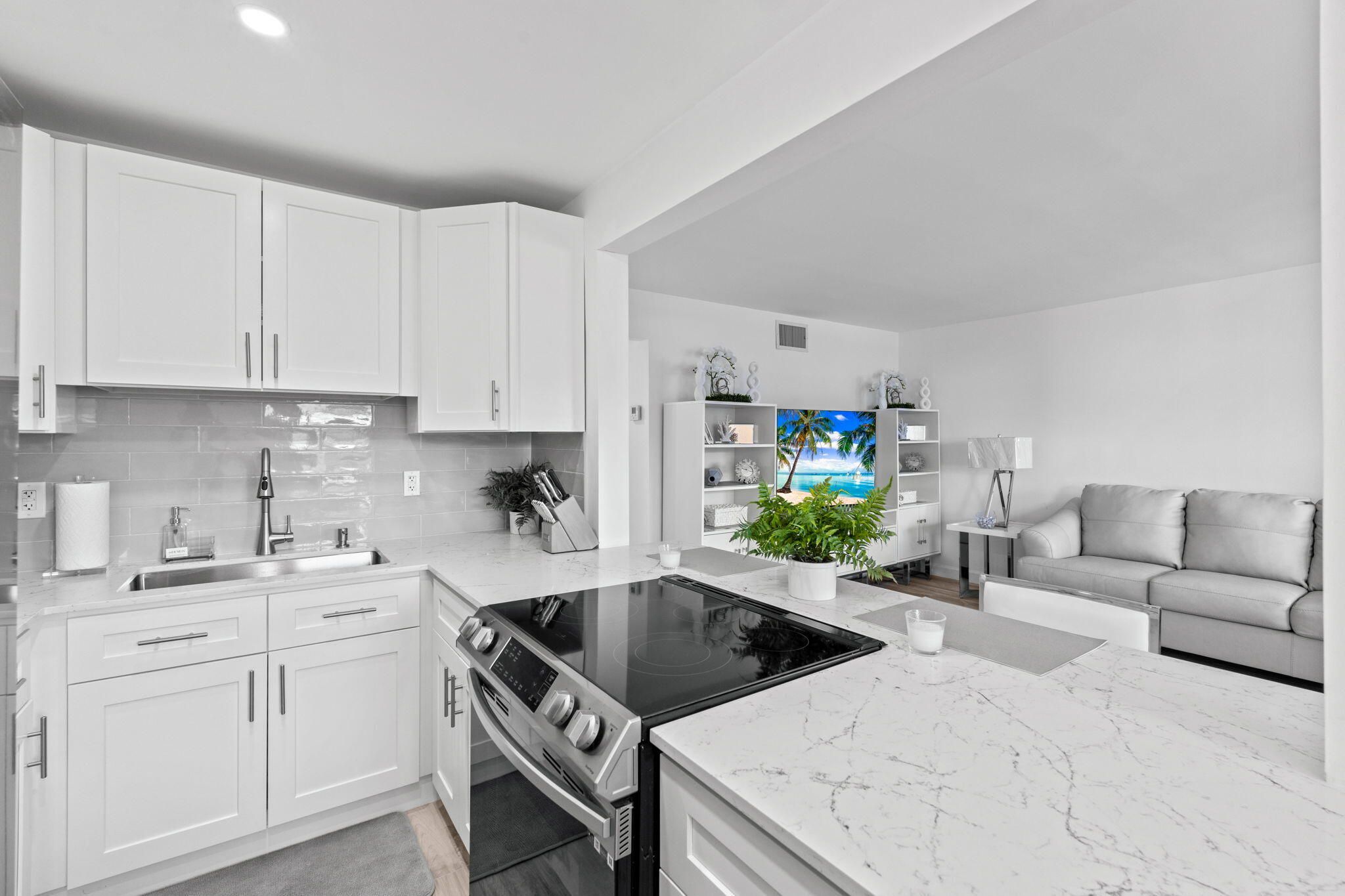 Beautifully renovated 2BR/1BA condo in Sterling Village, Boynton Beach. This turnkey, fully furnished home features an open kitchen with quartz counters, white shaker cabinets, and stainless steel appliances. Wide plank flooring, recessed lighting, and central A/C bring modern comfort throughout. Bathroom fully updated with glass shower, designer finishes, and LED mirror. Enjoy intracoastal views from the screened balcony and bedroom. Elevator building with community pool, clubhouse, shuffleboard, putting green, and private waterfront boardwalk just steps away. Active 55+ community near Banana Boat, Two Georges, and downtown Boynton Beach. Welcome to Sterling Village, a vibrant intracoastal community in the heart of Boynton Beach, Palm Beach County. This stunning 2-bedroom, 1-bath condo has been meticulously updated throughout, making it truly turnkey and ready to enjoy. The open-concept kitchen was reimagined to create flow into the dining and living areas, complete with new white shaker cabinets, soft-close drawers, quartz countertops, recessed lighting, and stainless steel appliances (2023). Additional upgrades include new wide plank flooring, central A/C with ducting, updated electrical panel, new wiring and outlets, recessed LED lighting, modern ceiling fans, and new drywall/paint. The spa-inspired bathroom has been completely redone with a frameless glass shower, niche shelving, upgraded tile, new vanity, LED backlit mirror, and water-efficient toilet. Every detail has been carefully considered to bring a modern, coastal lifestyle to life. From the screened balcony and one of the bedrooms, enjoy peaceful green space along with breathtaking intracoastal viewswatch boats, yachts, and jet skis pass by daily, or stroll the community's private waterfront boardwalk, complete with shaded seating and social gathering spots. Sterling Village is known for its friendly, active atmosphere, offering a heated pool just steps from the building, a clubhouse with events including Sunday bingo, shuffleboard, putting green, and more. Location is everything: walk to the iconic Banana Boat and Two Georges restaurants, or enjoy easy access to the beach, downtown Boynton, Delray Beach's Atlantic Ave, and all the cultural and lifestyle amenities of Palm Beach County. Sterling Village is truly one of the most social and well-maintained communities along the intracoastal. Whether you're seeking a seasonal escape or a year-round residence, this condo combines style, comfort, and community in one of South Florida's most desirable settings.