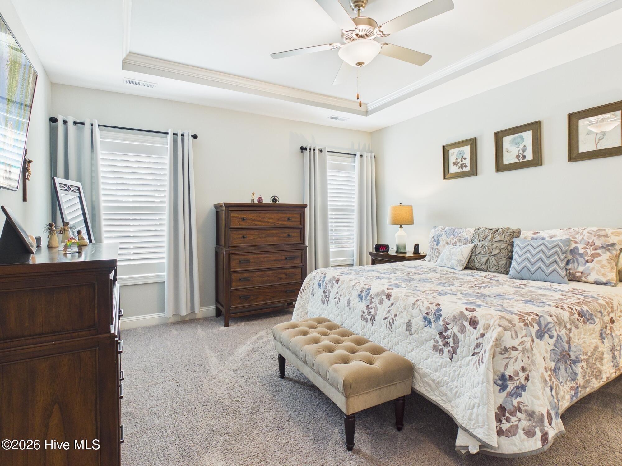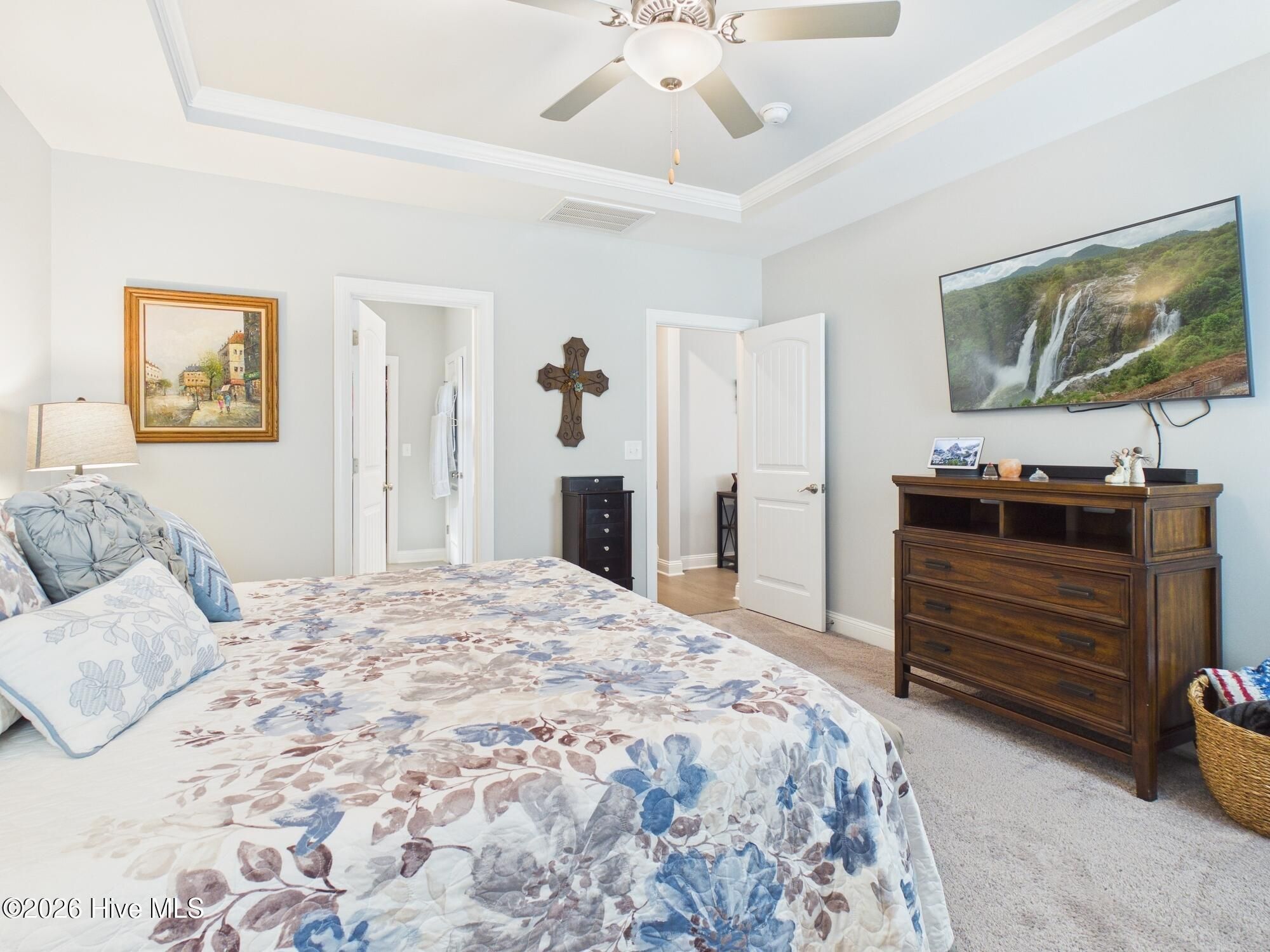 - Master Downstairs, Walk-In Closet(s), Tray Ceiling(s), High Ceilings, Entrance Foyer, Kitchen Island, Ceiling Fan(s), Pantry, Walk-In Shower, Wired for Data