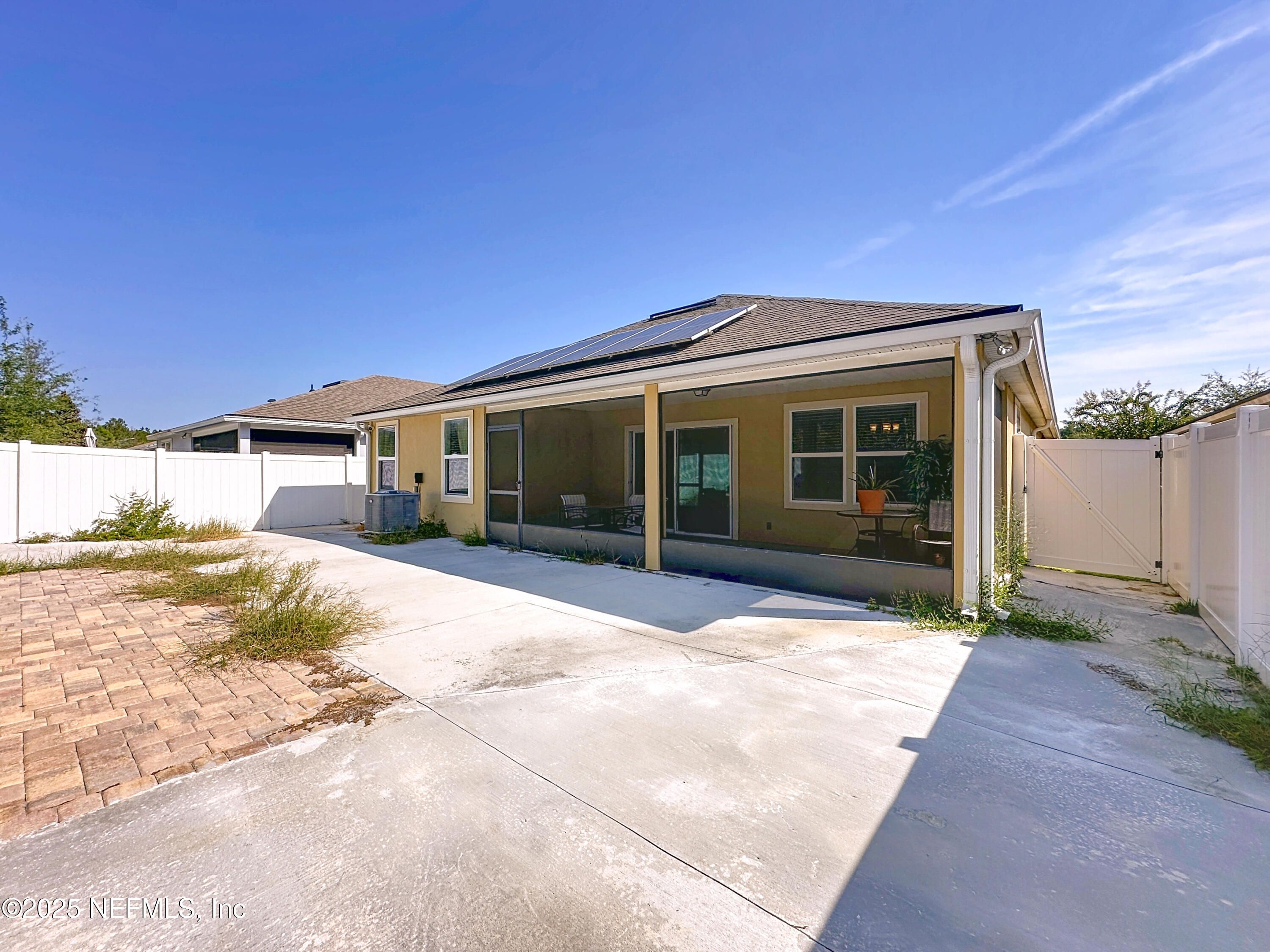 BEAUTIFUL 3-Bedroom Home in 55+ Gated Community with PAID SOLAR! Built in 2019 this well-maintained 3-bedroom, 2-bath home offers modern comfort and energy efficiency in a peaceful, gated 55+ community. Step inside to an open-concept layout featuring a bright kitchen with quartz countertops, stainless steel appliances, and a spacious living area perfect for entertaining. The primary suite includes a large walk-in closet, an en-suite bath, with dual sinks and a walk in shower. Two additional bedrooms provides space for guests, a home office or hobbies. Enjoy the outdoors on your private screened in patio. The fully paid solar system reduces electricity costs by up to 60%, offering long-term savings and eco-friendly living. Community amenities include pool, clubhouse, fitness center, pickleball courts, and a dog park-ideal for an active social lifestyle.