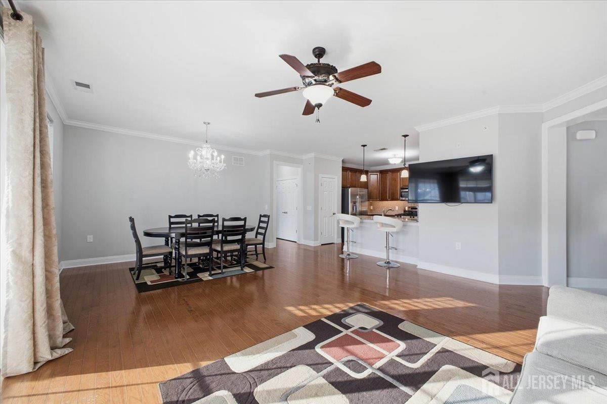 Experience Sophisticated, Low-Maintenance Living in this Beautifully Appointed Andover Model in The Enclave at Canal Walk, One of Central New Jersey's Premier 55+ Active Adult Communities. This Spacious 2 BR, 2 Bath Corner Unit Offers 1,605 Square Feet of Thoughtfully Designed Living Space, with 130 Square Foot Covered Balcony w/ 2 Private Storage Closets, Ideal for Relaxing or Entertaining. New HVAC (2023). New Hot Water Heater (2022). The Southwest Exposure Allows for Abundant Natural Light, While Elevator Access Provides Everyday Ease. The Open-Concept Living Rm, Dining Rm, and Kitchen feature Hardwood Floors and a Breakfast Bar, Creating an Elegant Yet Comfortable Setting for Daily Living and Gatherings. The Primary Suite Serves as a Private Retreat with a W/I Closet and Spa-Style Bath Offering Dual Sinks, Soaking Tub, and Stall Shower. A Laundry Rm off the Foyer Provides Additional Storage. Tile Floors Accent the Foyer, Laundry and Baths, while Wall-Wall Carpeting Adds Warmth to the Bedrooms. All Appliances & Furnishings Included, Allowing for a Seamless Move-In Experience! Two Premium Parking Spaces are Included in the Secure, Climate-Controlled Underground Garage with Elevator Access. Canal Walk offers a Resort-Style Lifestyle with 2 Clubhouses, Indoor & Outdoor Pools, Fitness Center, Sauna and Steam Rms, Walking and Biking Trails, Golf Practice Facilities and an Active Calendar of Clubs and Social Events, all set within Scenic Somerset County with Convenient Access to Shopping, Dining, and Major Travel Routes. Showings begin 12/20.