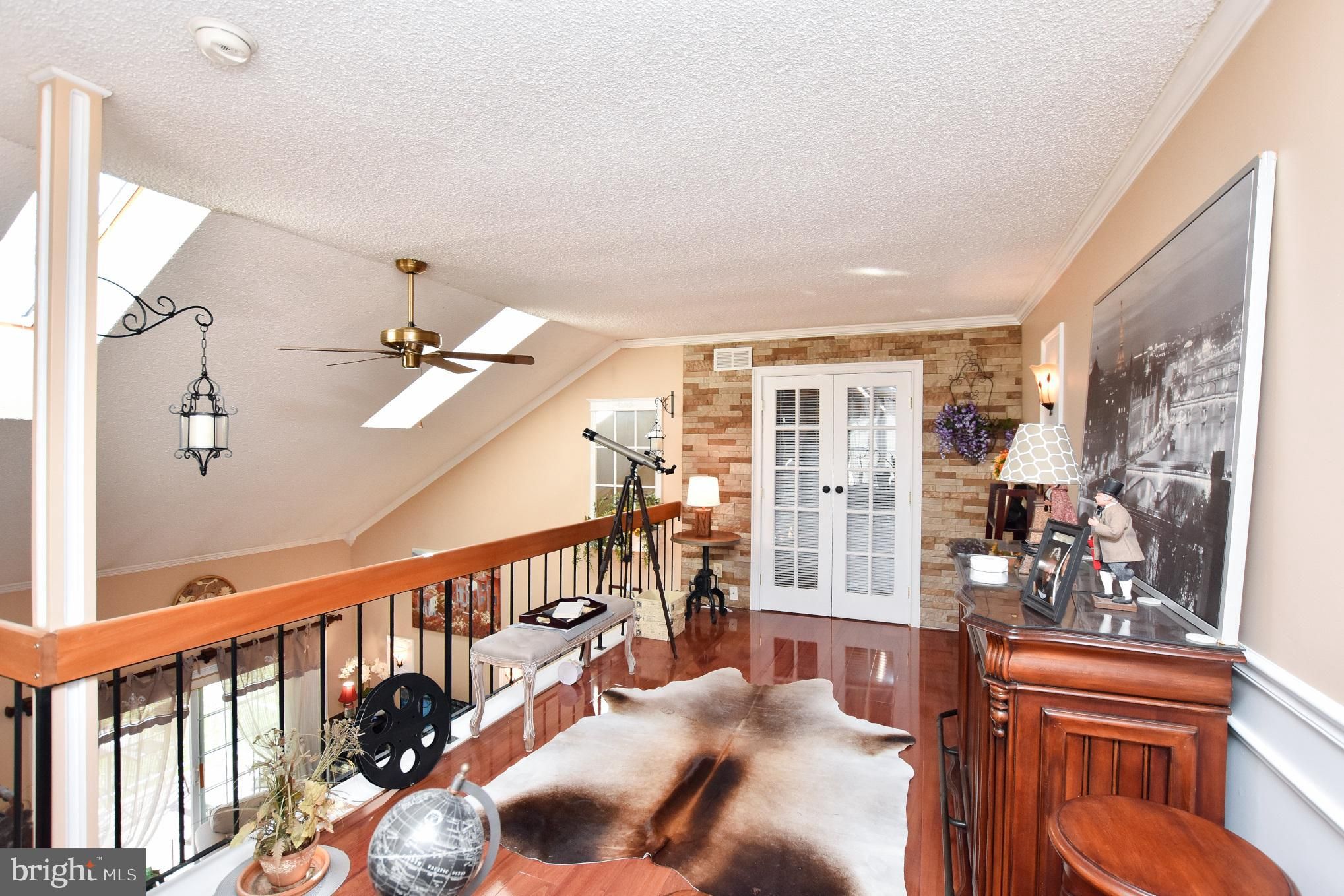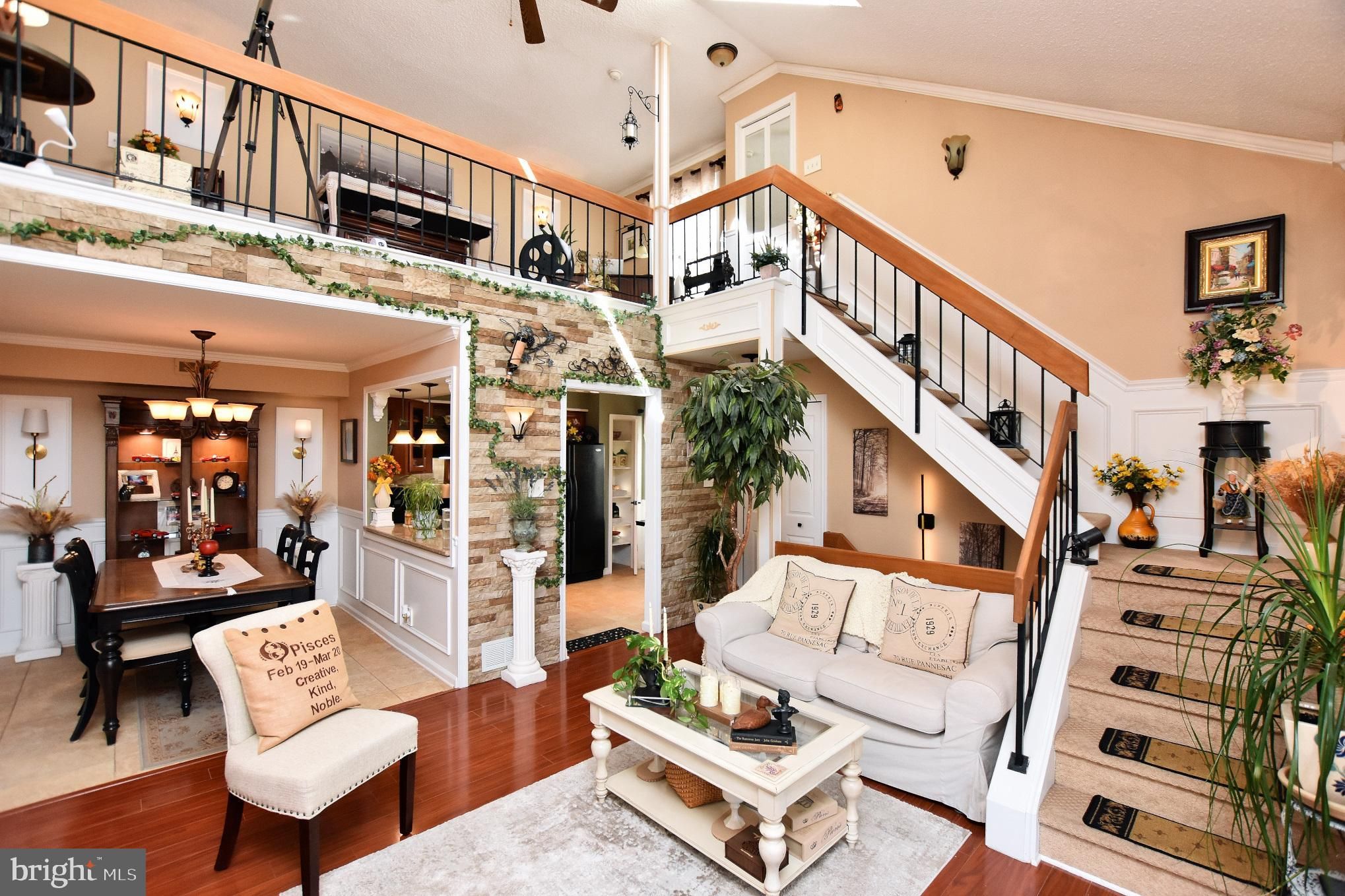 Rarely available and truly one-of-a-kind, this French Provincial–inspired two-story end-unit with a loft is a standout gem in the highly sought-after Renaissance Club, a premier 55+ community. Step inside to a meticulously updated interior featuring a gourmet eat-in kitchen outfitted with a brand-new range, granite countertops, custom tile backsplash, cherry cabinetry with soft-close drawers, and a functional pantry. The dramatic two-story living room serves as the heart of the home, filled with abundant natural light from dual skylights and enhanced by a ceiling fan and elegant custom trim work, including crown molding, wainscoting, and chair rails. The spacious primary suite offers a ceiling fan, an oversized walk-in closet, and a beautifully appointed en-suite bath with a granite-topped vanity. A well-sized second bedroom also includes its own ceiling fan for added comfort. Upstairs, the expansive loft features brand-new flooring and a custom French door leading to an impressive 12x22 storage area—perfect for organization or hobby space. Additional upgrades include a brand-new deck with scenic views and extra storage, a new washer and dryer, and charming custom decorative windows that create a delightful “French Bistro” ambiance throughout the freshly painted home. Residents of this vibrant community enjoy exceptional amenities, including a clubhouse, large inground pool, tennis and pickleball courts, bocce, and a dog park—offering the perfect blend of luxury, comfort, and active living. Don't delay - make your appointment today!
