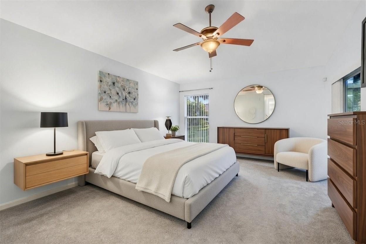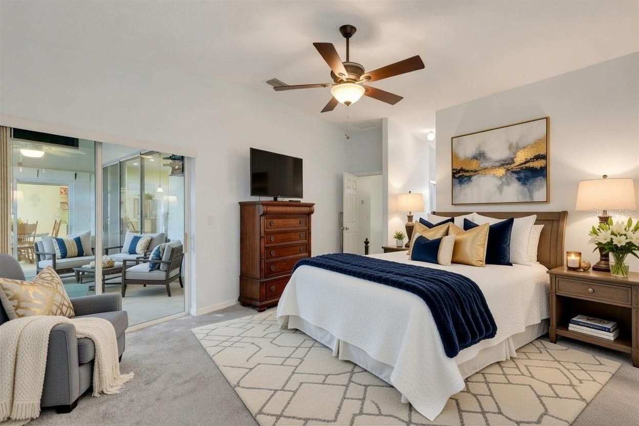 One or more photo(s) has been virtually staged. FREE RV, BOAT or TRAILER Parking in a desired gated neighborhood of LEGACY! Discover this charming three-bedroom, two-bathroom home offering almost 2100 square feet of comfortable living space. This Langley II model provides an ideal layout for those seeking extra room to spread out in one of the most desirable neighborhoods in Central Florida. Front screened in covered patio as you enter the home. This home has an X-LARGE LOT with no side neighbor! Mailbox and fire hydrant outside the home for convenience and discount on insurance. As you enter this beauty the ceiling is high with several built-in shelving. The spacious primary bedroom serves as a peaceful retreat, while two additional bedrooms that have flexibility for various uses including guests or a home office. The primary bathroom suite has garden tub with 2 sinks and separate commode. Two full bathrooms ensure convenience for daily routines and entertaining. The open floor plan creates a natural flow throughout the main living areas, perfect for both relaxing and hosting gatherings. The kitchen has a double oven with convection and gas stove with pull out in the 42-inch cabinets. The eat in kitchen has breakfast bar and beautiful back splash and built in spice rack cabinet. The 2 car garage has a screen, work bench and storage for your convenience. This 55+ gated community has lots of amenities which includes landscaping, cable, and WIFI with low monthly fees. This active residence club includes a beautiful resort style pool, hot tub, fitness center, Bocce ball, pickleball, billiards, shuffleboard, library, craft room, card room, NEWLY RENOVATED SOCIAL HALL, tennis, baseball field, walking trails with mature trees and lots of areas for bird watching are just to name a few. Legacy is a mature stable community with its own conservation areas in Central Florida with lots of lakes and rivers nearby to enjoy. Legacy’s builders have won many awards. Lots of shopping and close to the turnpike. A short drive to the Disney attractions, turnpike and airport. Outside the neighborhood is Rodello’s Italian restaurant and a dog park nearby. In the heart of Leesburg, this property puts you close to everything you need while Publix Super Market at Lake Harris provides convenient grocery shopping nearby. ALDI’s coming soon to the area. The location offers easy access to local amenities and attractions that make Leesburg such a desirable place to call home. This property represents an excellent opportunity for buyers looking for a move-in ready home in a great SAFE and SECURE neighborhood. The combination of generous square footage, practical bedroom configuration, and convenient location creates an appealing package for today's homebuyers. The thoughtful layout maximizes every square foot, ensuring each room serves its purpose well. Don't miss the chance to make this lovely Leesburg home your own.