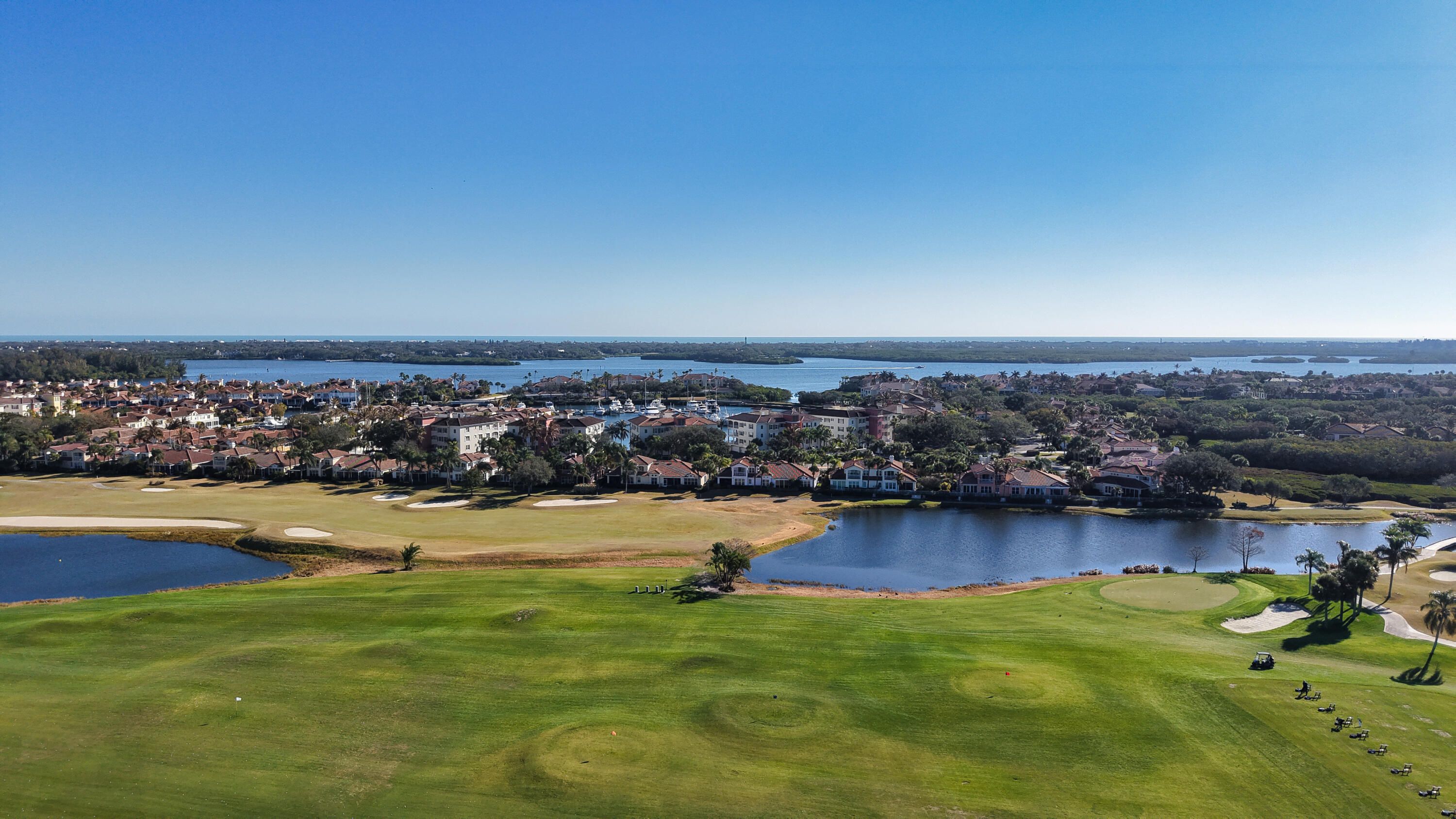 Welcome home to this beautiful golf course retreat. Perfectly positioned to capture stunning sunset views and serene fairway scenery, this home offers two spacious ensuite bedrooms, 2.5 baths, plus a versatile den. The golf course views from your screened porch provide a peaceful backdrop from morning to evening. Easy to lock and go, this home is perfect as a full-time residence or a low-maintenance getaway. Enjoy the Harbor Links community pool, a marina just across the street where you can watch dolphins play, and a very active neighborhood plus enjoy the beautifully renovated beach club.