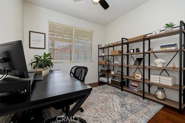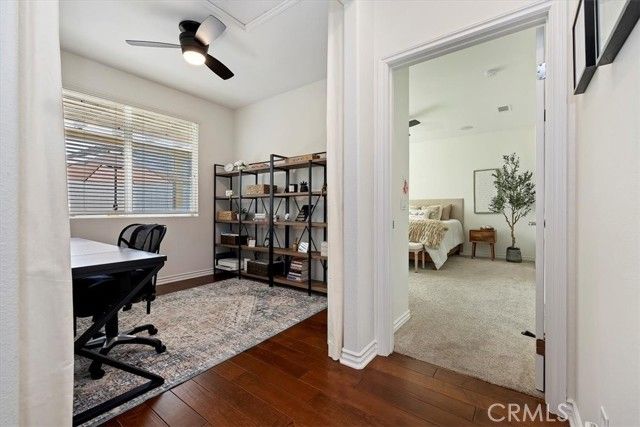 Immaculate Former Model Home | $50K+ in Upgrades | Flexible 3-BR Option | Low-Maintenance Luxury Living Welcome to this beautifully maintained La Jolla floor plan in West Hemet’s highly sought-after 55+ Solera Diamond Valley by Del Webb community, with over $50,000 in thoughtful upgrades throughout, you won’t want to wait on this one! This former model home blends resort-style amenities with everyday ease, and is truly turn-key. Step inside to discover rich hardwood flooring, tall ceilings, and a bright, open layout that seamlessly connects the kitchen, dining, and living areas. The chef’s kitchen features walnut cabinetry, Corian countertops, upgraded appliances, and a breakfast bar - perfect for quiet morning coffee or hosting friends in the evening. The split-bedroom design offers privacy and natural light throughout. The primary suite includes dual sinks, a spacious walk-in closet, a linen closet, and newer carpet. The bright den/office is spacious enough for EASY 3RD BEDROOM CONVERSION, if desired. Outside, enjoy your low-maintenance backyard retreat complete with an Alumawood patio cover, remote-controlled market lights, a built-in gas BBQ island, and beautiful artificial turf - ideal for relaxing evenings or effortless entertaining. Additional features include: Upgraded ceiling fans, upgraded, newer carpet in both bedrooms, entire interior freshly painted, heavy-duty front security screen door, built-in ceiling surround-sound system, Ring Doorbell (wired), Wyze-enabled smart garage door opener, two TV mounts, along with quality blinds, curtains, and rods. Residents of Solera Diamond Valley enjoy access to the 23,000 sq. ft. Mountain View Lodge, featuring indoor and outdoor pools, spas, a state-of-the-art fitness center, aerobics/Pilates studio, tennis, Pickleball, and bocce courts, an indoor walking track, billiards, ballroom, library, craft rooms, coffee bar, computer lab, and a vibrant social calendar. This immaculate former model home combines comfort, connection, and low-maintenance luxury in one of Southern California’s premier active-adult communities. Come view this one-of-a-kind home, and you’ll immediately fall in love with it!