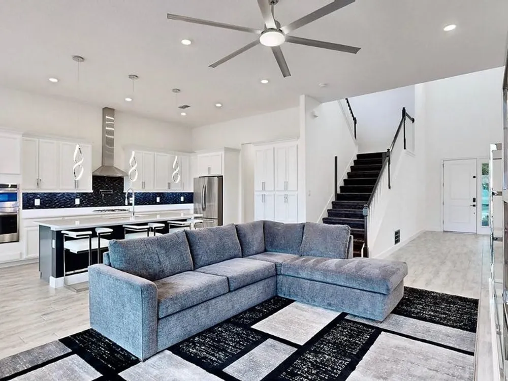 - Ceiling Fan(s), Crown Molding, Eat-in Kitchen, Kitchen/Family Room Combo, Open Floorplan, Smart Home, Solid Surface Counters, Solid-Wood Cabinets, Split Bedrooms, Stone Counters, Thermostat, Tray Ceiling(s), Vaulted Ceiling(s), Walk-In Closet(s), Window Treatments