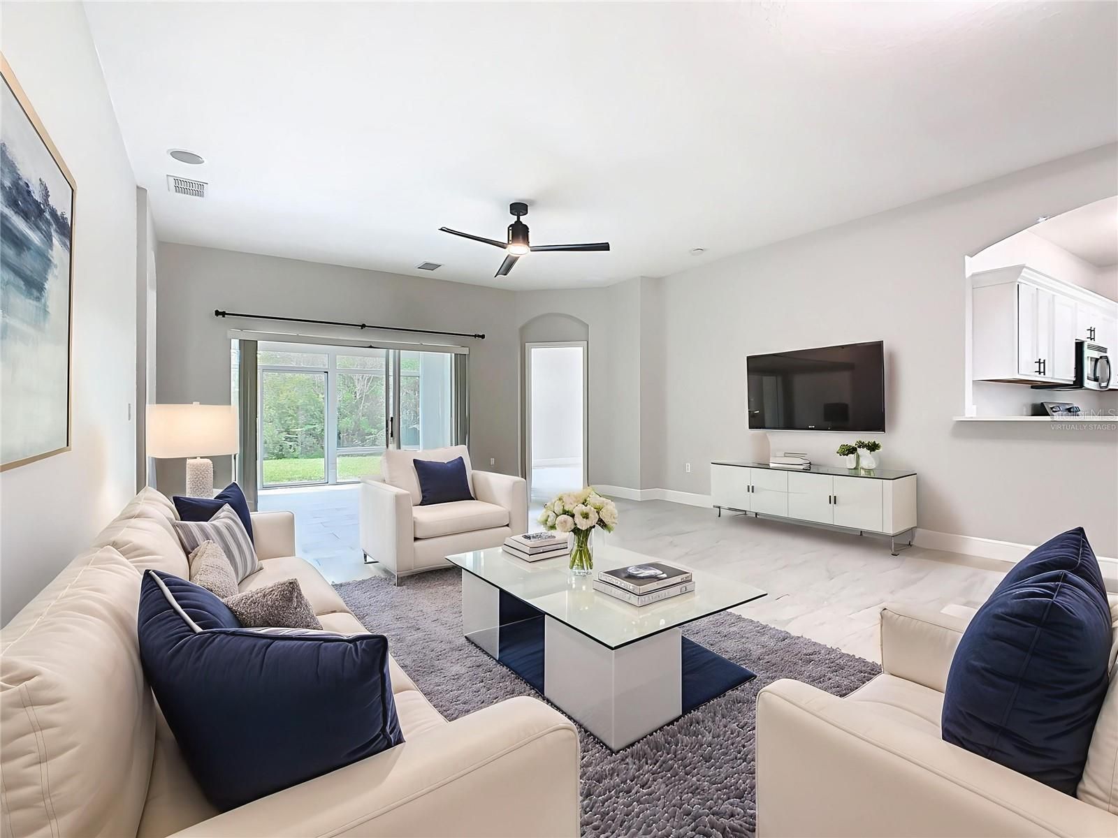 One or more photo(s) has been virtually staged. One or more pictures have been virtually staged. ** See the Full Length VIDEO on Tour Link 1 ** Welcome to this AMAZING Melody Model home located in the famous 55+ community called Solivita. Notice the well groomed LANDSCAPE with solar lights. This WELL MAINTAINED home includes three bedrooms and two bathrooms. Enter and notice the ample and radiant Open Floor plan. So many UPGRADES to include beautiful TILE FLOORS throughout ( No carpet), updated fixtures and mirrors in the Primary Bathroom, updated CEILING FANS throughout, and an updated SHOWER in the PRIMARY bathroom. The remodeled KITCHEN features QUARTZ counters, a BAR, plenty of cabinet space, stainless steel appliances, and a BREAKFAST NOOK. The dining area and GREAT ROOM are spacious enough to entertain your guests. The PRIMARY Bedroom attribute includes two walk-in CLOSETS, entry to the lanai, updated SHOWER and BATHROOM, and a great view. The SECOND AND THIRD BEDROOMS have plenty of room for your guests. The second bedroom has an entry into the lanai. Walk into the ENCLOSED LANAI with a built-in wine refrigerator and relax and enjoy the incredible CONSERVATION VIEW. Other highlights of this home include freshly painted EXTERIOR February 2025, 5 1/4" baseboards, HVAC is five years old, ROOF was replaced in November of 2023, and an epoxy coated garage floor. *** Solivita is approximately 50 minutes from Disney World and the Orlando International Airport. Enjoy your active years in this piece of paradise we call Solivita. Solivita's amenities include: * - a manicured SOFTBALL diamond & field - 36 holes of CHAMPIONSHIP GOLF - 2 STATE of the Art AMENITY centers with updated exercise equipment, yoga studio & meeting rooms - 3 restaurants - 14 HEATED POOLS - 17 PICKLEBALL courts - 9 TENNIS courts - 4 BOCCE BALL courts - 4 SHUFFLEBOARD courts - 3 HORSESHOE pits - a BILLIARDS room - miles of bike paths - 2 DOG PARKS (Small &Large Dogs) - Corn Hole - Tot Lot PLAYGROUND - COMMUNITY GARDEN - over 300 resident clubs. The HOA: * - maintains the LANDSCAPING and IRRIGATION systems in the common areas as well as at individual homesites - Maintains the roads throughout the community - PROVIDES SECURITY with gate guards and mobile patrols including the Polk County Sheriff - allows AUTOMATED GATE ACCESS for residents via license plate readers -provides residents with Fibre Optic Internet & TV service. **** Poinciana Lakes Plaza is a MAJOR NEW SHOPPING CENTER opening directly across from the Solivita Main Gate in Summer of 2024. It features Sprouts Grocery, TJ MAXX, Ross, Burlington, Rack Room Shoes, 5 Below, Utla, Outback, First Watch, 5 Guys, Urgent Care, Dentist, TD Bank, Petco, Hair cuttery plus MUCH MORE TO COME.