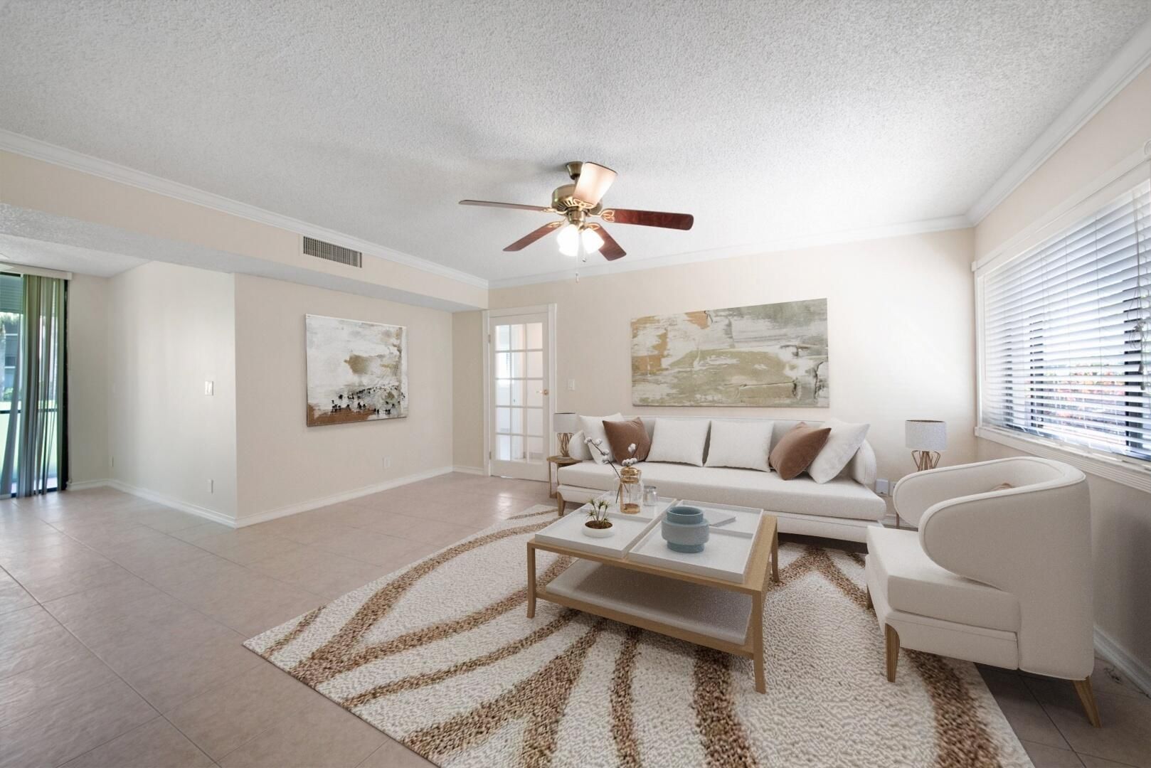 Step into this beautifully appointed two-bedroom, two-bathroom first-floor corner unit. Designed to combine comfort and functionality. Inside, you'll find neutral tile flooring and crown molding flowing seamlessly throughout. The primary suite is a true retreat, featuring a spacious walk-in closet and private bath. Enjoy peaceful mornings on the screened-in patio, overlooking serene garden views.This gated residence is located in the highly desirable Las Verdes community. Residents have access to three swimming pools, a modern clubhouse, fitness center, tennis and pickleball courts, walking and bike trails. Conveniently situated minutes away from dining, shopping and entertainment along Atlantic Avenue.