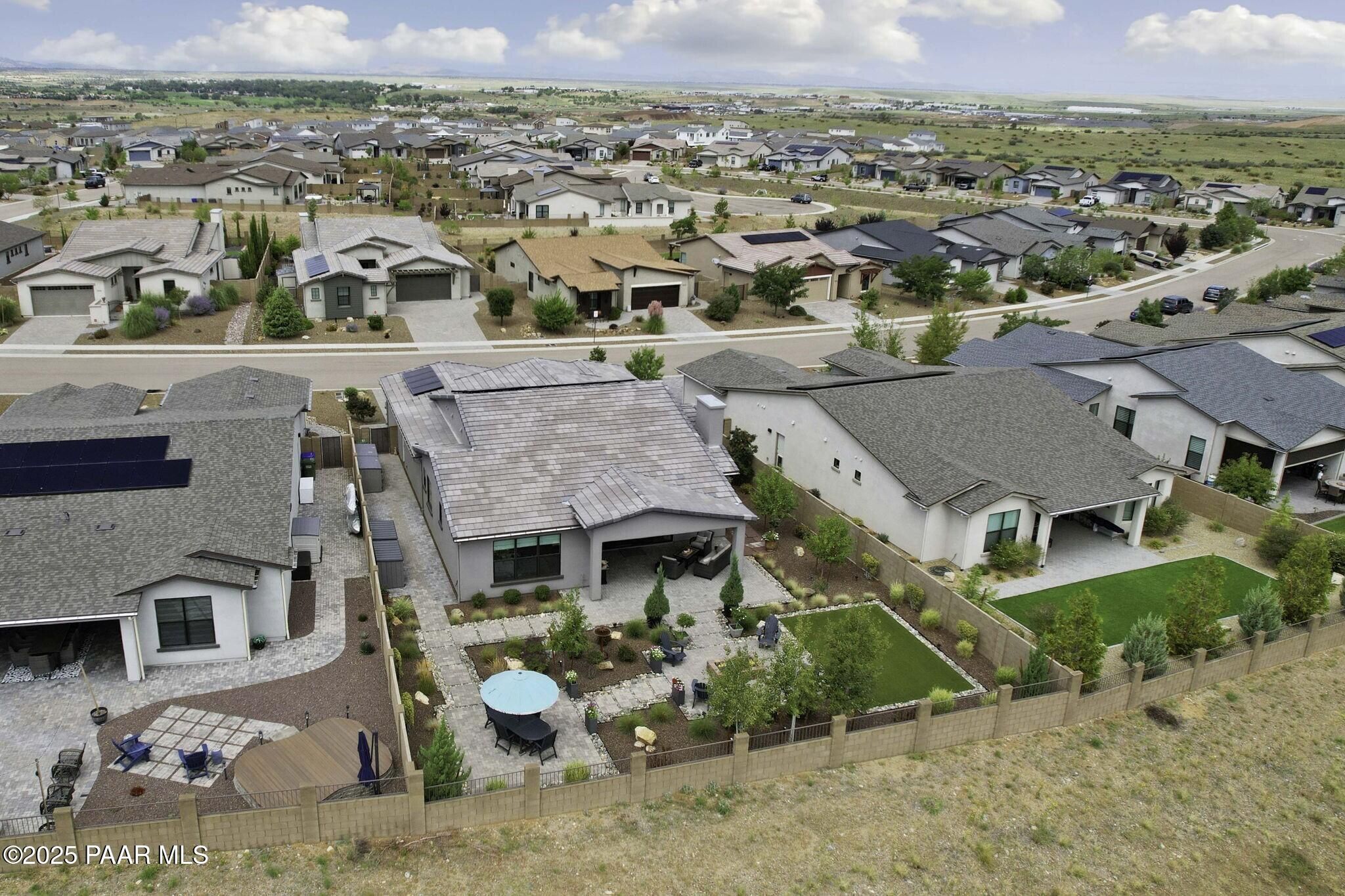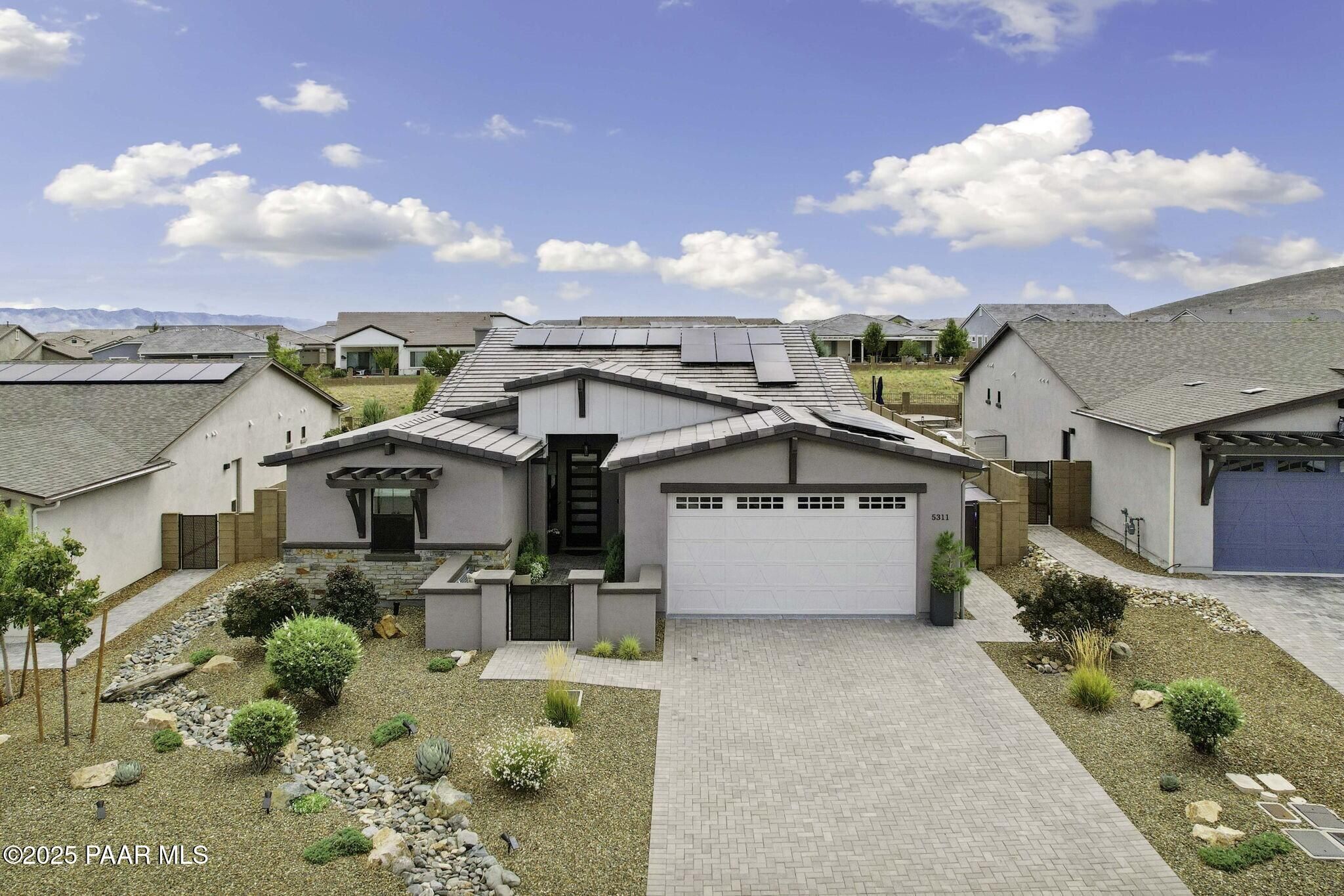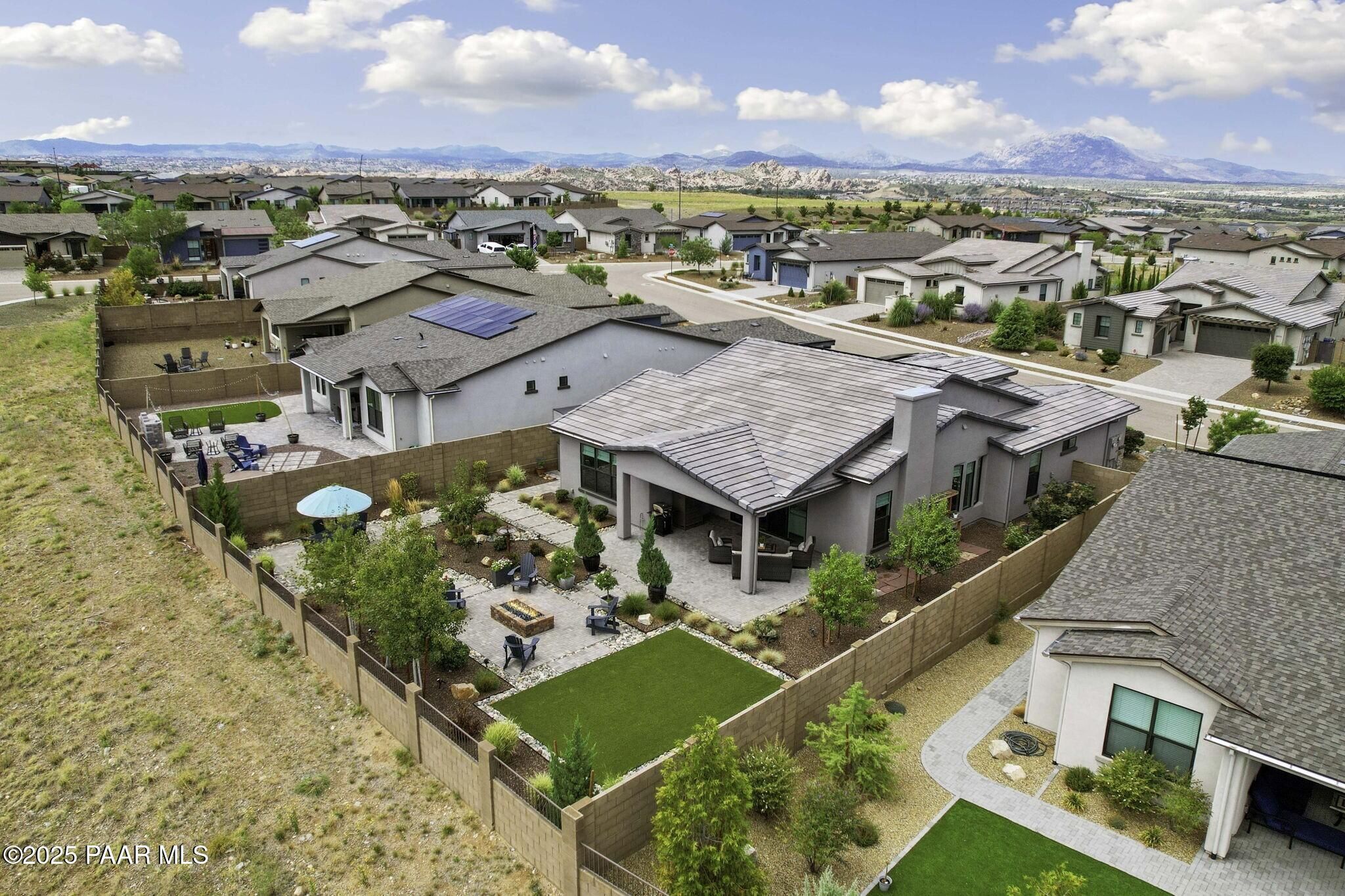 This immaculate, single-level home offers a luxurious and effortless lifestyle with no detail overlooked. Step inside to discover a bright, open floor plan that has been thoughtfully designed throughout with high-end finishes and impeccable craftsmanship. The gourmet kitchen is an entertainer's dream, featuring stainless appliances and a seamless flow into the main living areas. The master bedroom offers a private retreat, separated from the other bedrooms with a luxurious en-suite bathroom featuring a soaking tub, a large walk-in shower and double vanities creating a true spa-like atmosphere along with a large walk-in closet with built-in organization. Two additional bedrooms and a full bathroom are located on the opposite side of the home. A separate laundry room provides a dedicated and organized space. The light-filled interior creates an elegant atmosphere and easily transitions to the stunning outdoor spaces.Outside, your resort-like grounds await. The professionally landscaped yard is a picturesque setting for gatherings, boasting an extensive outdoor living area and a cozy fire pit for cool evenings under the stars. Take in the views while enjoying the fresh air from your private covered patio and large fenced in backyard. The home is also equipped with owned solar panels, offering significant long-term energy savings and a reduced carbon footprint for sustainable living. In addition to the efficient living space and outdoor oasis; a spacious 3-car tandem garage with epoxy floors provides ample room for vehicles, storage or a little workshop. This is more than a home; it's a turnkey retreat which is available to be purchased fully furnished as well for your immediate enjoyment. Located for convenience and designed for a sophisticated lifestyle, this home offers everything you've been looking for in the highly sought-after Granite Dells Estates community of Prescott. As a resident, you'll have access to the community's private clubhouse which includes a pool, fitness center, tennis and pickleball courts in addition to miles of walking and biking trails that allow you to explore the rugged beauty of the Granite Dells rock formations right from your doorstep. Live the life you've always dreamed of in this exquisite, thoughtfully designed sanctuary where every day feels like a vacation.