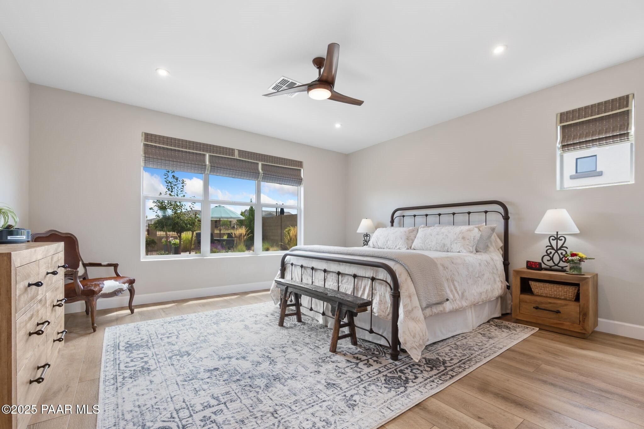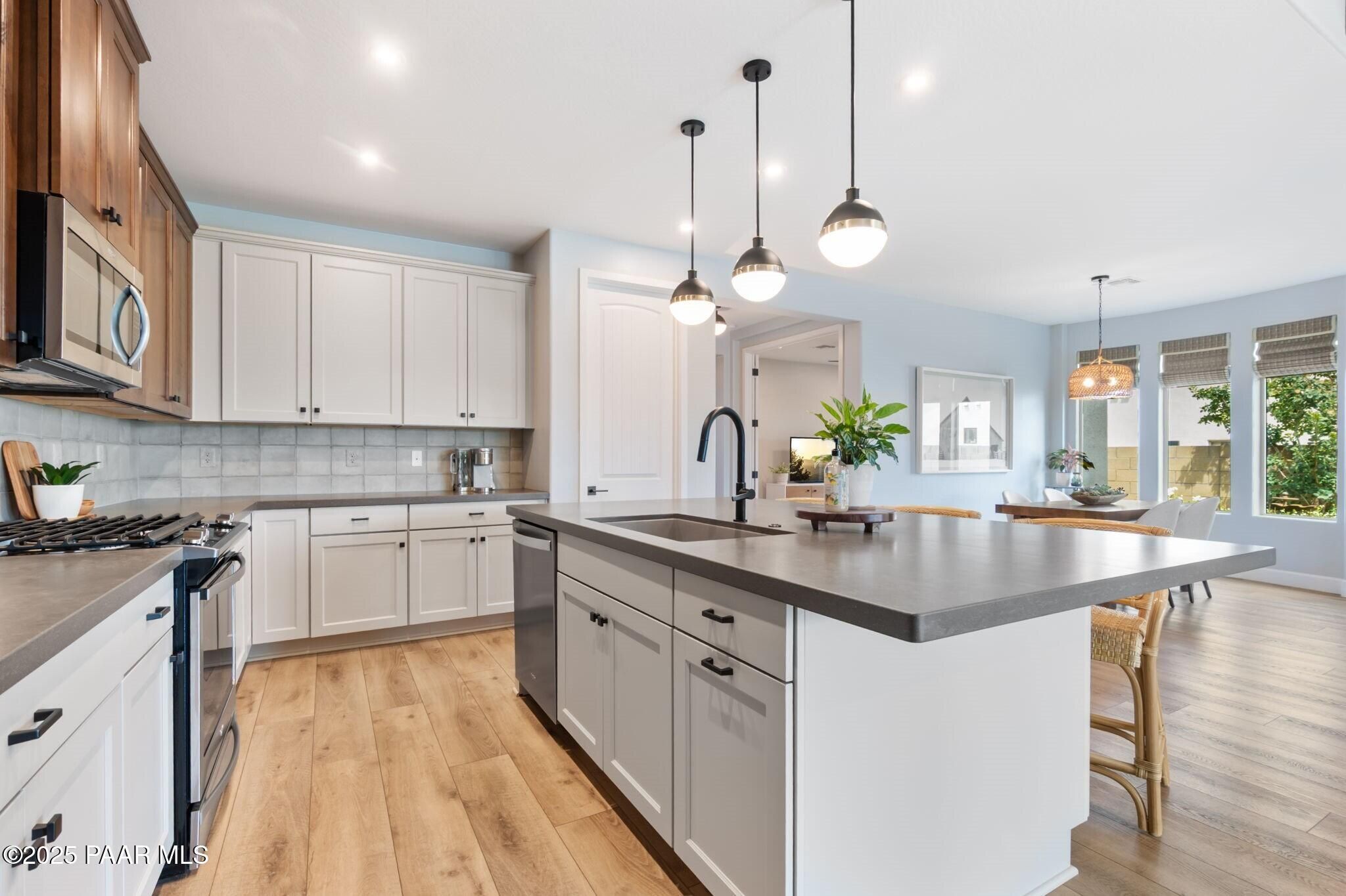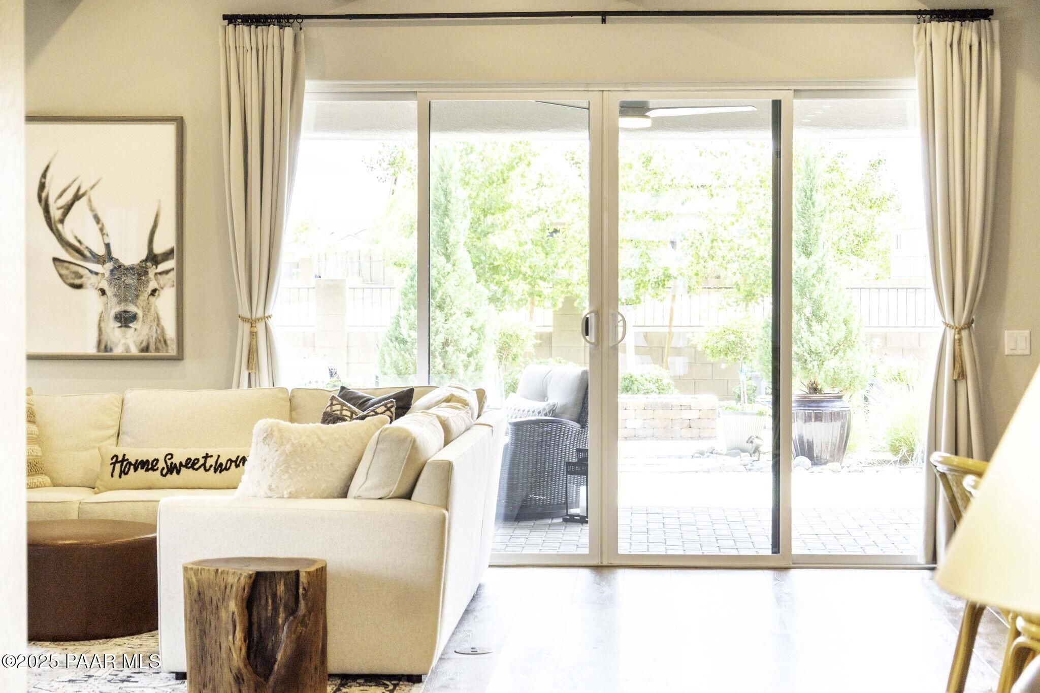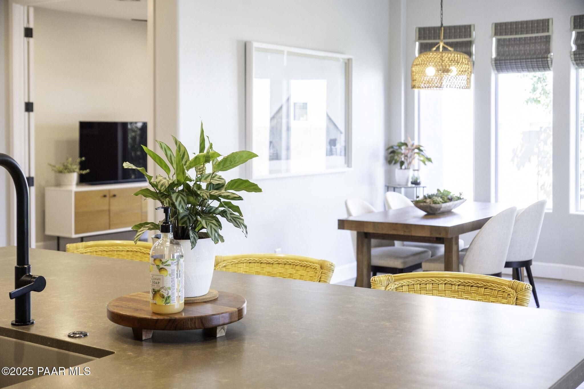 This immaculate, single-level home offers a luxurious and effortless lifestyle with no detail overlooked. Step inside to discover a bright, open floor plan that has been thoughtfully designed throughout with high-end finishes and impeccable craftsmanship. The gourmet kitchen is an entertainer's dream, featuring stainless appliances and a seamless flow into the main living areas. The master bedroom offers a private retreat, separated from the other bedrooms with a luxurious en-suite bathroom featuring a soaking tub, a large walk-in shower and double vanities creating a true spa-like atmosphere along with a large walk-in closet with built-in organization. Two additional bedrooms and a full bathroom are located on the opposite side of the home. A separate laundry room provides a dedicated and organized space. The light-filled interior creates an elegant atmosphere and easily transitions to the stunning outdoor spaces.Outside, your resort-like grounds await. The professionally landscaped yard is a picturesque setting for gatherings, boasting an extensive outdoor living area and a cozy fire pit for cool evenings under the stars. Take in the views while enjoying the fresh air from your private covered patio and large fenced in backyard. The home is also equipped with owned solar panels, offering significant long-term energy savings and a reduced carbon footprint for sustainable living. In addition to the efficient living space and outdoor oasis; a spacious 3-car tandem garage with epoxy floors provides ample room for vehicles, storage or a little workshop. This is more than a home; it's a turnkey retreat which is available to be purchased fully furnished as well for your immediate enjoyment. Located for convenience and designed for a sophisticated lifestyle, this home offers everything you've been looking for in the highly sought-after Granite Dells Estates community of Prescott. As a resident, you'll have access to the community's private clubhouse which includes a pool, fitness center, tennis and pickleball courts in addition to miles of walking and biking trails that allow you to explore the rugged beauty of the Granite Dells rock formations right from your doorstep. Live the life you've always dreamed of in this exquisite, thoughtfully designed sanctuary where every day feels like a vacation.