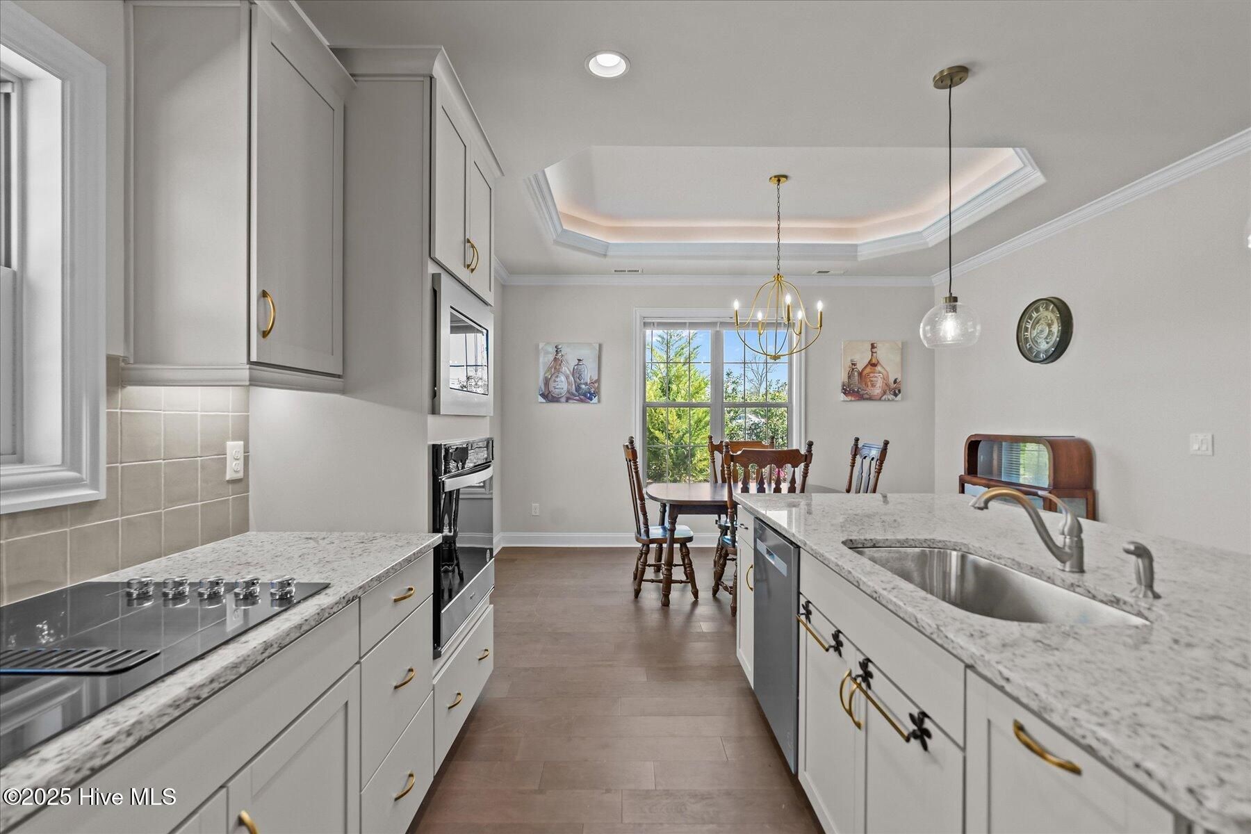- Master Downstairs, Walk-In Closet(s), Tray Ceiling(s), Bookcases, Kitchen Island, Ceiling Fan(s), Pantry, Walk-In Shower, Blinds, Kitchen/Dining Combo, Separate/Formal Dining Room