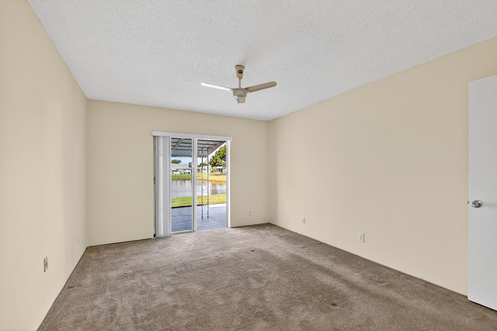 Lake & fountain views from both bedrooms & patio. Front patio & entrance south exposure. Central WPB, close to shops, grocery, restaurants, I-95 & turnpike. Roof completed 11/28/16. H,water heater 2024, partial accord. shutters, 2024, A/C 2023. Make new friends at the many activities. Cable/internet, golf, pickleball, card room, shows/movies, bingo all w/in this friendly community. 1/2 duplex, 3 exposures. Quick close possible.