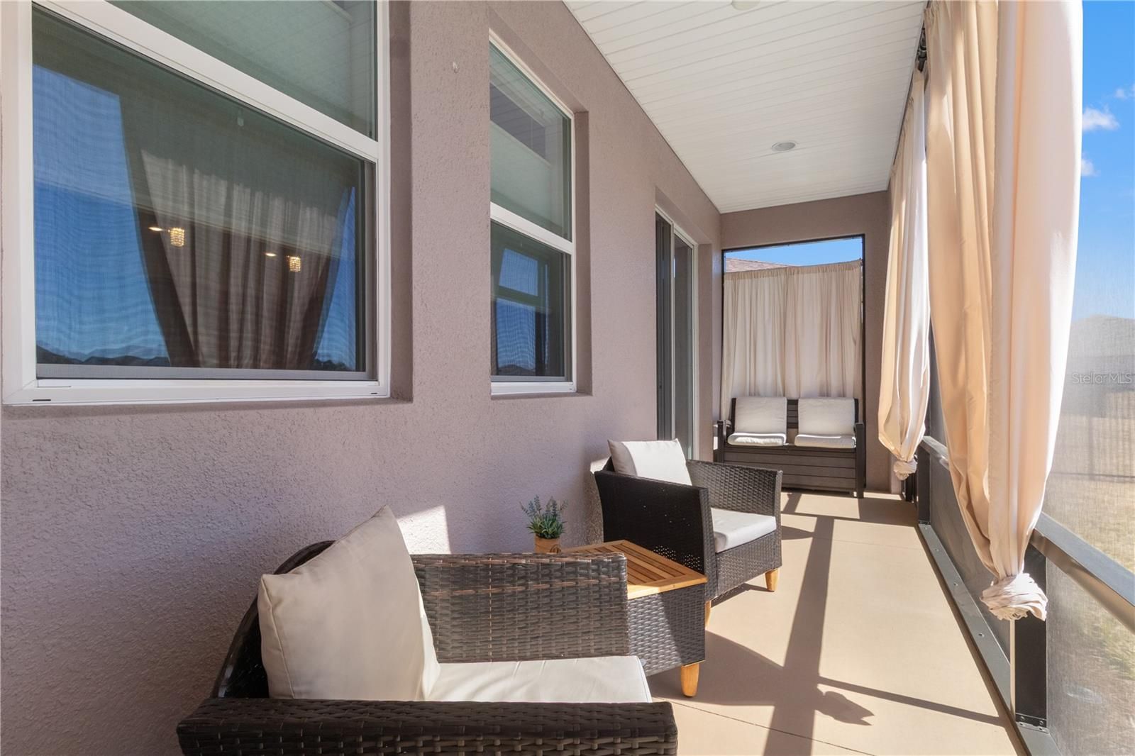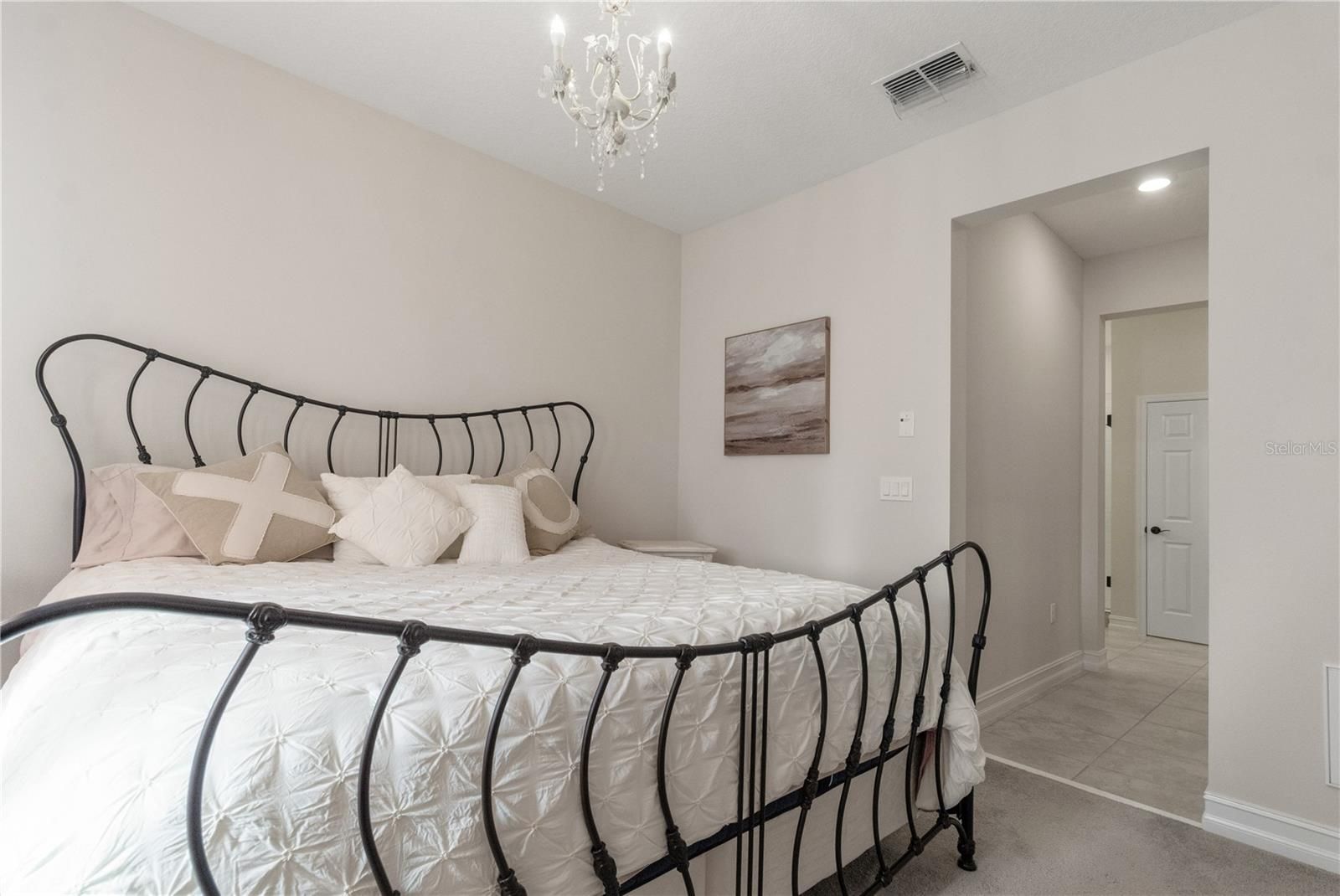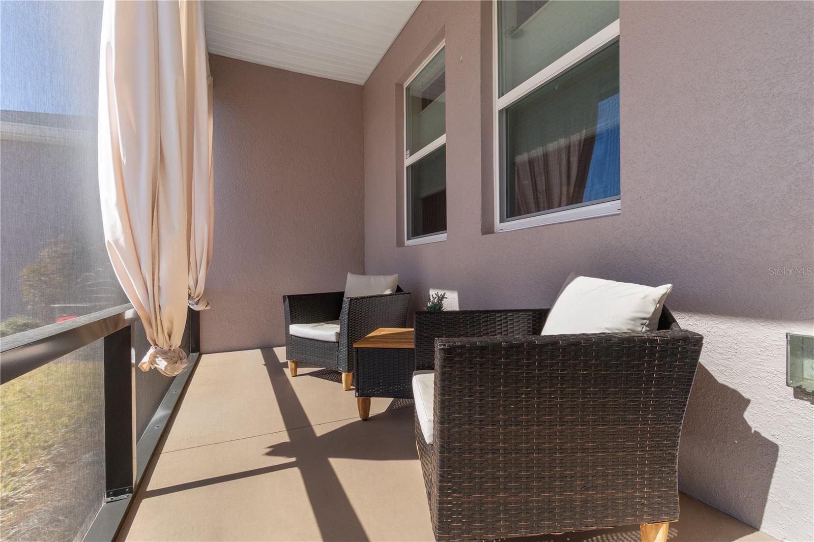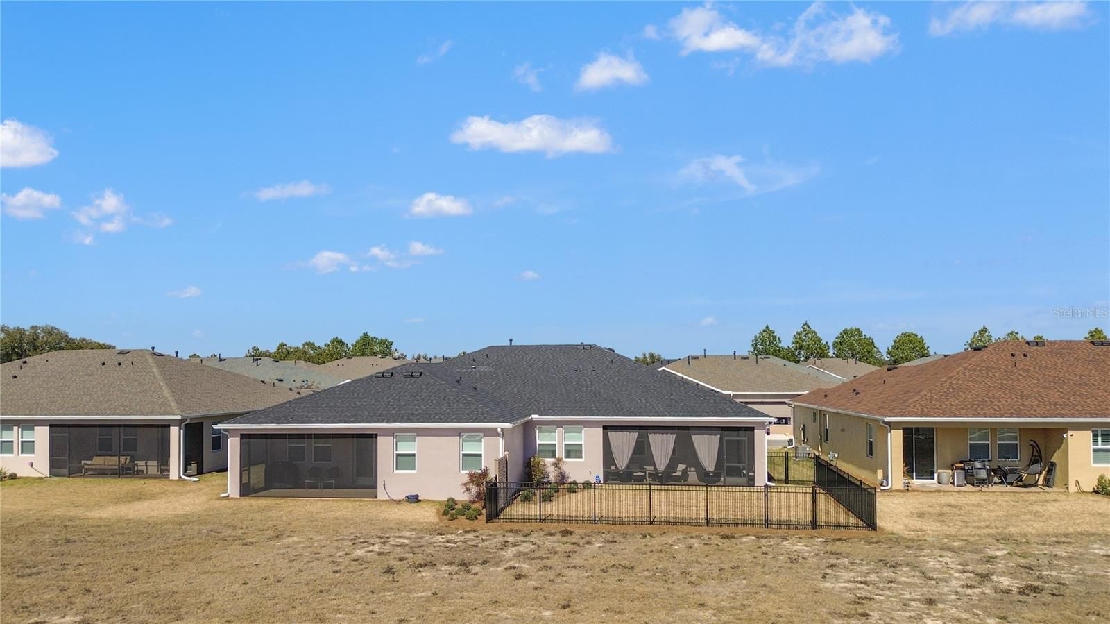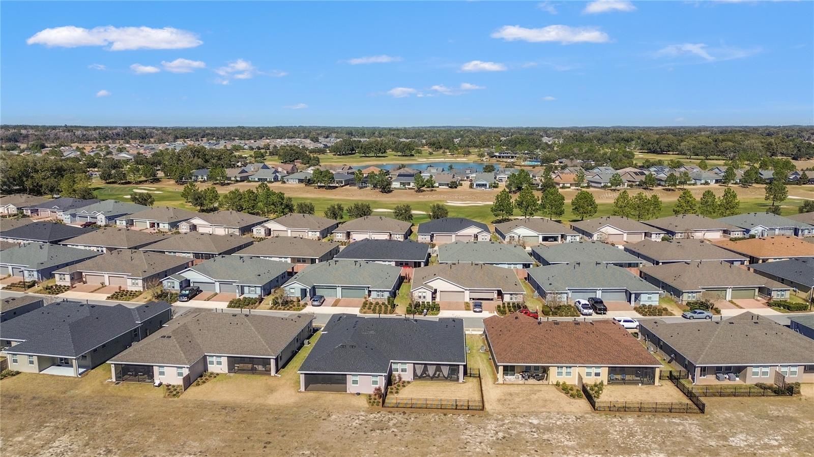 -PREMIUM LOT FOUND HERE!- Enjoy the Florida lifestyle in your like-new Shea Homes Aria model boasting $8,000 of additional upgrades in pristine 55+ Ocala Preserve. With NO CDD, the fenced, private backyard truly sets this property apart from the rest! Step inside your 2024 build, a 2 bedroom/ 2 full bathroom with 2-car garage, 1,320 square foot villa, onto 18x18 ceramic tile, natural light pouring in through the custom glass front door. The combination of high ceilings, a neutral color palette, and trim add an airy and sophisticated feel. To your immediate left is a guest bedroom which flows nicely into the first full bathroom with tub/ shower combo. The den/office space is a lovely spot to set up your daybed or workspace, and is home to the stackable, front loading Whirlpool gas washer and dryer set which conveys! The kitchen is the heart of your home boasting upgrades galore including a GAS stainless steel appliance package, and tile backsplash. The Zanzibar granite counters and maple wood cabinets with soft-close and pull-out drawers were thoughtfully paired together; and, the 6 ft.x3.5 ft. kitchen island is an entertainer’s delight! We love the open-concept, modern functionality- kitchen, dining and living room access all at once. The living room features custom window treatments, a prewired wall mount for your television, and plenty of space for a cozy sofa and coffee table. A split floor plan, the primary bedroom with ensuite bathroom is just off of the living area. With backyard views, the primary bedroom suite sits on soft, new carpet, and can easily fit a King-sized bed; and enjoy a walk-in closet with white custom cabinetry to house your wardrobe. The well-designed ensuite bath boasts a step-in shower with tile, glass entry, dual sinks and granite, and ample storage in the maple cabinetry. Back through the main living area, the sliding glass door leads to the screened lanai, pre-fan wiring, and gas hookup for the fire pit or BBQ already in place. The fully fenced backyard offers privacy and space for your pets and loved-ones; find even MORE GREEN SPACE, land that won't be built on, directly behind your lot. MORE UPGRADES TO SHARE include a sealed driveway, dedicated 20 amp 120 volt golf cart garage charging station, and plumbing for a water softening system. Ocala Preserve is a golf-cart & pet-friendly active community offering homes in both 55+ and non-age restricted areas; properties are leasable for investment opportunities too! ‘Florida living at its best,’ enjoy indoor and outdoor dining at the Salted Brick restaurant after 18 holes of golf on the Tom Lehman-designed course, which is open to the public. Your days should include fishing and socializing at the lovely lake, dipping in the hot tub or bright blue swimming pools, exercising in the resort-style lap pool, and staying in shape at the fitness center followed by relaxation in the full service spa. Racquetball, pickleball, and tennis courts, and nearly 20 miles of walking trails for your daily adventures found here too. The HOA covers lawn care and landscaping, exterior paint and power washing, roof, irrigation, and your recreational activities. Easy travel to I-75 and just minutes from Ocala’s beautiful Springs, medical facilities, dining, business opportunities, and the exciting World Equestrian Center (WEC). This is the lifestyle that you’ve worked so hard for- that you’ve dreamt about- so make it yours today!