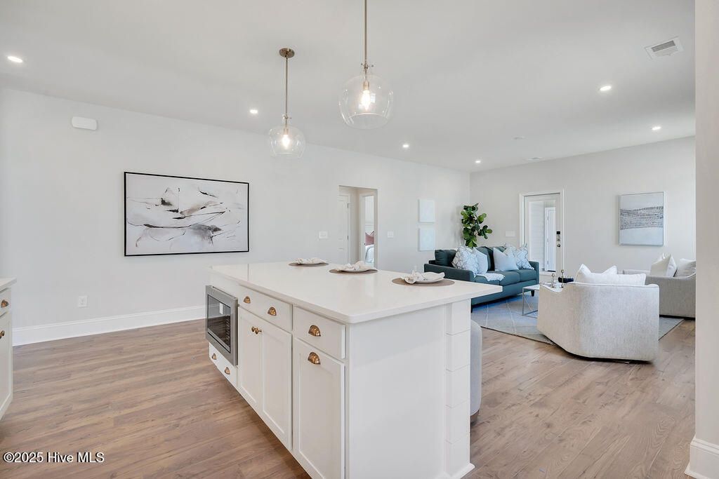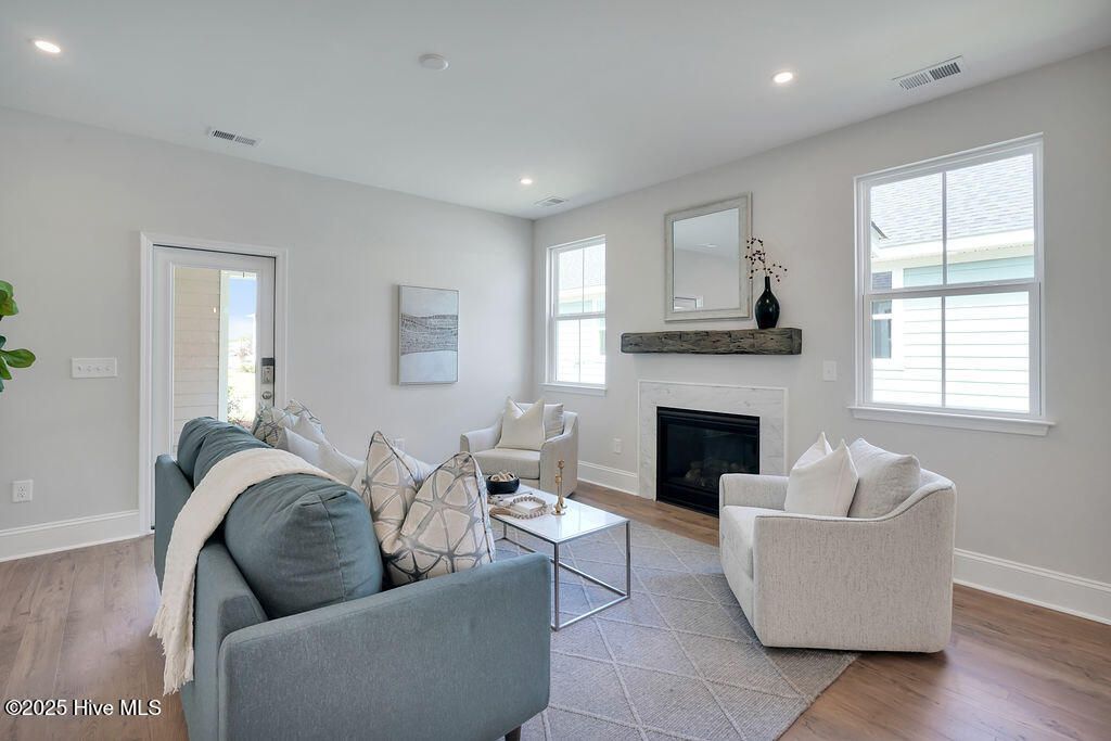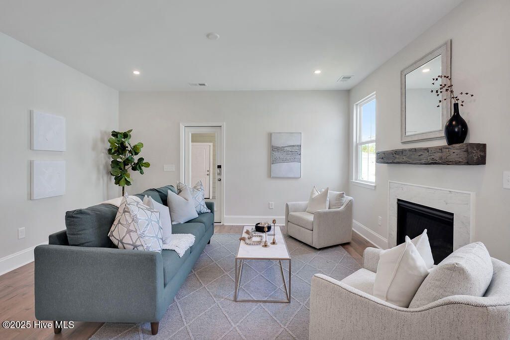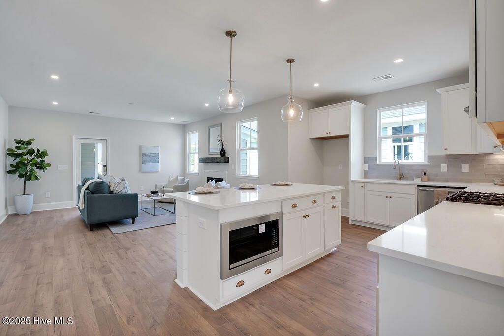 The Clay, built by New Leaf Builders, is a thoughtfully designed single-story home featuring an open floorplan ideal for everyday living and entertaining. The spacious kitchen showcases white cabinetry, a custom tile backsplash, and Miami Vena quartz countertops. The private primary suite offers a generous walk-in closet, while the spa-inspired primary bathroom features a zero-entry, fully tiled shower and a white dual vanity topped with Miami Vena quartz. Two additional guest bedrooms and a full bathroom complete the interior. Enjoy outdoor living on the covered back porch. Riverlights is a new home community surrounded by the coast and Cape Fear River, where nature is part your everyday routine. With easy access to the Cape Fear River, the intercoastal waterways, a family-friendly pool, a new dog park, gym and a 38-acre lake, you can kayak, paddleboard or stroll along the community dock any time of day. Enjoy the three-mile loop around the lake and scenic nature trails that weave throughout Riverlights. Conveniently located minutes to Historic downtown Wilmington, beaches, restaurants and shopping the location of Riverlights is unbeatable. [Riverlights] [The Clay]