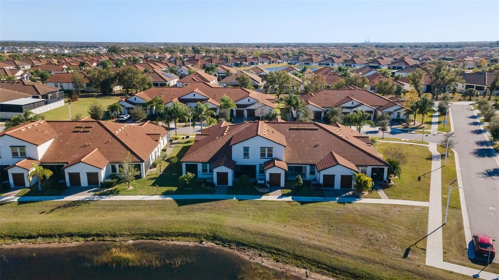 Welcome to Medley at Southshore Bay, a premier 55+, non-flood zone, pet-friendly community offering a carefree, golf cart–friendly lifestyle just steps from the Medley Clubhouse and the stunning 5-acre Crystal Lagoon with swimming, kayaking, paddleboarding, and a swim-up bar. Built in 2020 and impeccably maintained, this 2-bedroom, 2.5-bath home impresses from the start with the premium waterfront lot, beautiful curb appeal, a paver driveway and walkway, lush landscaping, and a private entry. Inside, you’ll find a bright, open floor plan highlighted by soaring ceilings and abundant natural light, anchored by a chef’s kitchen with quality wood cabinetry, granite countertops, and a large island perfect for entertaining. The combined living and dining areas flow seamlessly to a spacious screened porch overlooking a tranquil community pond (no rear neighbors!) —ideal for morning coffee or evening cocktails. The first-floor primary suite offers everyday convenience with a generous walk-in closet and a spa-like ensuite featuring dual vanities, a private water closet, and an expansive walk-in shower, while a guest powder room and laundry room with extra storage complete the main level. Upstairs, a spacious loft provides flexible living space alongside a second bedroom with a built-in closet and full bath. A two-car garage plus a separate golf cart garage offer ample storage, and hurricane shutters add peace of mind. The HOA covers cable, internet, lawn care, irrigation, exterior maintenance, and roof upkeep, while residents enjoy exclusive access to resort-style amenities including a pool with poolside bar, dog park, pickleball and bocce courts, ballroom, billiards, fitness center, café, and bar—making every day feel like a vacation. Double gated access provides security and peace of mind. Welcome home!