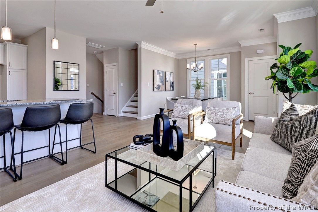 READY TO MOVE-IN SOON! Beautiful new construction end-townhome in the desirable Shirley Park neighborhood of New Town. The Camellia plan offers a thoughtfully designed layout featuring a main-level owner’s suite, two spacious bedrooms upstairs with a Jack-and-Jill bath, plus a ground-floor fourth bedroom or flex space with its own full bath— ideal for guests, a home office, or multi generational living. The home also includes an oversized attached two-car garage with finished walls and floors and additional driveway parking. Features include Color Plus James Hardie siding, quality LVP flooring, upgrade cabinets & quartz counters at kitchen, and tile flooring at baths with tile surround shower at main bath. Trim package for windows, oak stairs and crown molding included. Association includes lawn maintenance, pool & trash collection. Nearby to the New Town pool, take the sidewalks and trails to all of New Town's restaurants, shopping, and more!