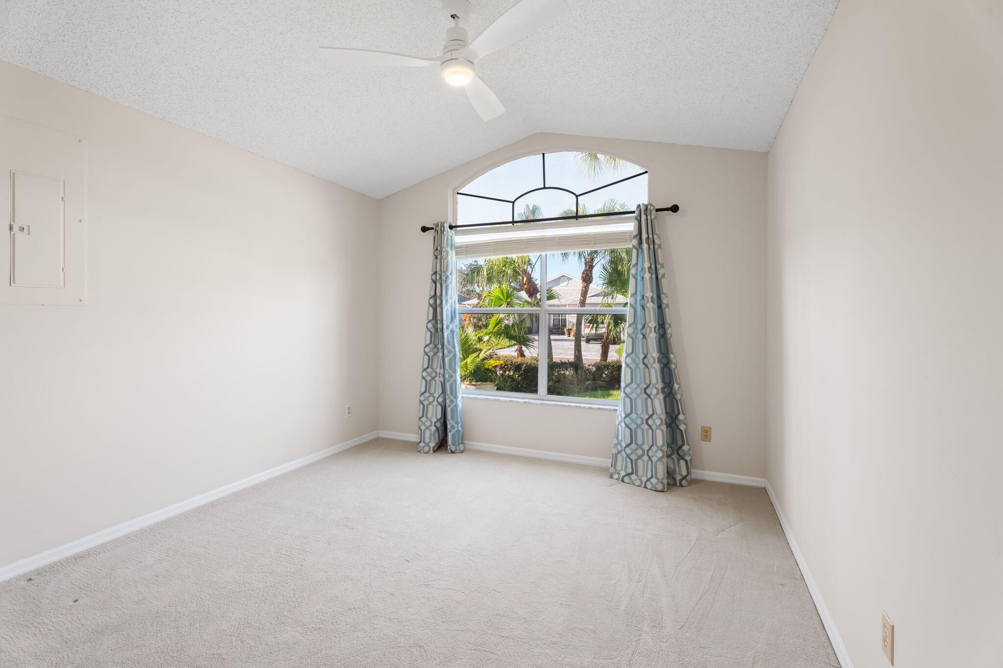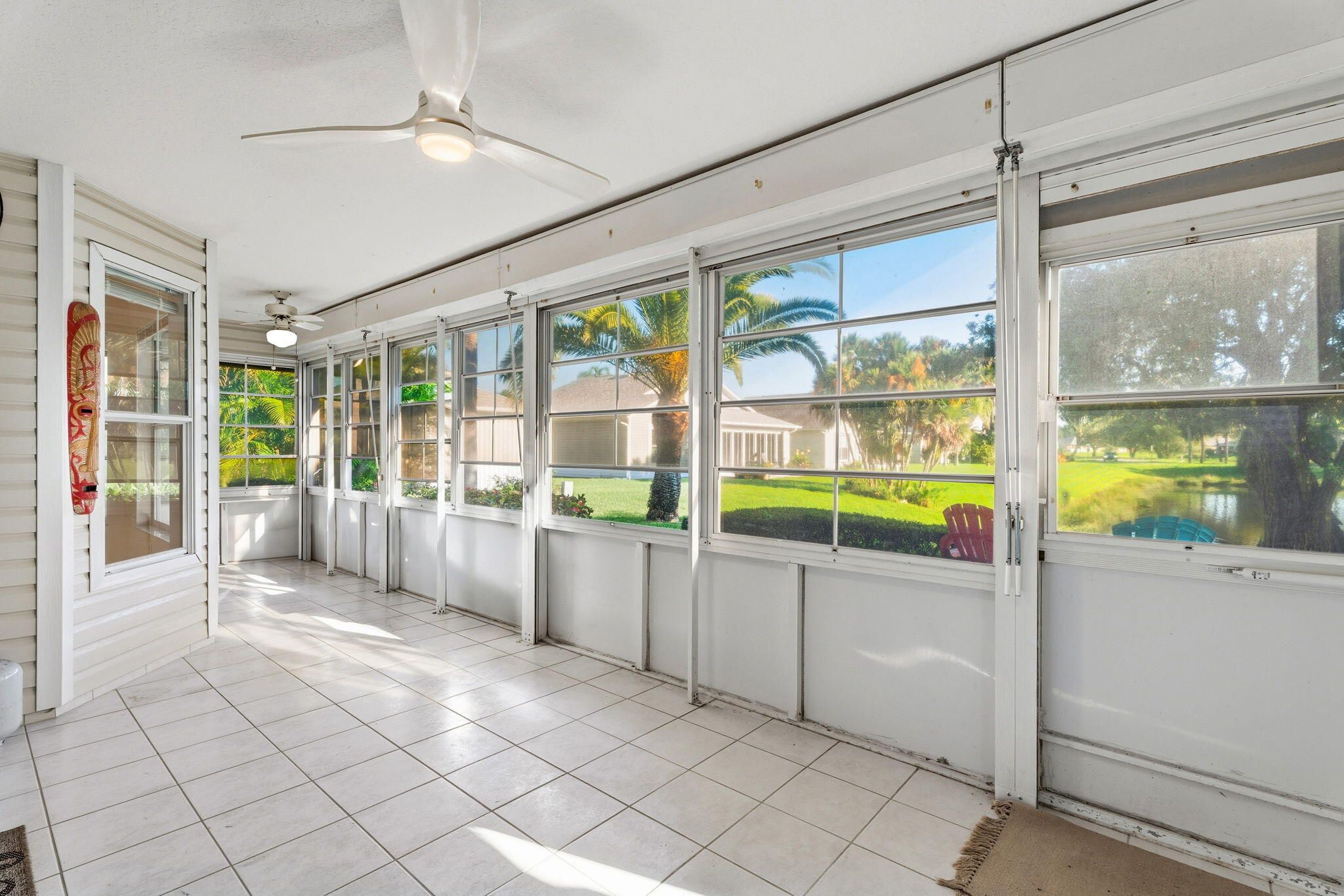 Waterfront Living! Bright and beautiful 2-bedroom, 2-bathroom home in the Palm Grove 55+ Community. Key upgrades include a double driveway, 2019 roof, 2021 A/C, Jacuzzi bath, granite countertops, built-in bookshelves, and hurricane shutters. Kitchen features pull-out shelf organizers for added convenience. HOA: $351/month includes Lawncare, Basic Cable, Wi-Fi, and Water.