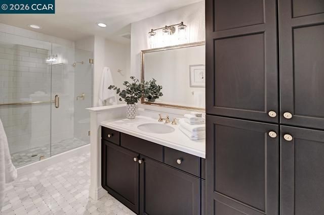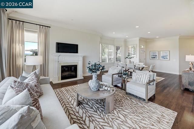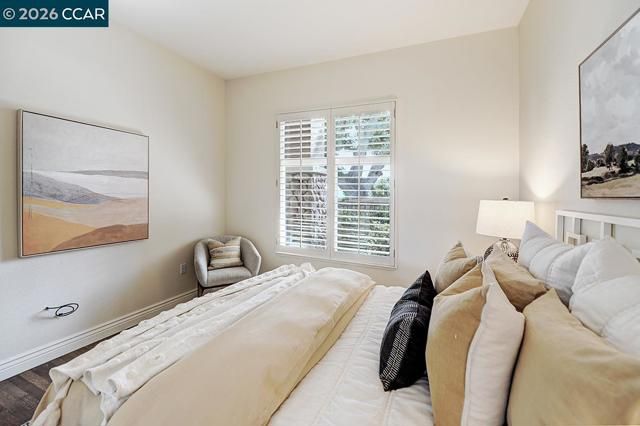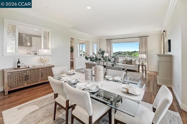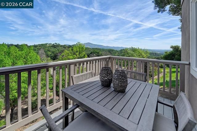 Rarely do you find a level-in home, end location that has been so beautifully remodeled and redesigned paired with distinctive architecture and breathtaking deep vista views of Mt Diablo. From the moment you enter, soaring 10-foot ceilings and walls of windows flood the space with natural light, immediately drawing you toward the expansive deck ~ a seamless extension of the living area that perfectly blends indoor and outdoor living. Every detail reflects exceptional craftsmanship and thoughtfully curated design creating an open concept floorplan for the living room and dining room allowing for endless ways to situation furniture. Living room is accented by heart warming electric fireplace. Kitchen has been redesigned with a large island, premium materials sourced from top-tier suppliers define the home’s refined character. Custom cabinetry, elegant Marble Carrara Gold countertops, high-performance appliances, handcrafted pass through opening to dining room, select crown & base moldings, baths provide the ultimate spa experience with beautiful details. Additional features are the gorgeous hardwood flooring, and expertly blended custom paint palettes come together to create a cohesive and sophisticated aesthetic. The result is a truly prominent residence !!!