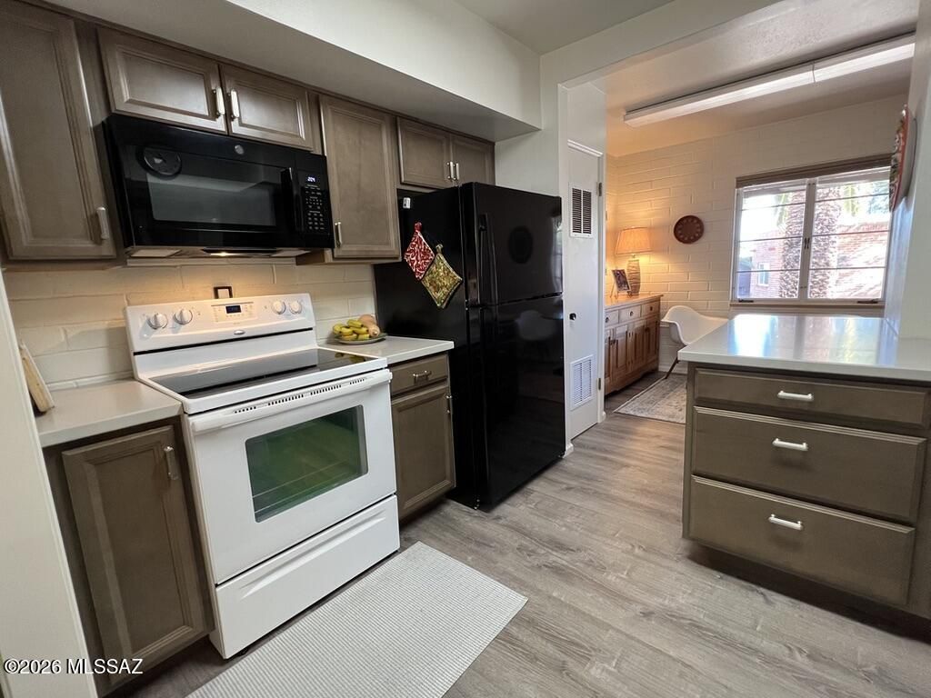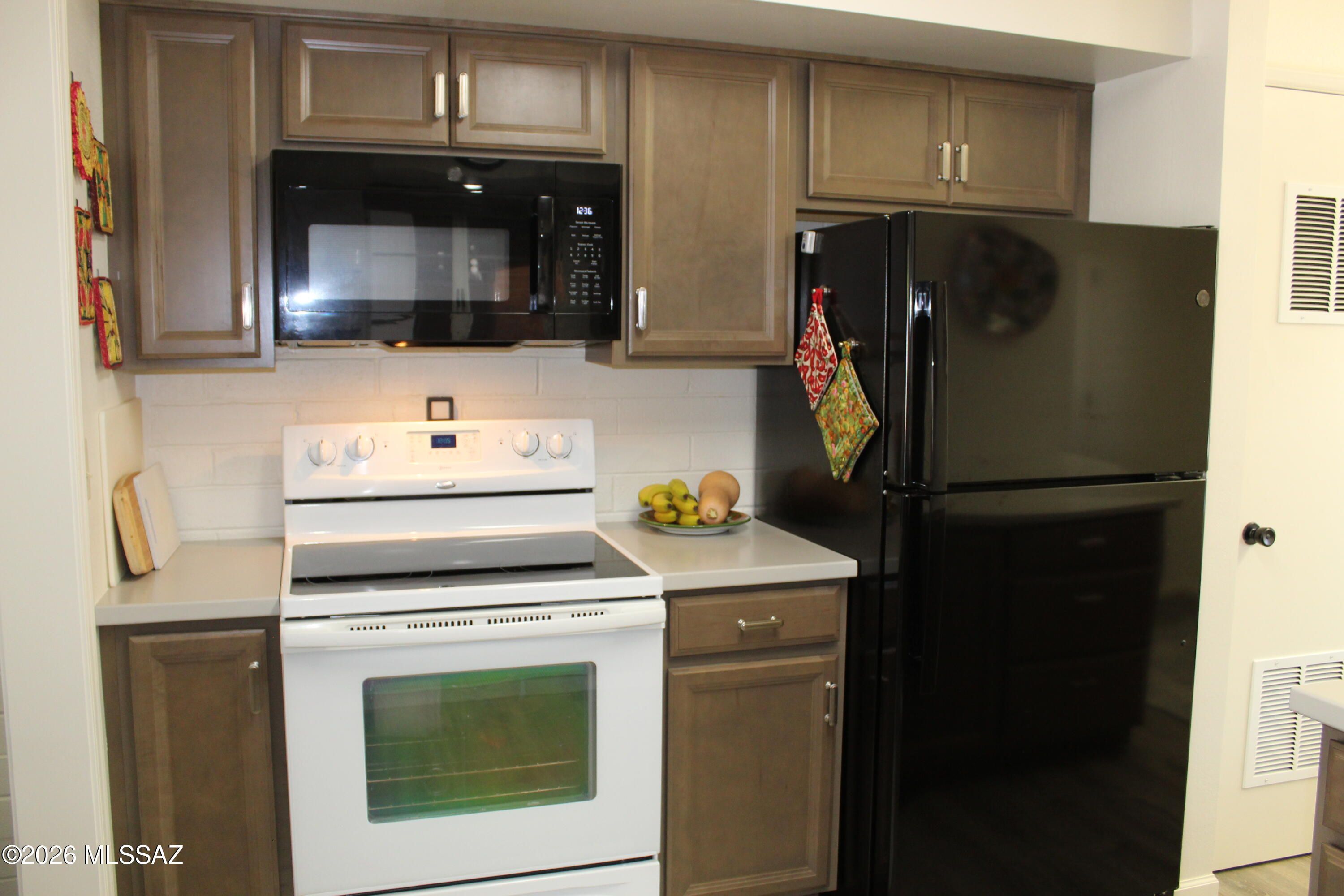 - Dishwasher, Electric Range, Exhaust Fan, Microwave, Refrigerator