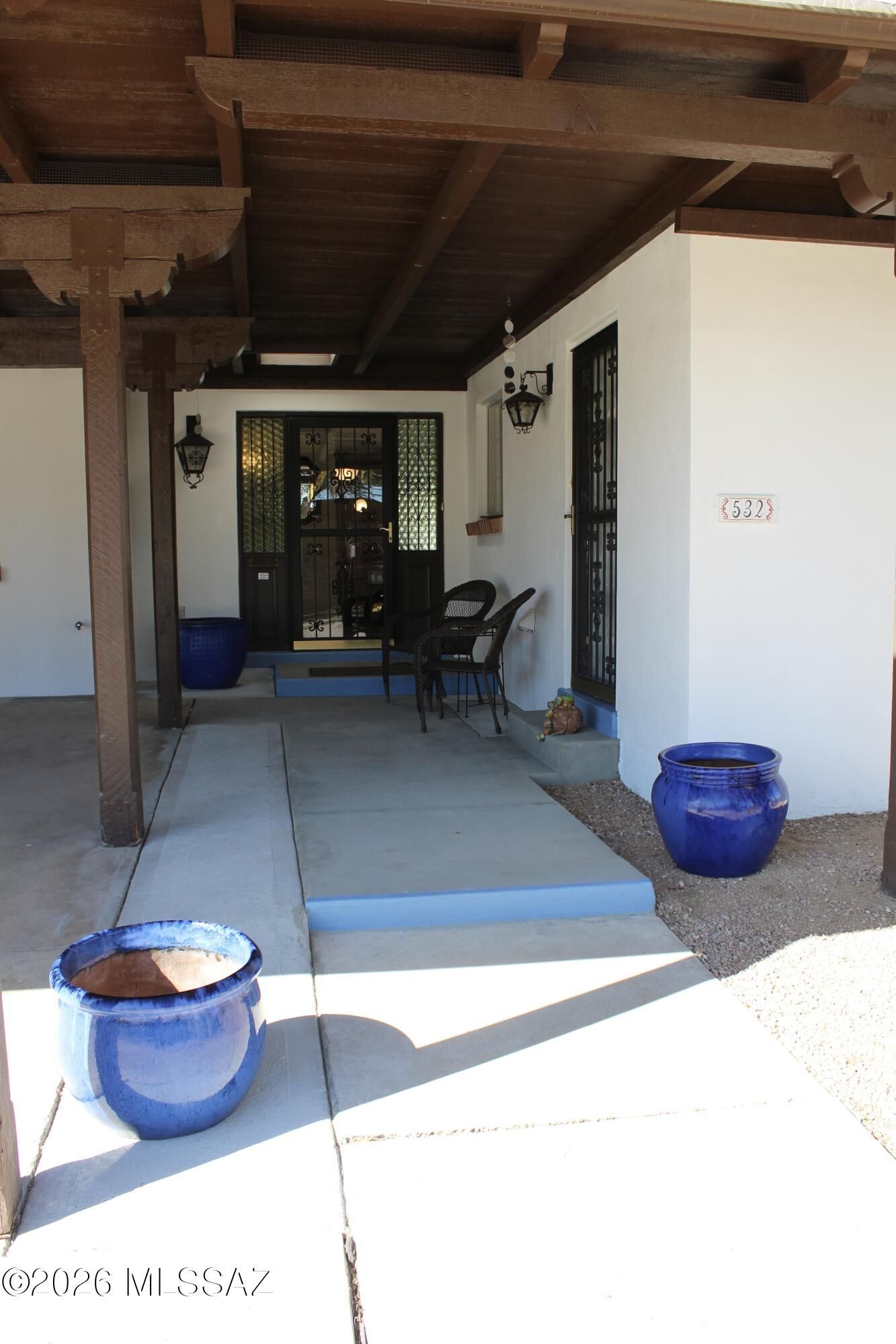 SELLER REQUESTS TO CONTINUE TO SHOW during Active Contingent period. Historic Maxon Brother home in Green Valley's original neighborhood. TH No 1. Burnt Adobe 8in Stucco home. Updated to calm and classic finishes. 2 bed, 2 bath with enclosed Arizona Room. West back patio with privacy wall. Citrus trees. End unit within walking distance to Las Campanas GVR's premier center and the corner store. Roof recoated Jan 2026, Gaspac cooling/heating Dec 2023