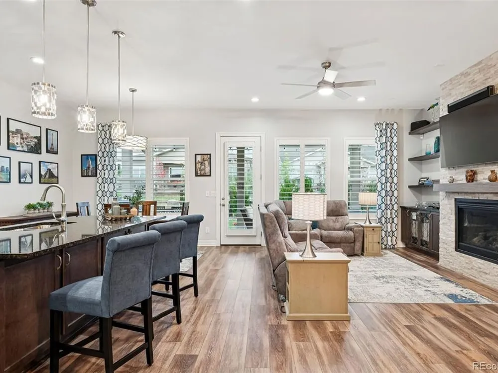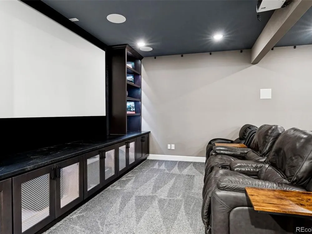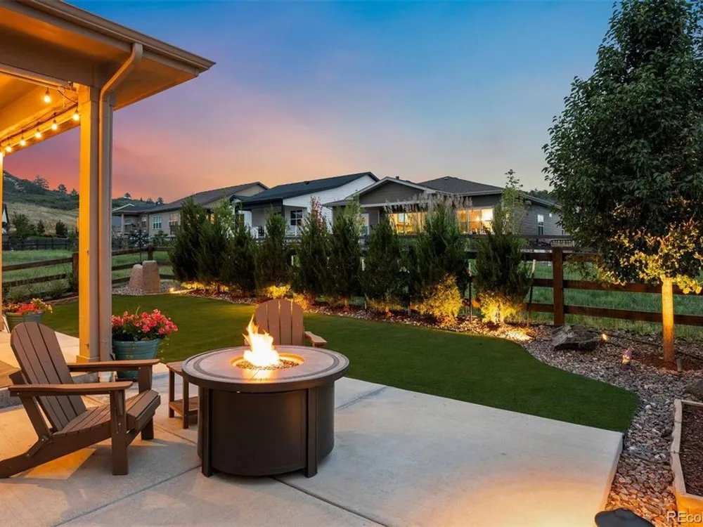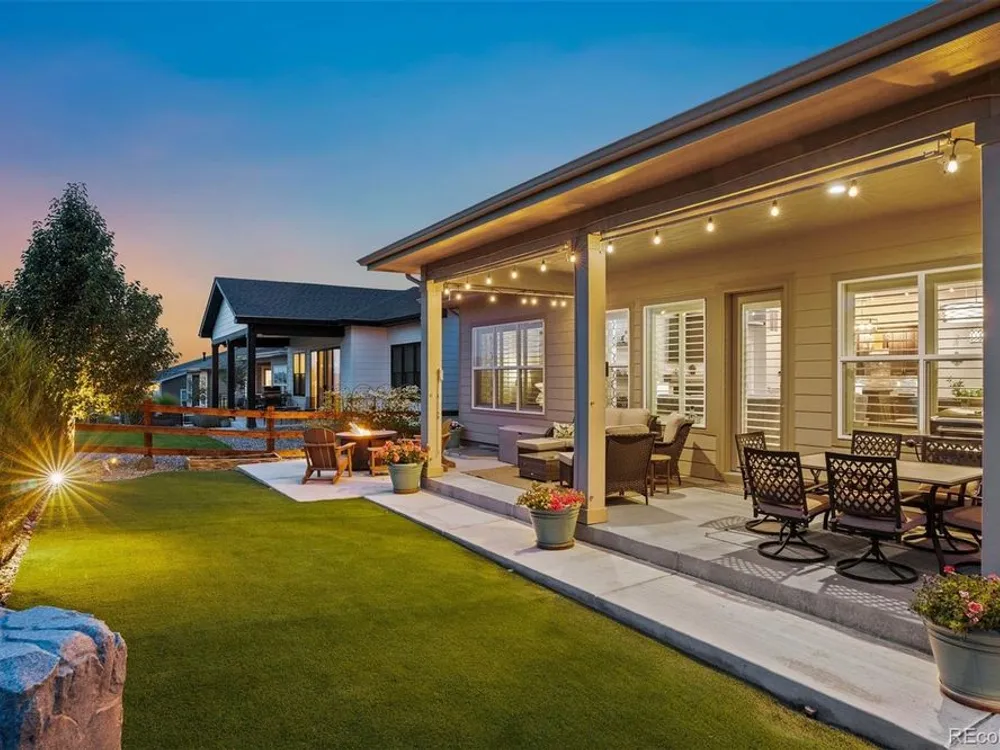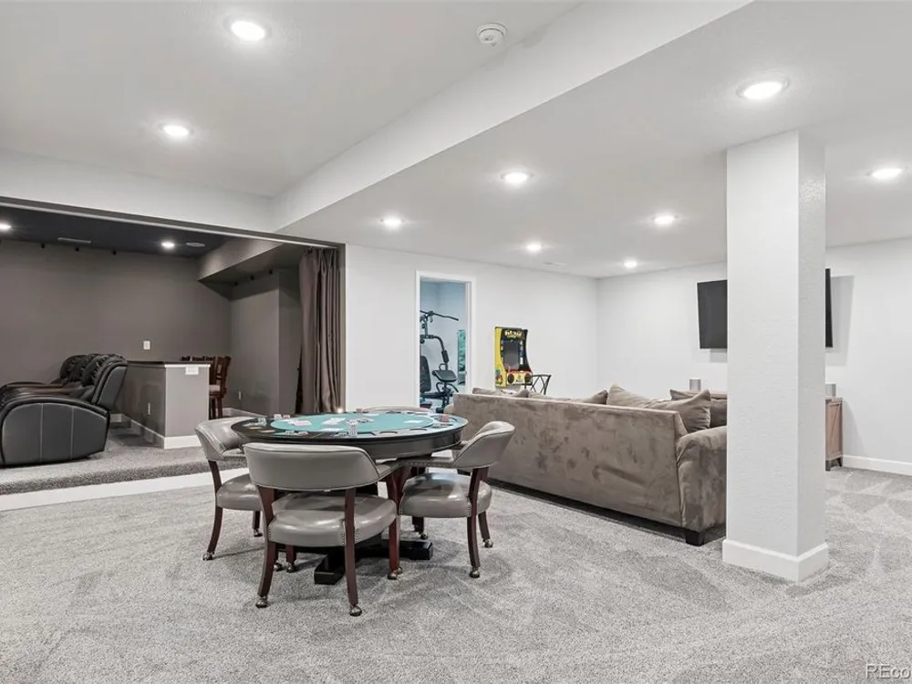 Welcome to the Regency neighborhood of Montaine, a vibrant 55+ community in Castle Rock, recently named one of the nation’s top cities for quality of life. Discover refined living in this Toll Brothers Boyd floorplan, offering 5 bedrooms, 3 bathrooms, and 3,707 square feet of beautifully designed space. This 2021-built home is a rare find. Entertainment at its best. The fully finished basement is an entertainer’s dream, featuring a stylish mini kitchen/bar that makes hosting effortless. Step into your own state-of-the-art home theater, complete with projection video and immersive surround sound system that transforms every night into a movie night. Thoughtful upgrades and finishes throughout. With over $200,000 in post-construction upgrades, this home radiates luxury. The primary suite closet system adds smart organization, while custom built-in shelving and stonework framing the fireplace elevate the living room. The epoxy-finished two-car garage keeps things tidy, while the gorgeous custom bar brings warmth and character to gatherings. Designed for easy living. Low-maintenance landscaping makes this the ideal lock-and-leave retreat for snowbirds and travelers. A fenced yard provides peace of mind for your pets, while the greenbelt backdrop ensures both privacy and tranquility. After a day exploring nearby trails like Plum Creek or Castlewood Canyon State Park, relax and rejuvenate in your soaking tub in the primary retreat. Lifestyle and location at it’s best. Regency at Montaine is more than a neighborhood—it’s a lifestyle. Residents enjoy resort-style amenities including a clubhouse with full-time event coordinator, pool, hot tub, fitness center, tennis and pickleball courts, and miles of trails. With stunning mountain views and easy access to I-25, commuting or traveling is a breeze.