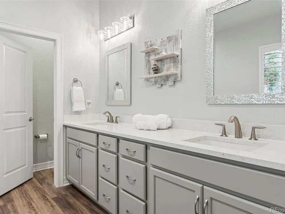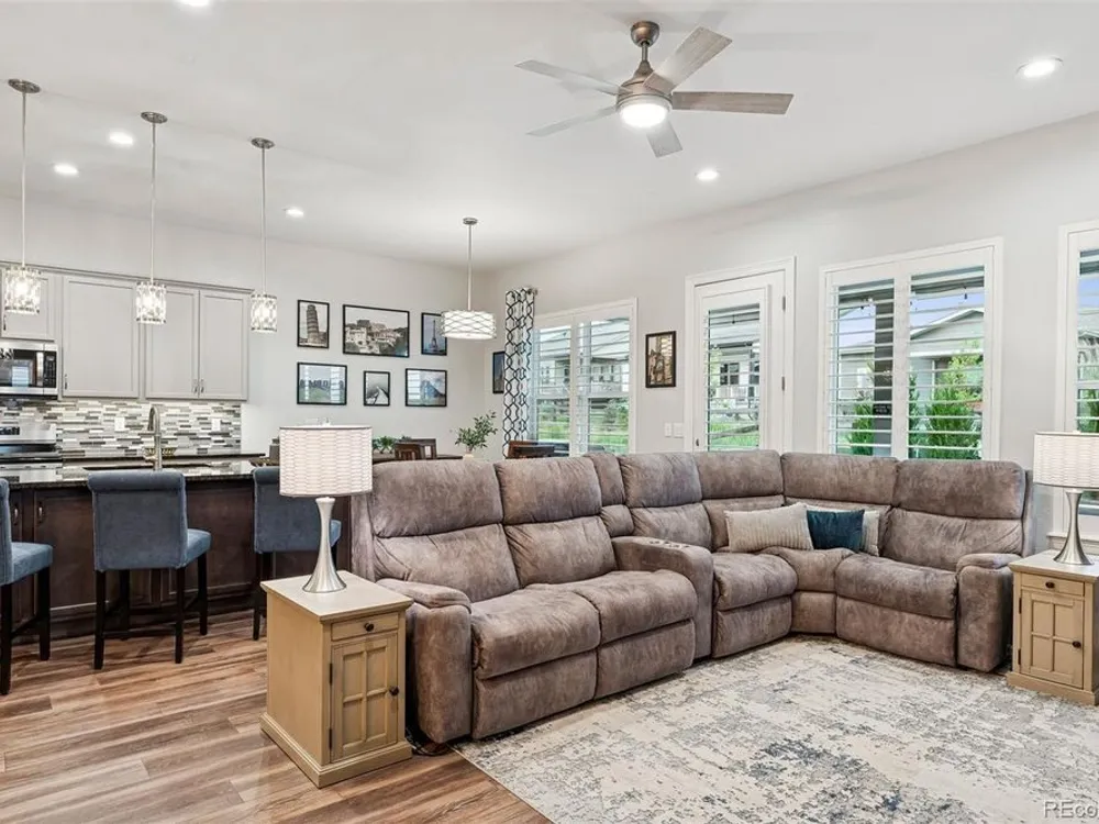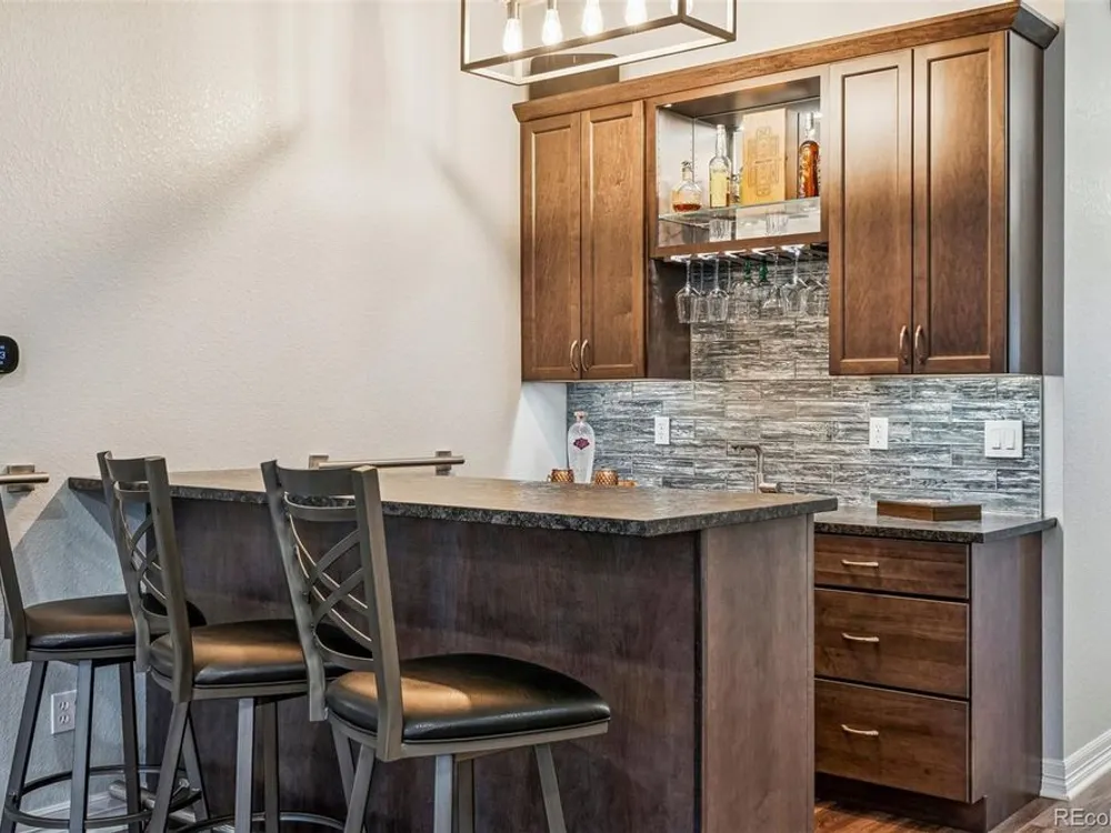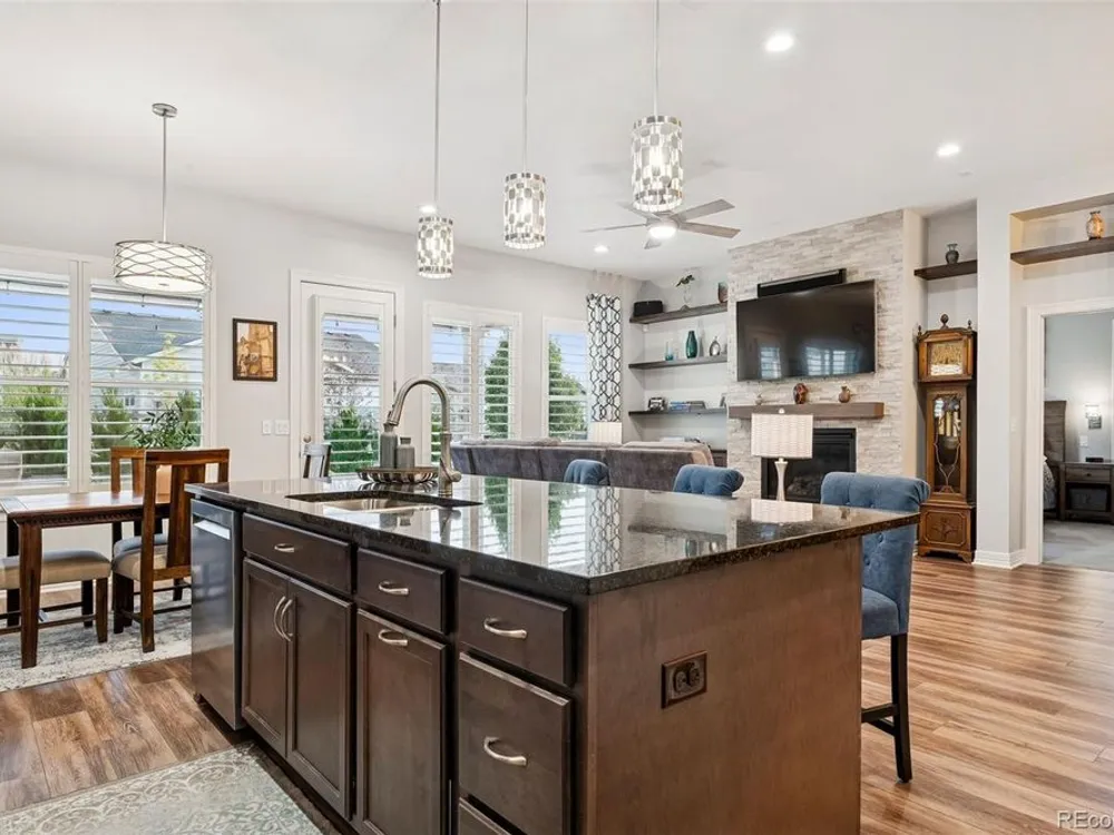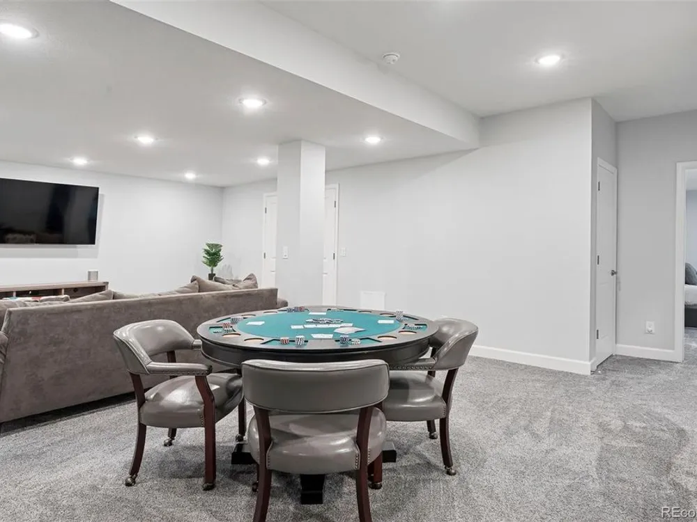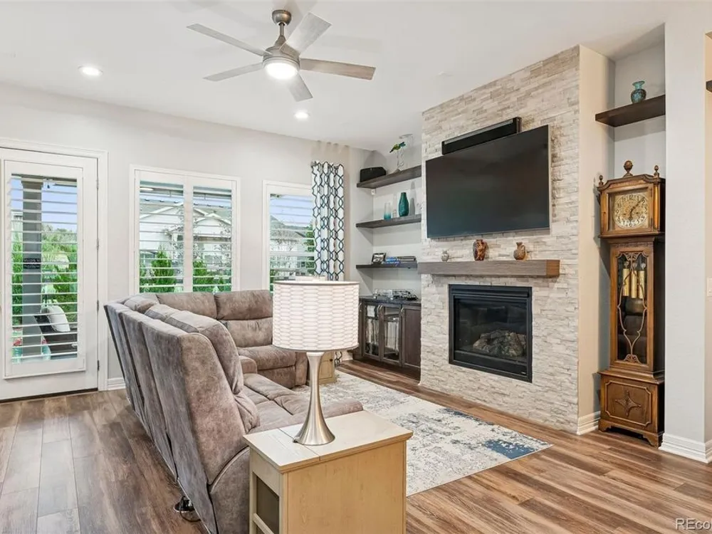 Welcome to the Regency neighborhood of Montaine, a vibrant 55+ community in Castle Rock, recently named one of the nation’s top cities for quality of life. Discover refined living in this Toll Brothers Boyd floorplan, offering 5 bedrooms, 3 bathrooms, and 3,707 square feet of beautifully designed space. This 2021-built home is a rare find. Entertainment at its best. The fully finished basement is an entertainer’s dream, featuring a stylish mini kitchen/bar that makes hosting effortless. Step into your own state-of-the-art home theater, complete with projection video and immersive surround sound system that transforms every night into a movie night. Thoughtful upgrades and finishes throughout. With over $200,000 in post-construction upgrades, this home radiates luxury. The primary suite closet system adds smart organization, while custom built-in shelving and stonework framing the fireplace elevate the living room. The epoxy-finished two-car garage keeps things tidy, while the gorgeous custom bar brings warmth and character to gatherings. Designed for easy living. Low-maintenance landscaping makes this the ideal lock-and-leave retreat for snowbirds and travelers. A fenced yard provides peace of mind for your pets, while the greenbelt backdrop ensures both privacy and tranquility. After a day exploring nearby trails like Plum Creek or Castlewood Canyon State Park, relax and rejuvenate in your soaking tub in the primary retreat. Lifestyle and location at it’s best. Regency at Montaine is more than a neighborhood—it’s a lifestyle. Residents enjoy resort-style amenities including a clubhouse with full-time event coordinator, pool, hot tub, fitness center, tennis and pickleball courts, and miles of trails. With stunning mountain views and easy access to I-25, commuting or traveling is a breeze.