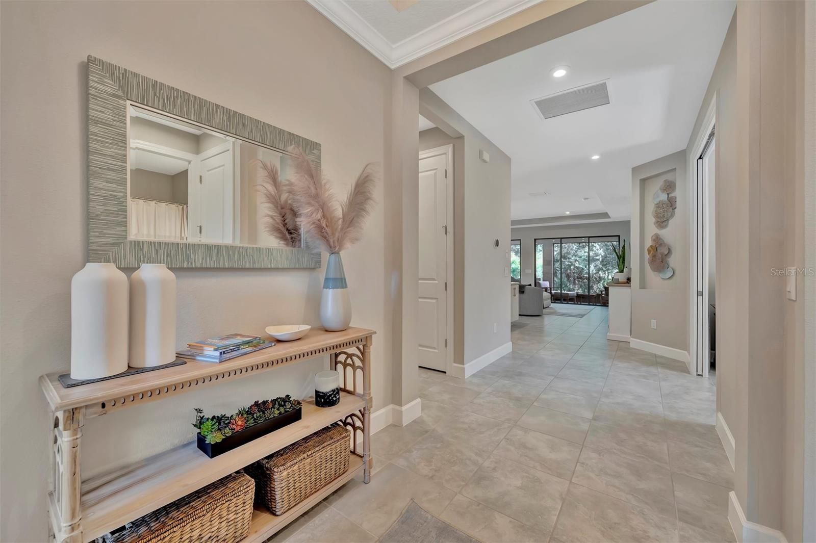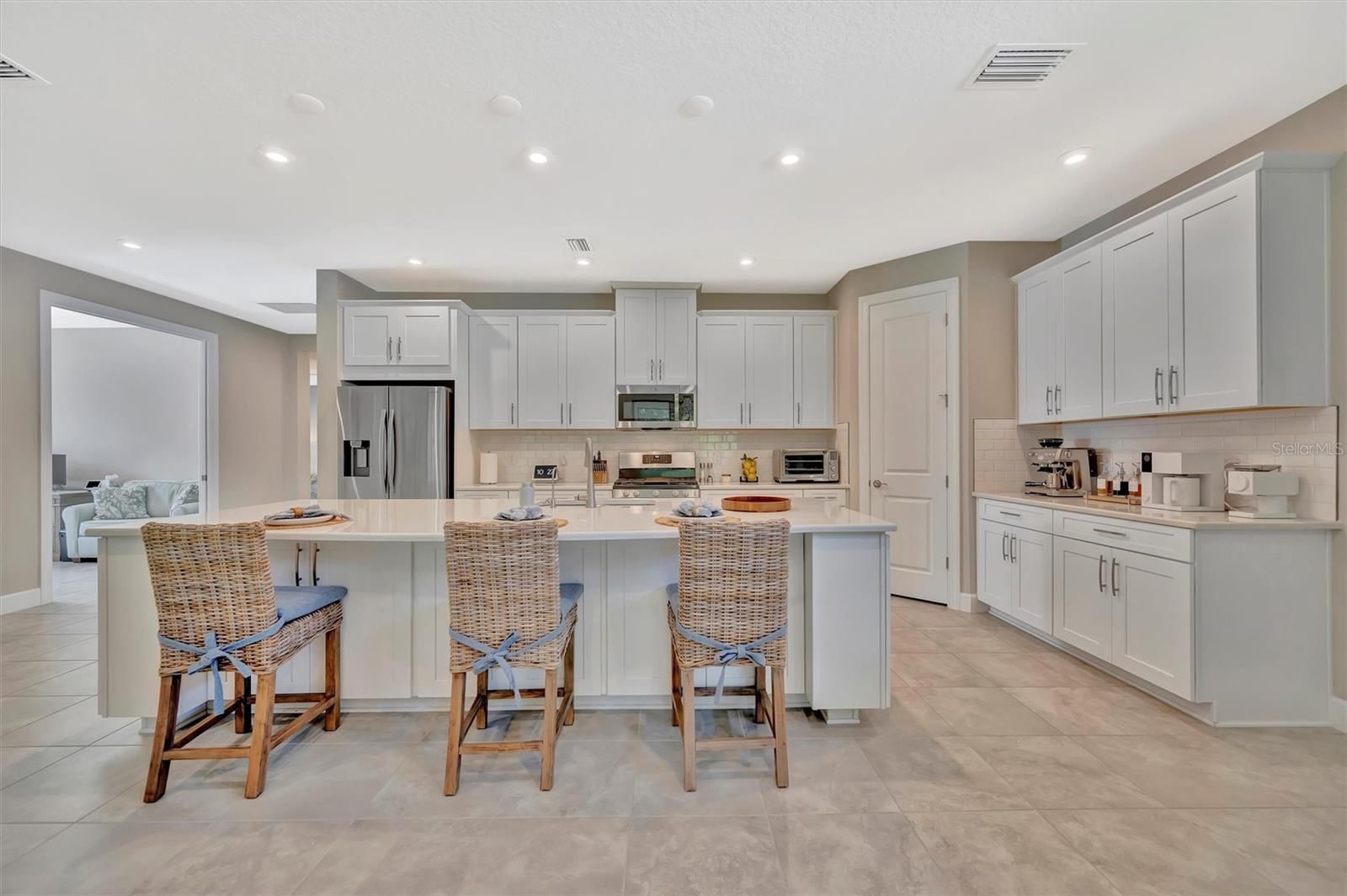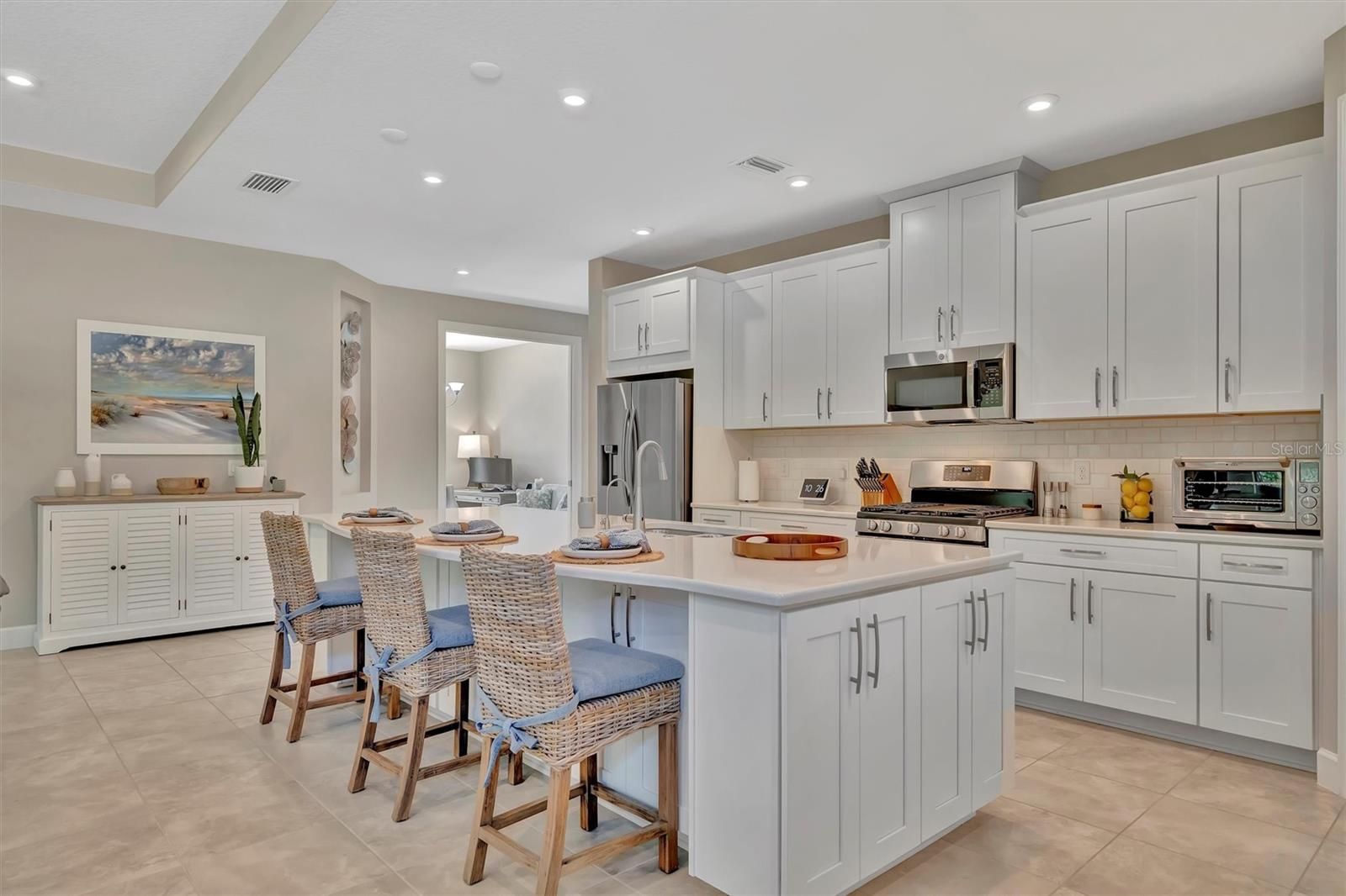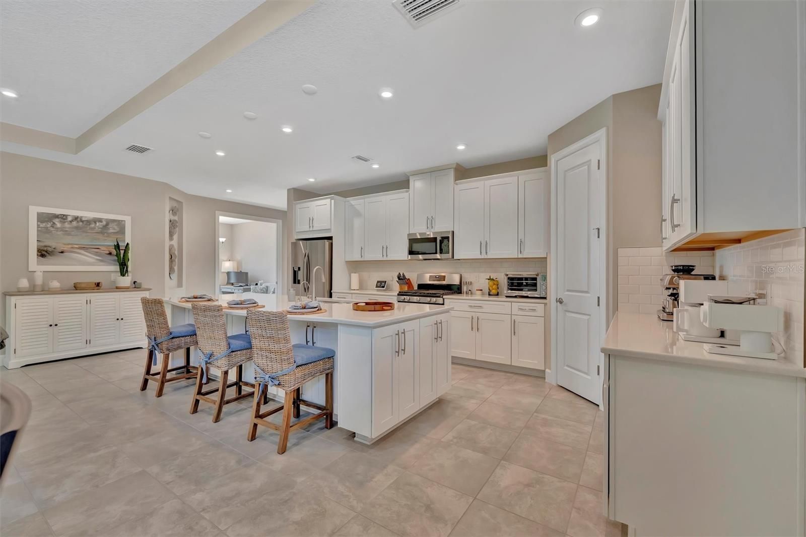 Model-Perfect & Move-In Ready in Esplanade at Artisan Lakes! This stylish and meticulously maintained home offers unbeatable value in one of Palmetto’s most sought-after resort-style communities. Designed with comfort and sophistication in mind, this 2-bedroom + den, 2-bath beauty shines with natural light, high ceilings, and an inviting open-concept layout that makes every day feel like a retreat. The heart of the home is a well-appointed kitchen featuring granite countertops, a generous breakfast bar, sleek cabinetry, and ample prep space—perfect for both everyday meals and entertaining. A separate dining area adds flexibility for casual brunches or evening dinners with friends. The owner’s suite is your private escape with tranquil backyard views, a spacious walk-in closet, dual granite vanities, and a large walk-in shower. A split-bedroom layout ensures your guests enjoy their own private space, while the den/flex room easily transforms into a home office, media room, or cozy reading nook. Slide open the glass doors and step into your screened lanai complete with an outdoor kitchen—ideal for enjoying Florida’s sunshine year-round. With lush landscaping and plenty of privacy, your backyard oasis is ready for relaxing mornings or happy hour get-togethers. The home also features tile flooring throughout the main living areas, a spacious laundry room with ample storage, a two-car garage, and beautiful curb appeal—all wrapped up in a low-maintenance lifestyle that lets you spend more time enjoying everything the community has to offer. Esplanade Perks? Yes, please. This is resort living in a golf cart friendly community without the resort price tag. Your HOA covers lawn care, cable, internet, and more—leaving you free to enjoy the real perks: a lagoon-style pool with cabanas, a second pool and community center, fitness center, tennis and pickleball courts, bocce ball, scenic walking trails, a butterfly garden, dog parks, and even a playground. Just minutes from I-75, you're perfectly positioned for quick trips to Sarasota beaches, Tampa adventures, and downtown St. Pete. Everyday essentials like Publix, coffee shops, restaurants, and even ice cream are conveniently just down the street. Whether you're upsizing, downsizing, or rightsizing, this home checks all the boxes. Schedule your tour today and experience why life is better in Esplanade at Artisan Lakes!