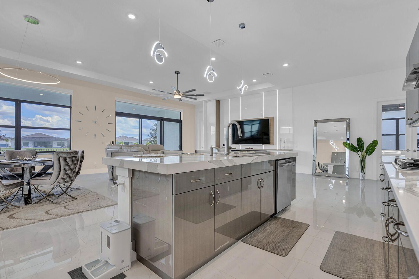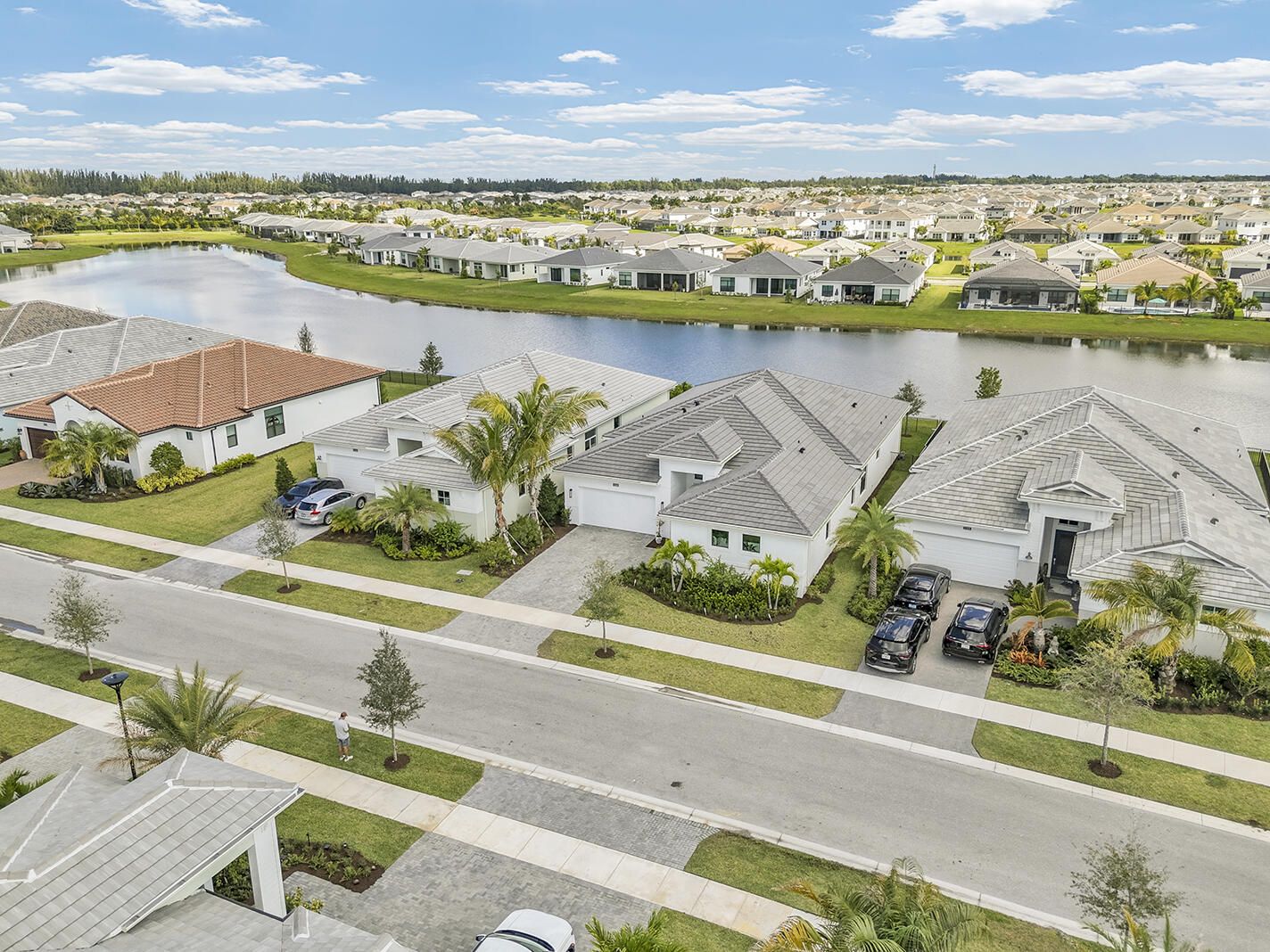 Stunning 2024 Sydney model in the well-kept, gated Cresswind Palm Beach active adult community of Westlake. This single-story home offers 3 bedrooms, 3.5 baths, a large den, and a 3-car garage. The open living area features tall ceilings, elegant finishes, and full impact glass windows overlooking the lake. The kitchen is bright and functional with a large island and quartz countertops. The primary suite boasts a luxurious bath with dual sinks, frameless shower, and freestanding tub. This vibrant community has so much to offer, including a fitness center, clubhouse, pools, game room, pickleball, tennis, dog park, lawn care, and access to Westlake Adventure Park.