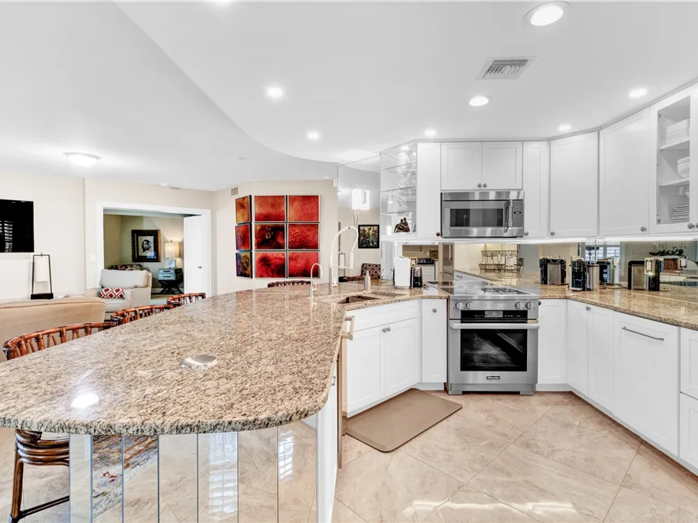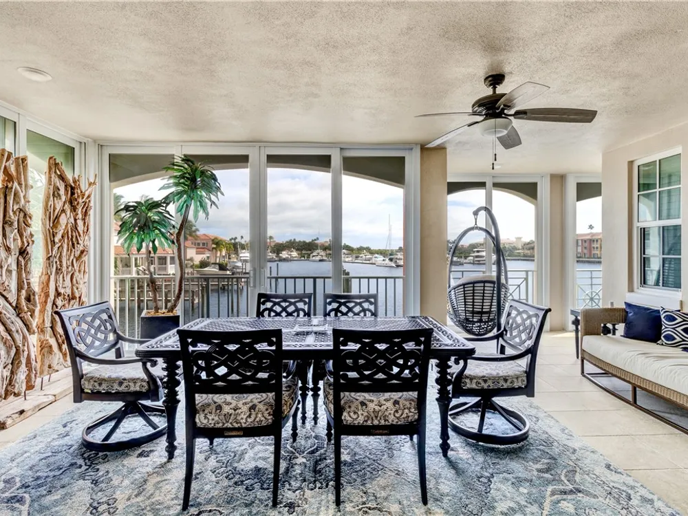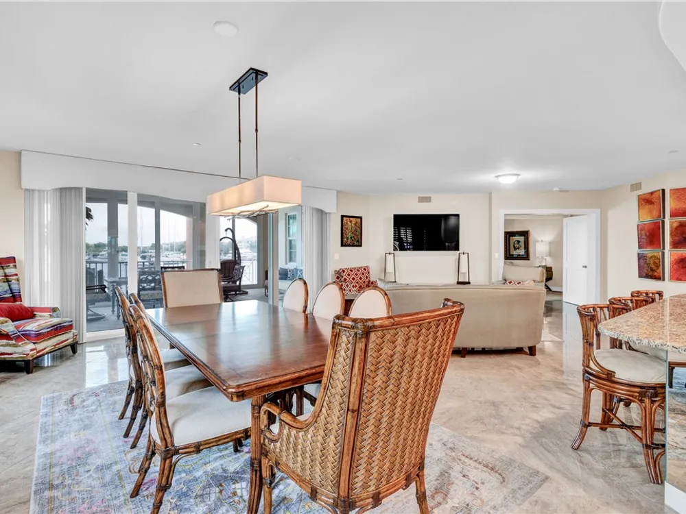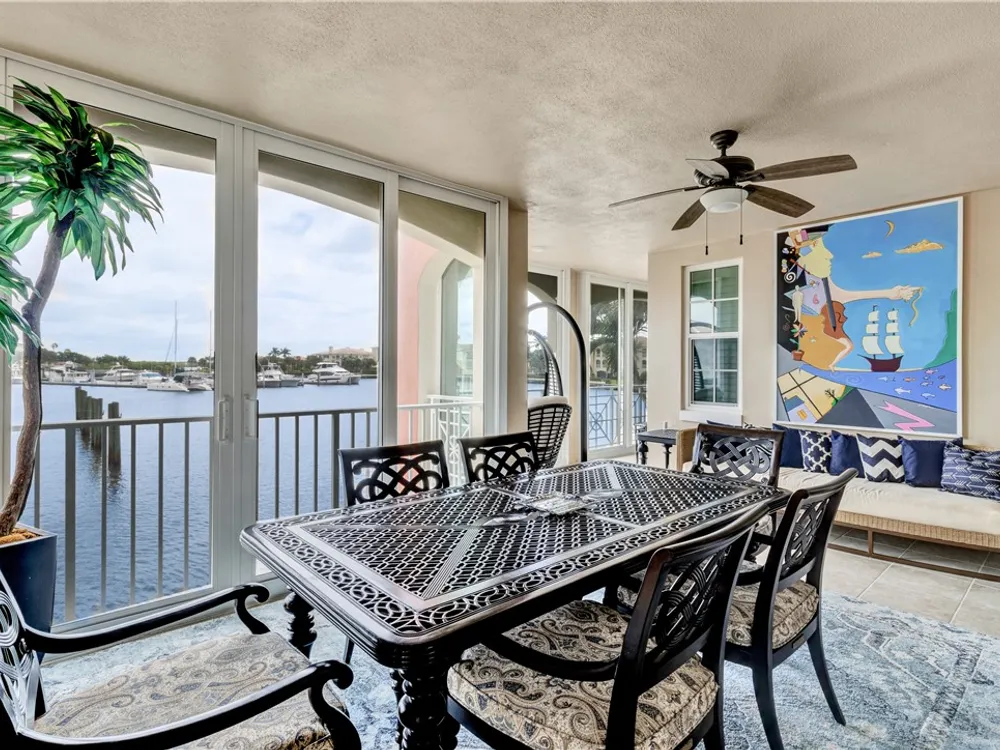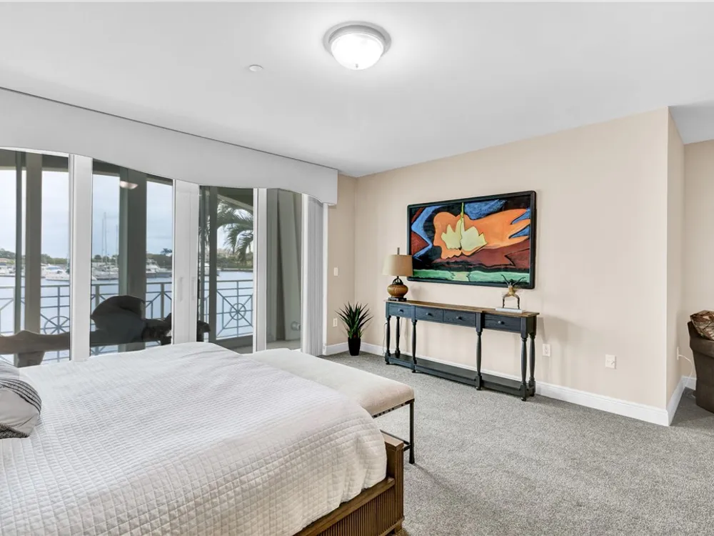 This spacious harbor front condo features many custom upgrades including granite counters and top of the line appliances in the kitchen. The condo has been re-piped, has electric shutters and a new A/C in 2022. There is a two-car garage and an air-conditioned storage room.