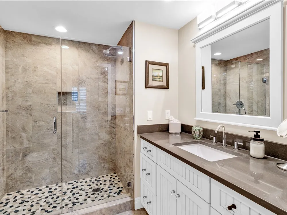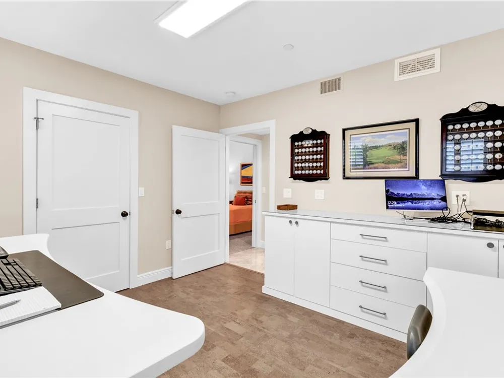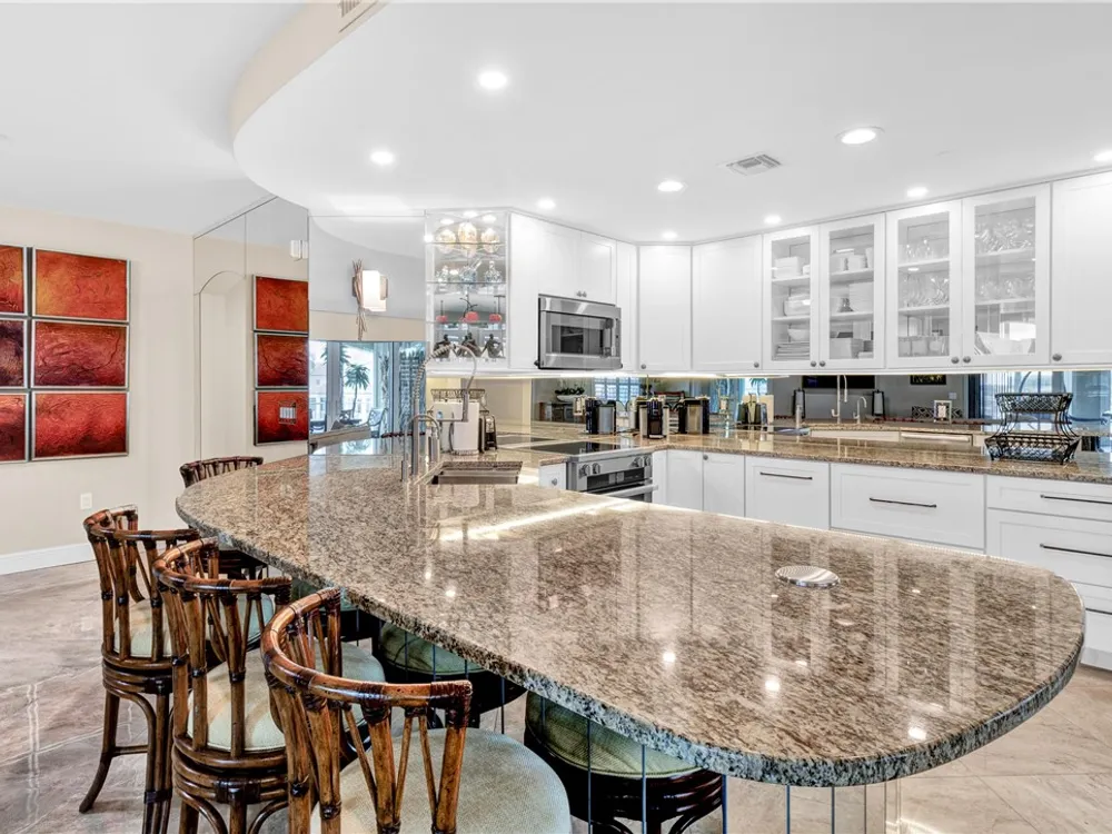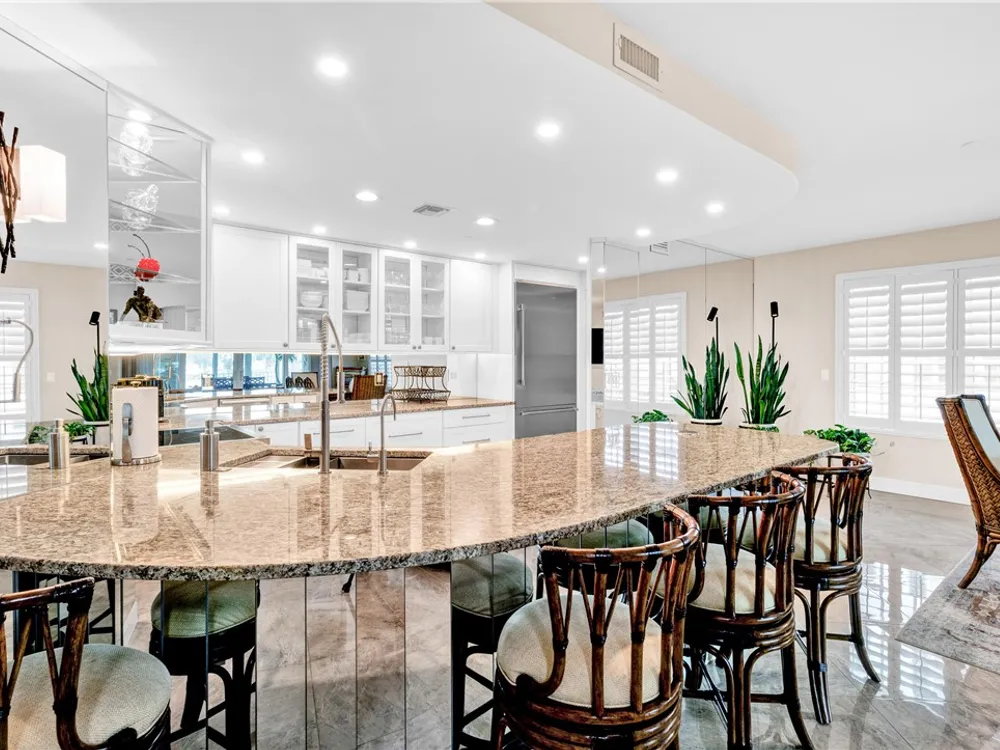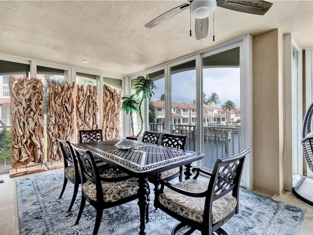 This spacious harbor front condo features many custom upgrades including granite counters and top of the line appliances in the kitchen. The condo has been re-piped, has electric shutters and a new A/C in 2022. There is a two-car garage and an air-conditioned storage room.