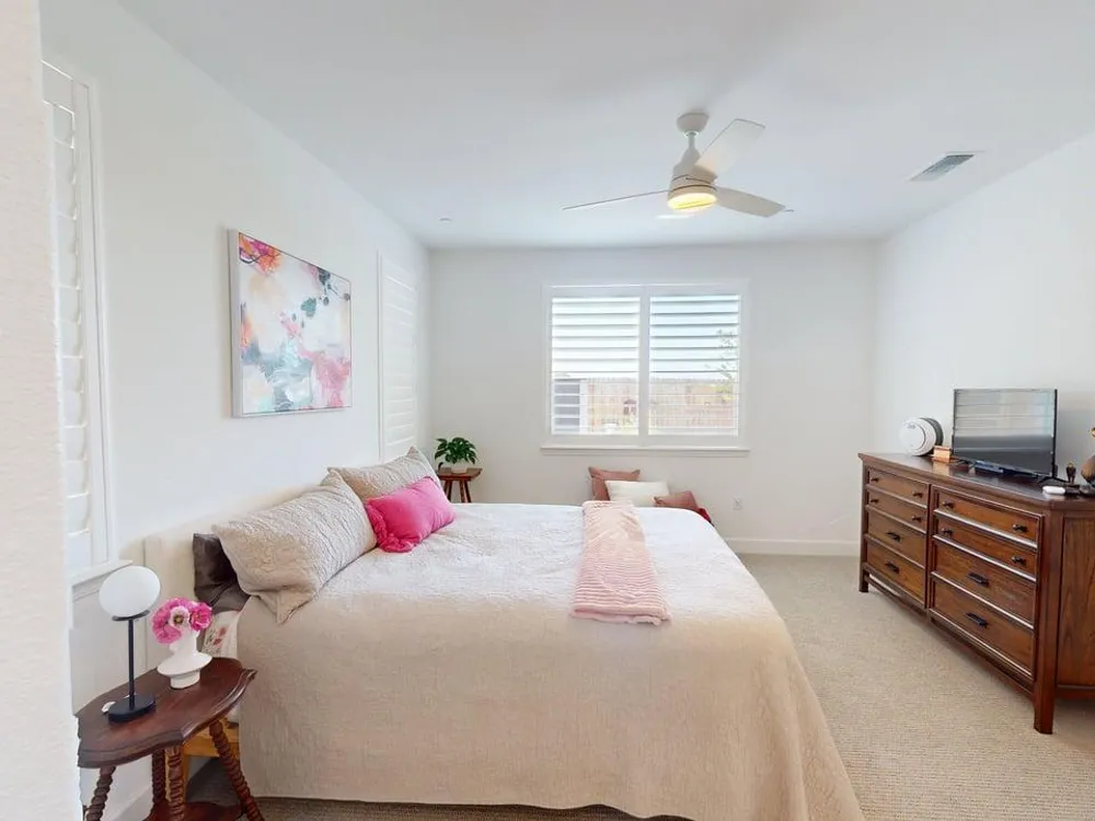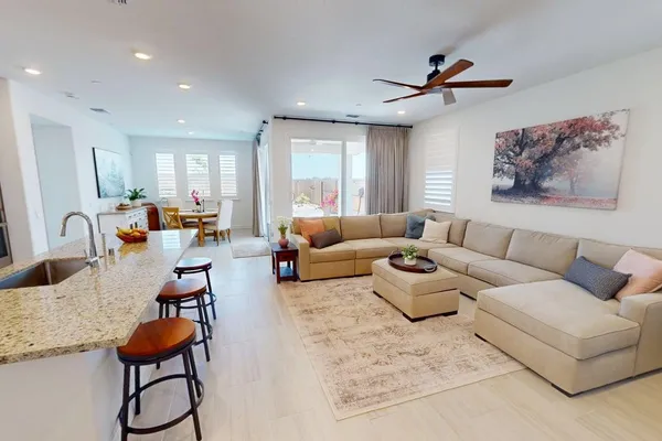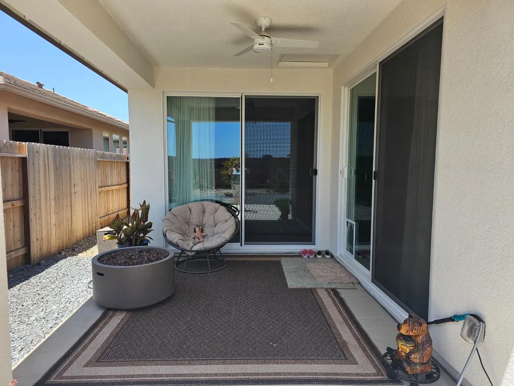 Heritage Placer Vineyards, a gated 55+ active adult community for seniors offers this gorgeous home, built in 2024 & better than new! It has a ton of upgrades that are no longer offered and a beautifully appointed backyard. 3 beds, 3 full baths, & modern smart home technology & energy efficiency. Spacious hallways & wide doorways offer an open flow throughout the home. The gourmet kitchen is a chef's dream, featuring elegant granite countertops, an upgraded large island with room for seating, stainless steel appliances, double ovens, soft-close cabinetry, and a walk-in pantry. The primary suite provides a serene retreat with a walk-in shower, dual vanities, and a spacious walk-in closet. A secondary suite offers flexibility to be used for guests, family, or as caregiver quarters. Outdoors, the fully landscaped backyard with a covered patio invites year-round enjoyment, including a lush grassy area and a generous storage shed. The community boasts a clubhouse, pool, fitness center, sports courts, bocce ball and a communal garden. Some of the many additional upgrades include shutters throughout, custom drapes, leaf filters on gutters, extra cement pad with walkway, ceiling fans, storage racks and more. Rare opportunity to assume loan at 4.99%!