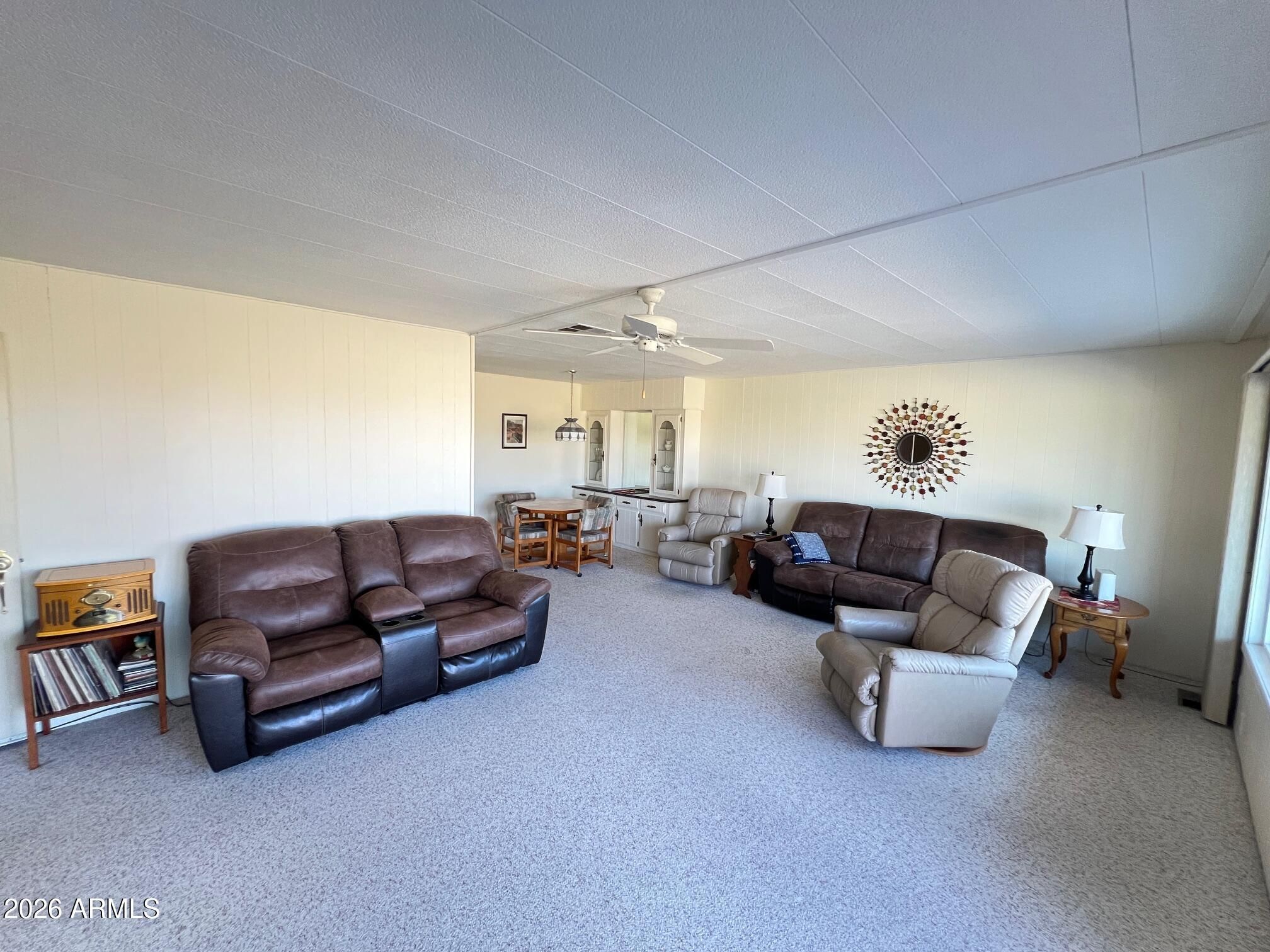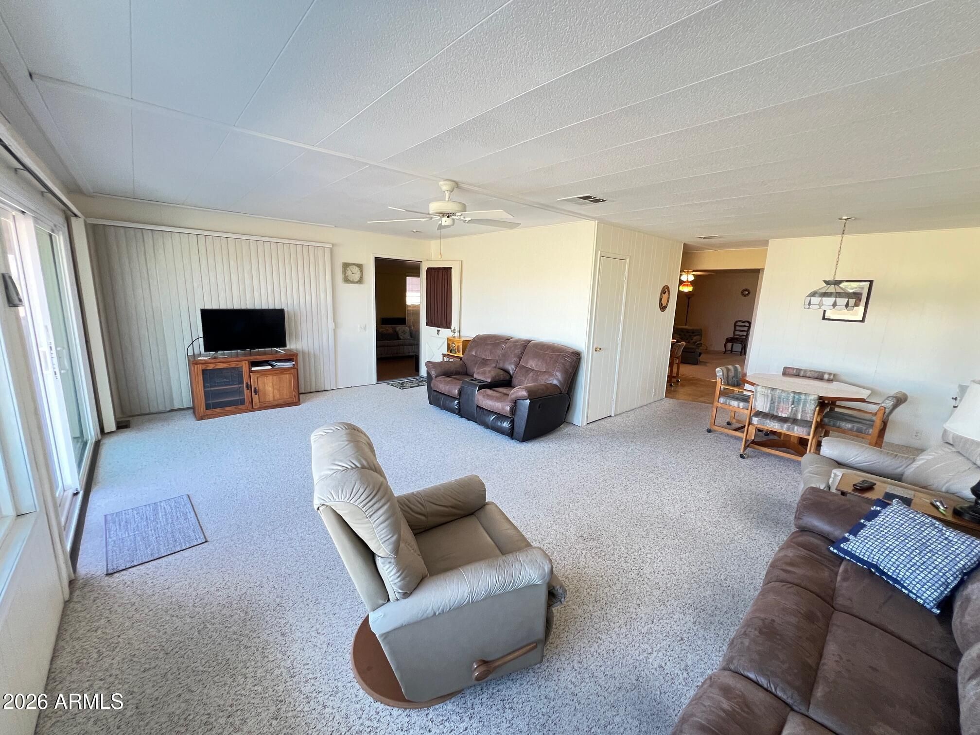 Picture perfect view of Red Mountain, situated on the 14th fairway of Apache Wells Golf Course. All you need to bring are your clothes and your toothbrush to this beautiful home. Separate and spacious family room and living room. Shingled ramada roof keeps the home much cooler than most. The carport is R/V ready-- the front panel swings out to allow an R/V to go in and out (sewer dump already set up!). Features copper wiring and copper plumbing. With the heated and cooled Arizona Room, there is over 1800 square feet. Huge laundry room/ work shop with Red Mountain views. Hard to find parking for at least four vehicles. Don't miss out on this property, as it will not be around long.